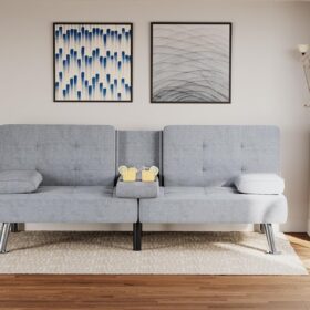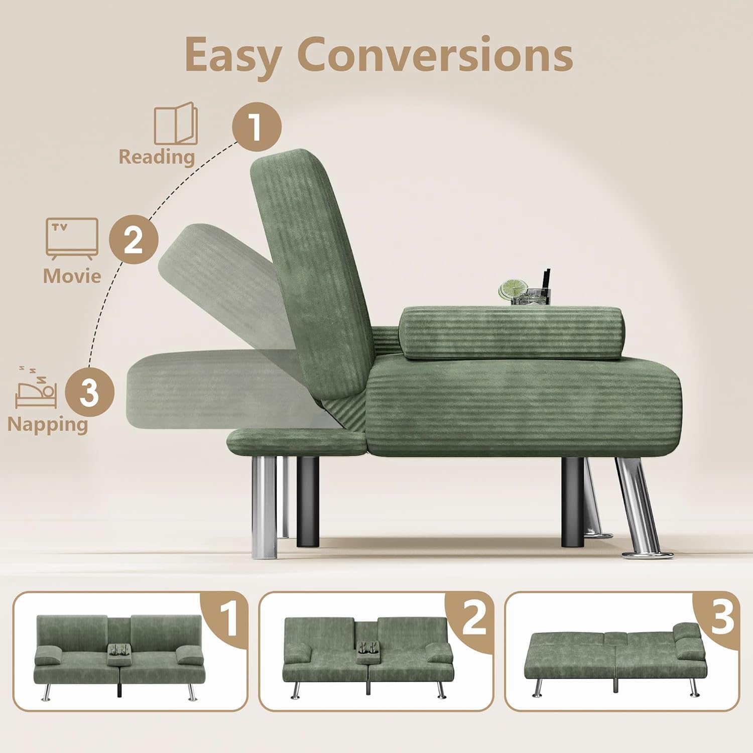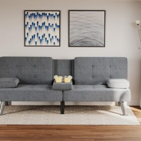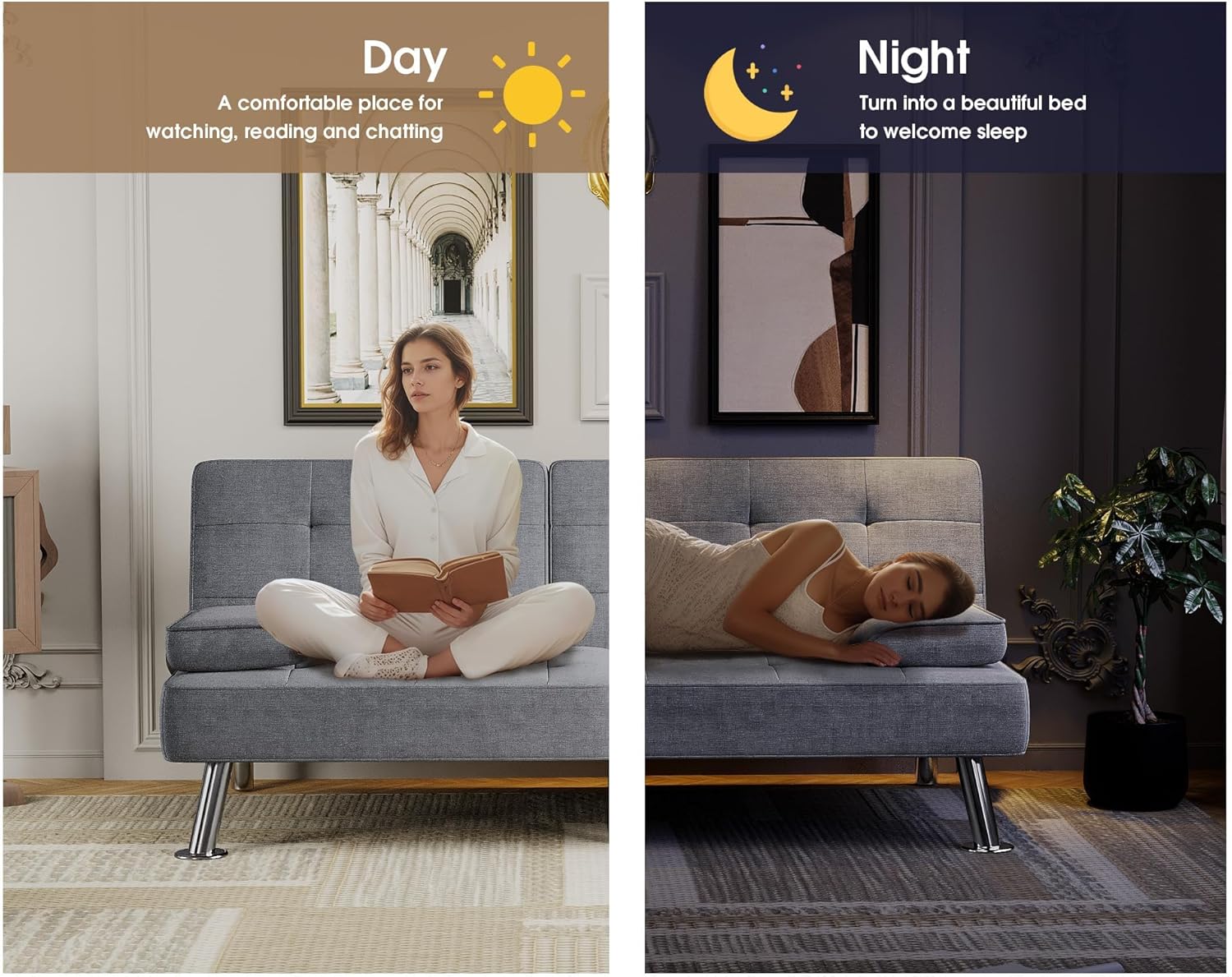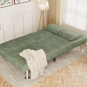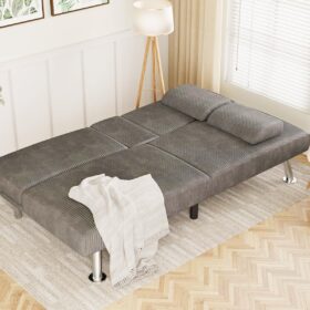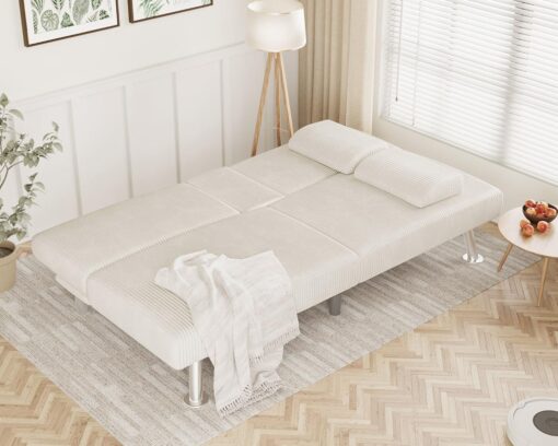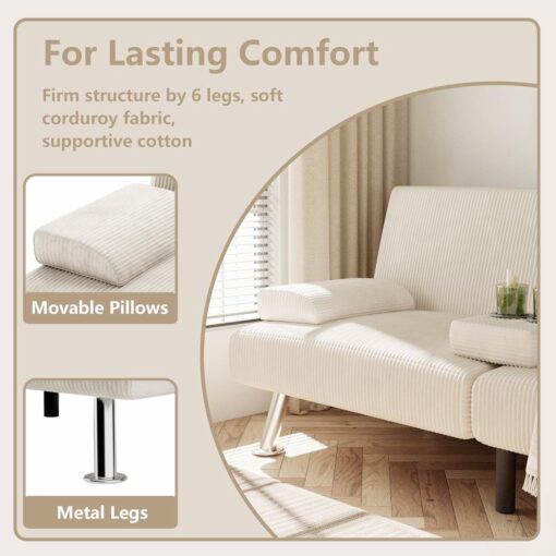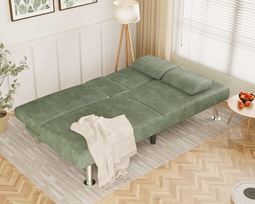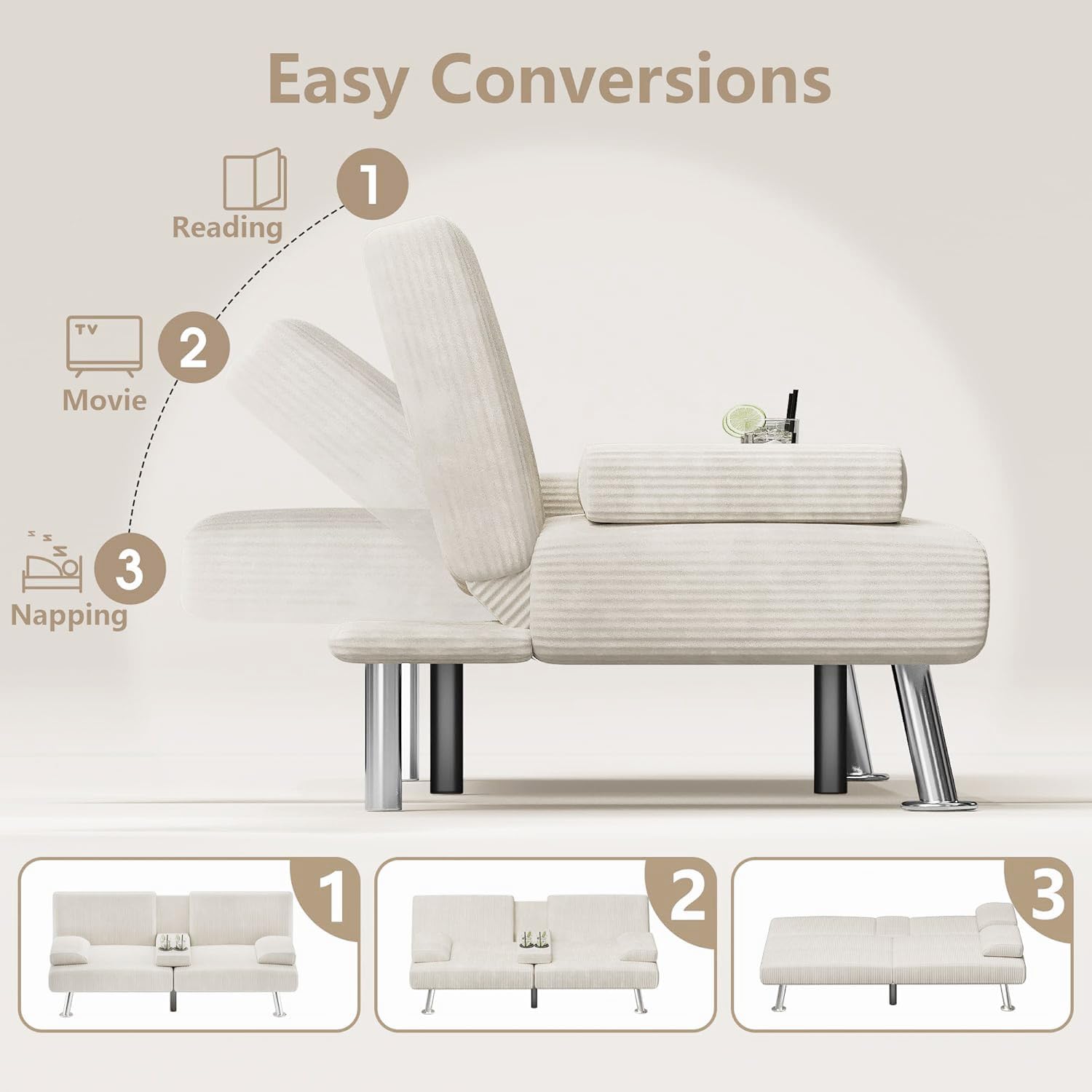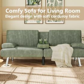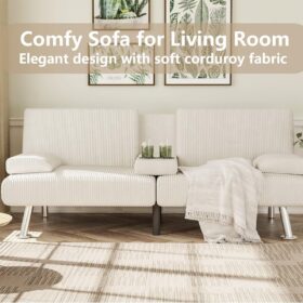 Flamaker Futon Sofa Bed Modern Folding Futon Set Convertible Recliner Lounge for Living Room with 2 Cup Holders, Removable Armrests (PU Leather, Black)