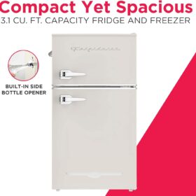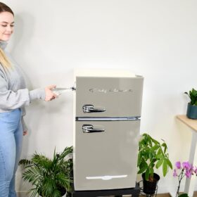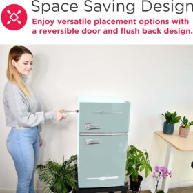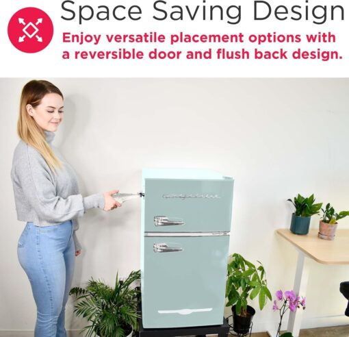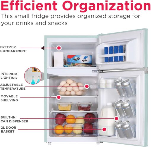 - RETRO CHARM: Elevate your space with this sleek and stylish small retro fridge. The eye-catching design infuses retro charm into any room. The compact size and stylish design make it a great addition to your bedroom, office, or dorm room.