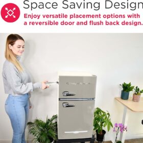 - SLEEK FINISH: Featuring a sleek and durable platinum design with chrome trim, this small fridge freezer adds an upscale retro look that will elevate your space. Its compact size makes it perfect for your office, bedroom, dorm room, garage, or cabin.