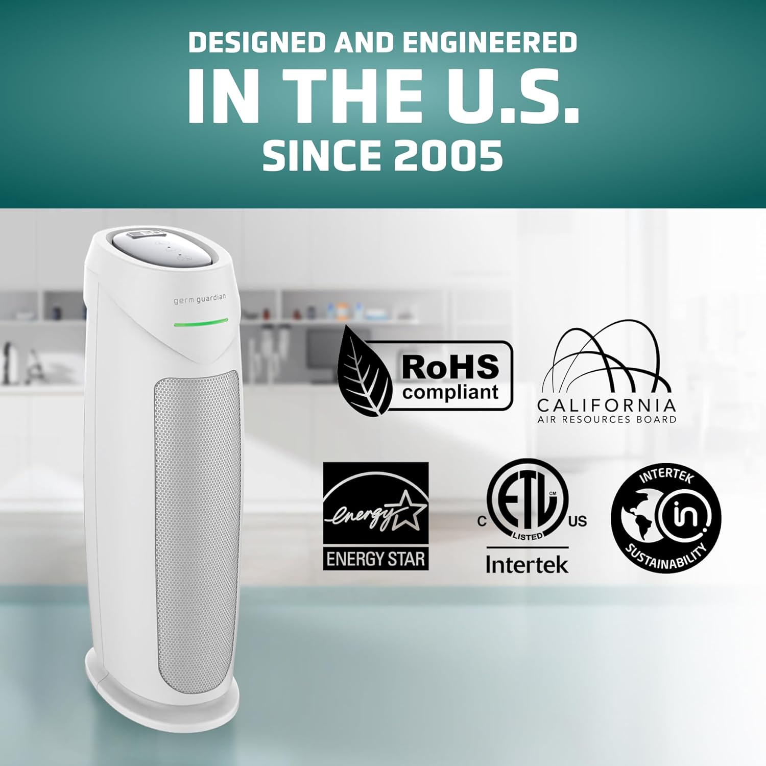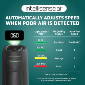 GermGuardian Air Purifier for Home with HEPA Pure Filter, for Wildfire Smoke, Pet Dander, Pollen, Odors, Large Rooms Up To 743 Sq. Ft., Removes 99.97% Pollutants, UV-C Light, 22″, AC4825E, Gray
