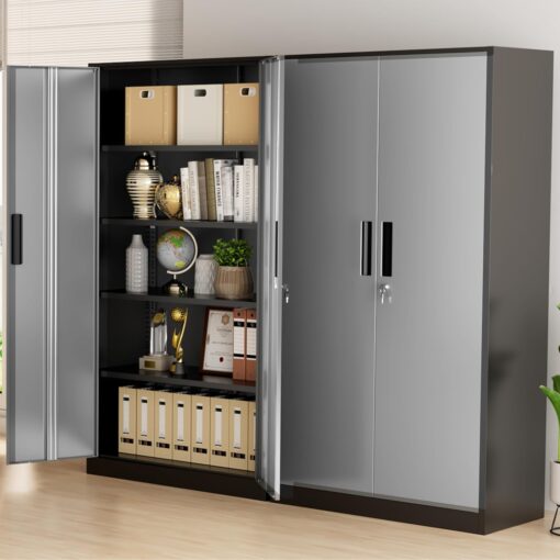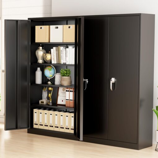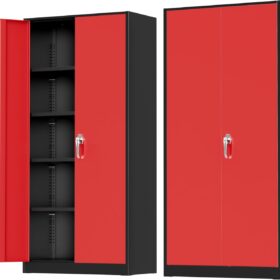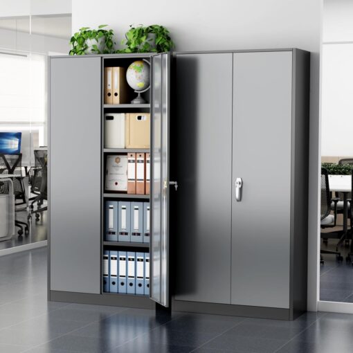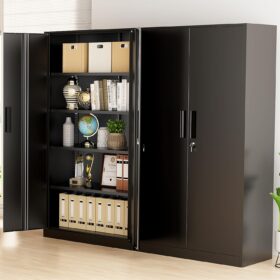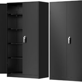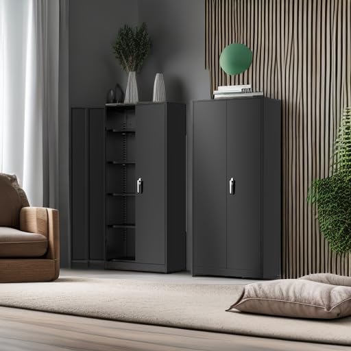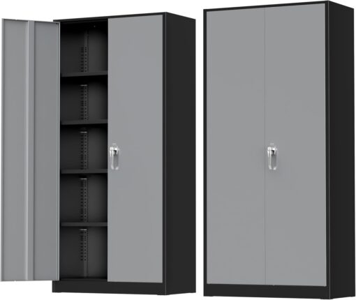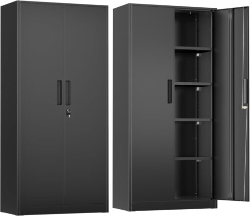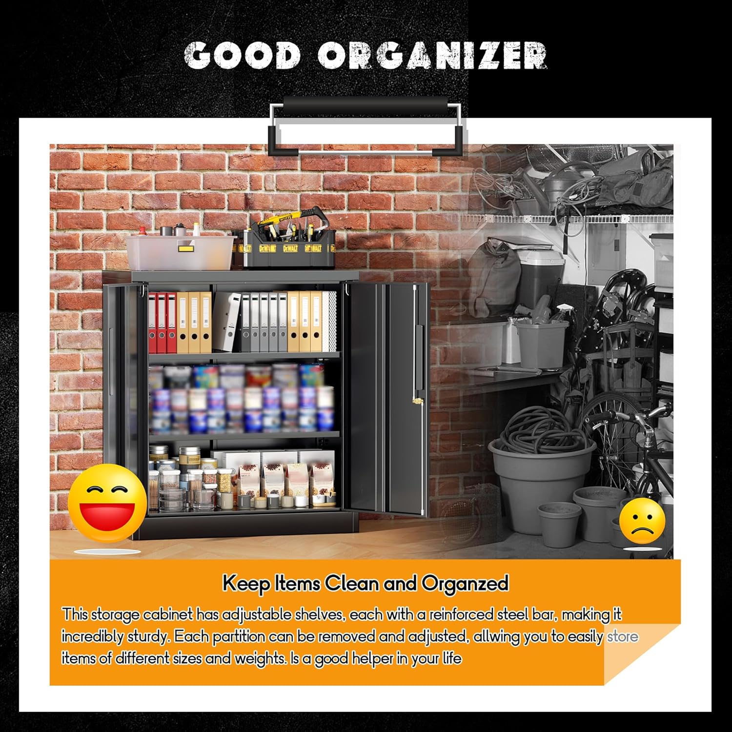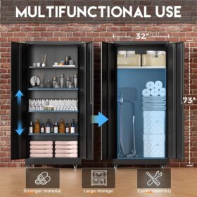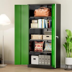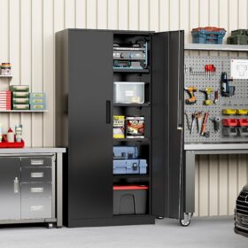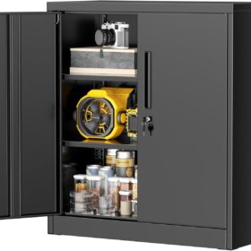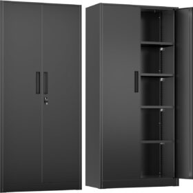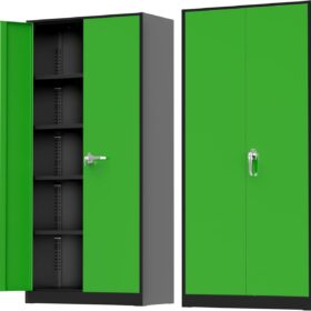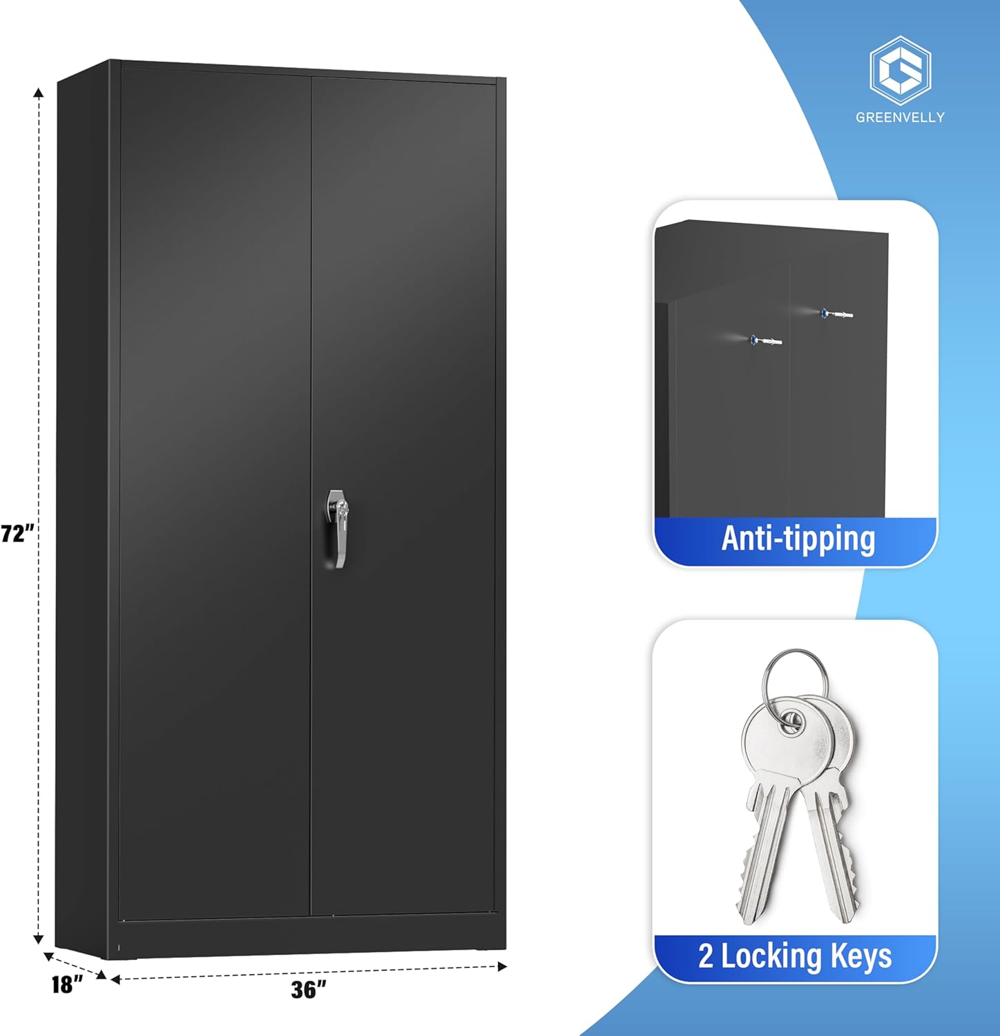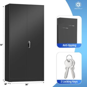 - 【Sturdy and Durable】Greenvelly metal cabinet is made of 0.8 mm cold-rolled steel sheet with a one-piece metal frame. Once assembled, the black metal storage cabinet is not easily deformed, has a stable structure and is easy to clean. Storage cabinet with doors and shelves is also wear-resistant and rust-resistant. This reduces the pressure of daily cleaning.