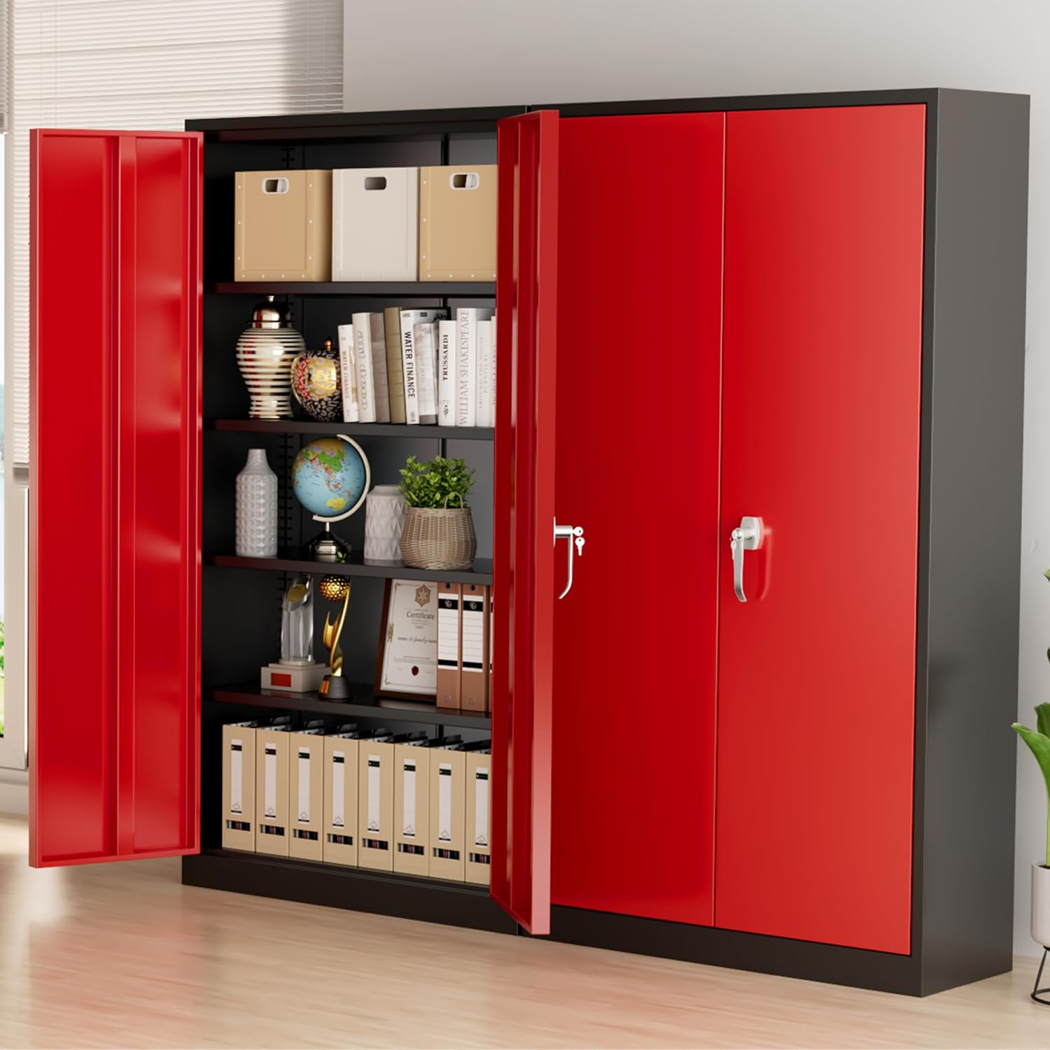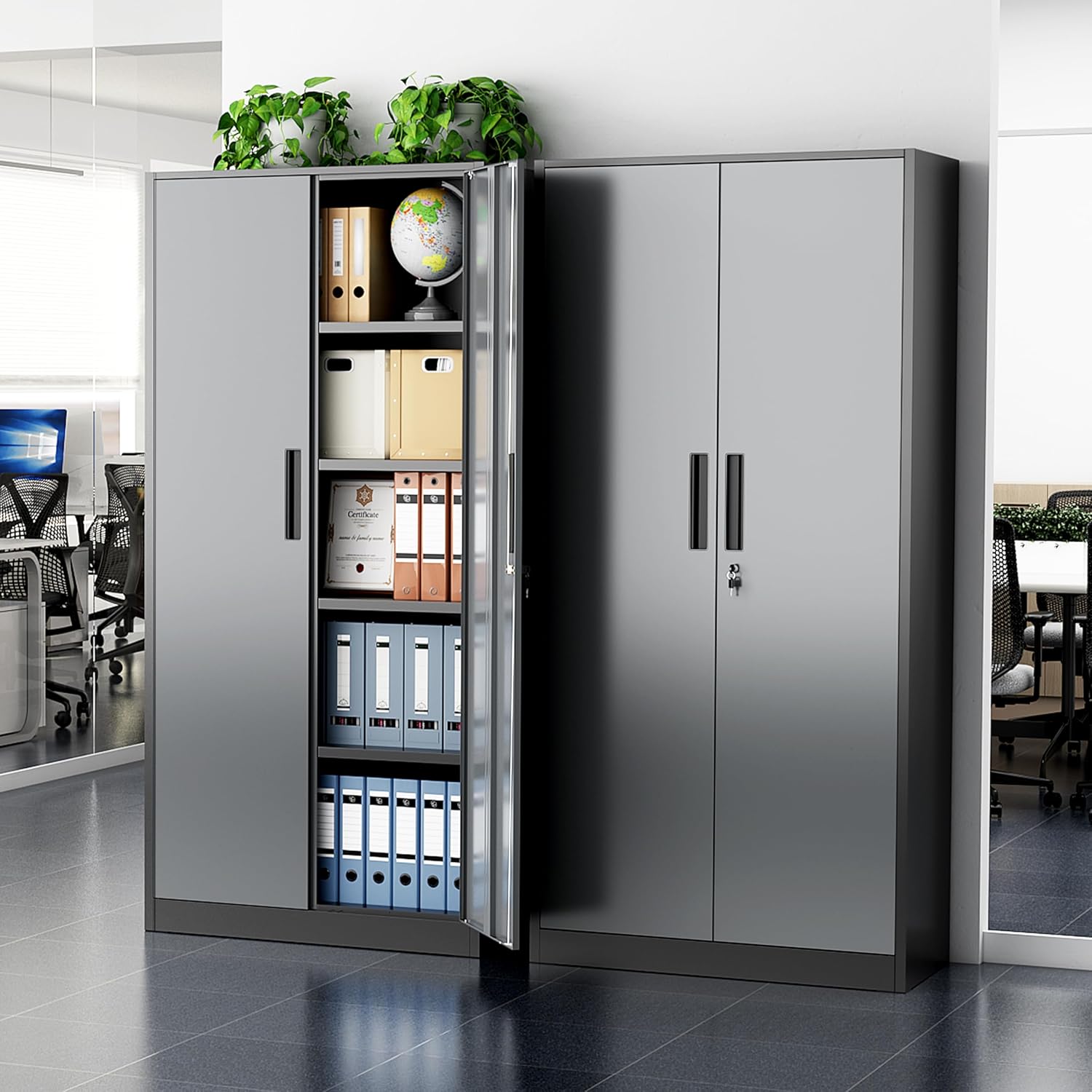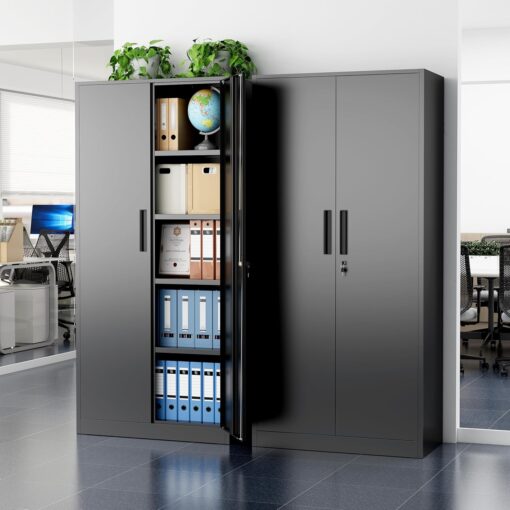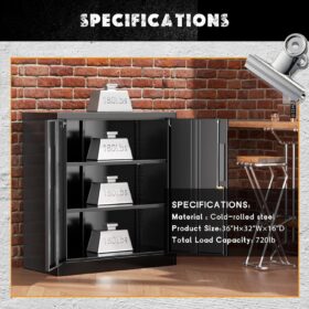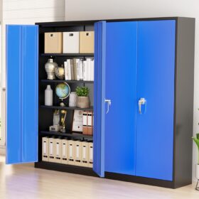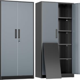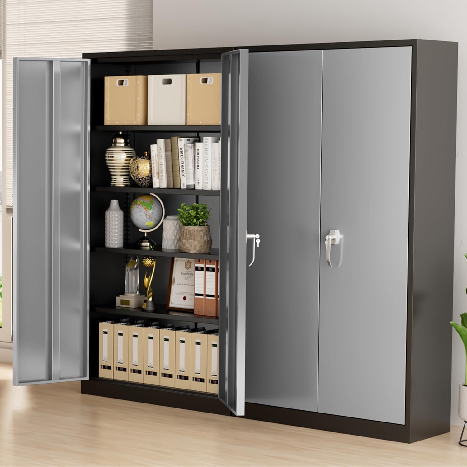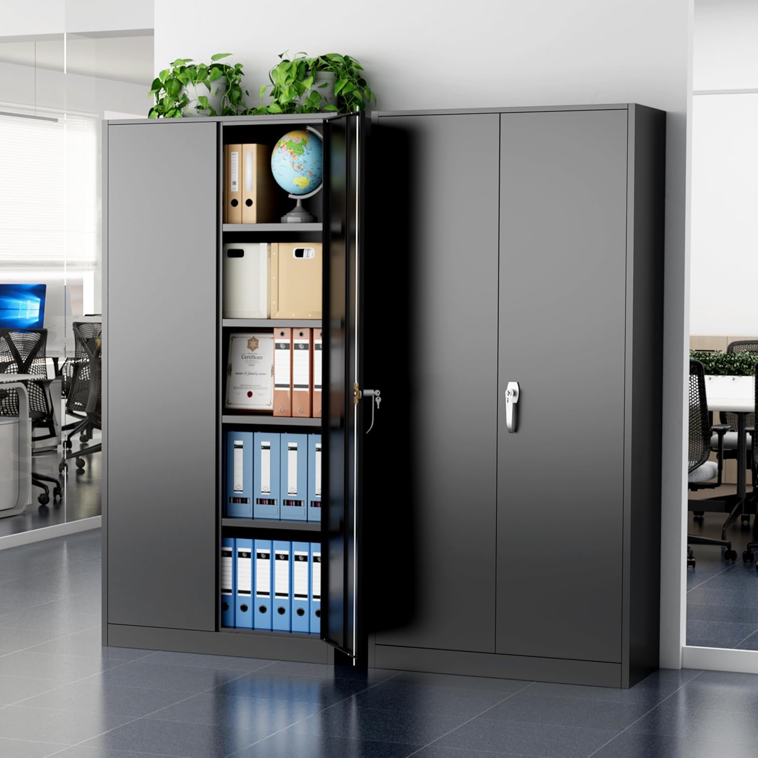 - 【Sturdy and Durable】Greenvelly metal cabinet is made of 0.8 mm cold-rolled steel sheet with a one-piece metal frame. Once assembled, the black metal storage cabinet is not easily deformed, has a stable structure and is easy to clean. Storage cabinet with doors and shelves is also wear-resistant and rust-resistant. This reduces the pressure of daily cleaning.