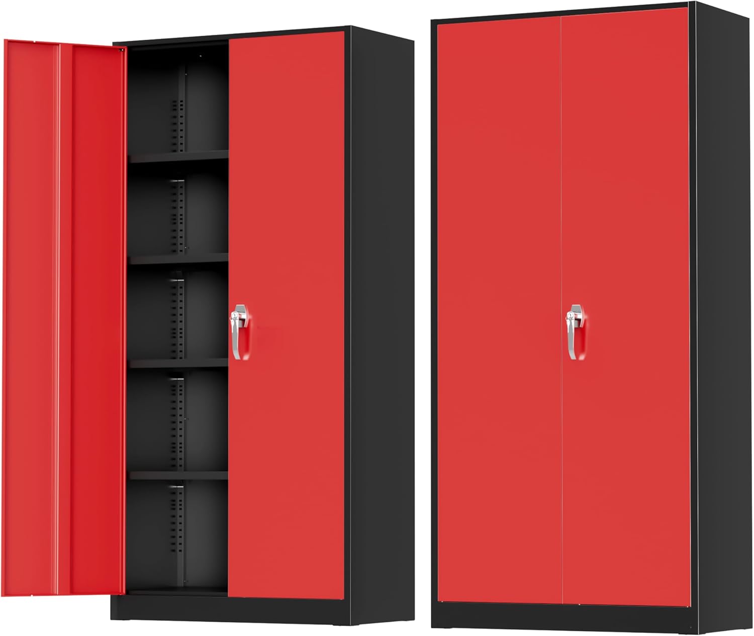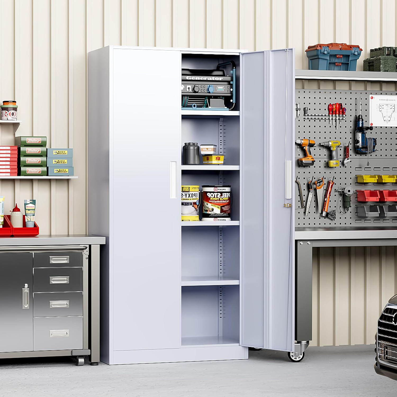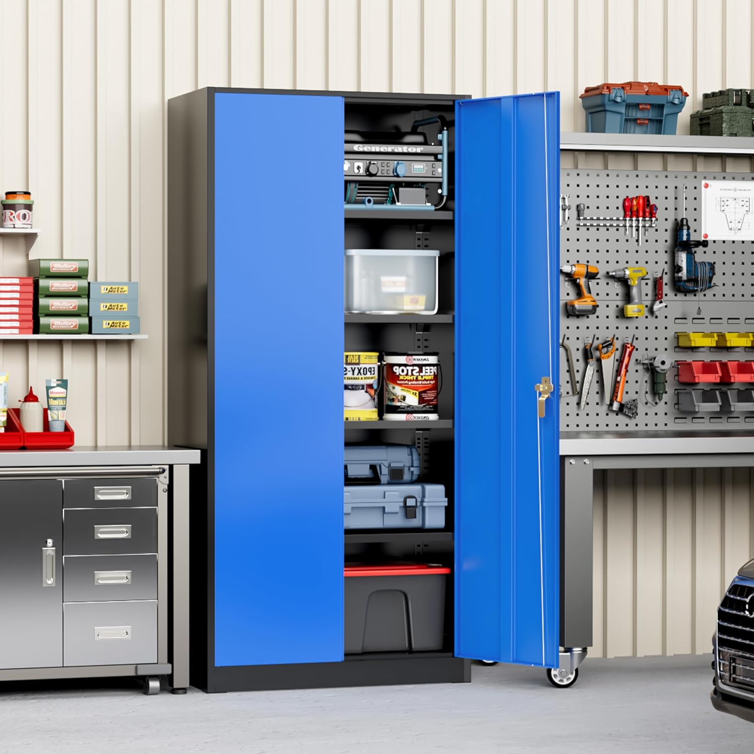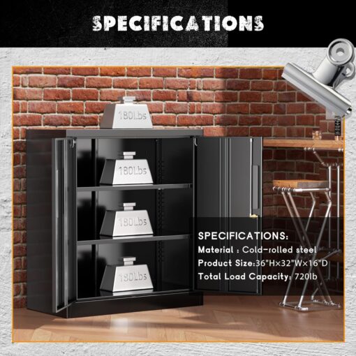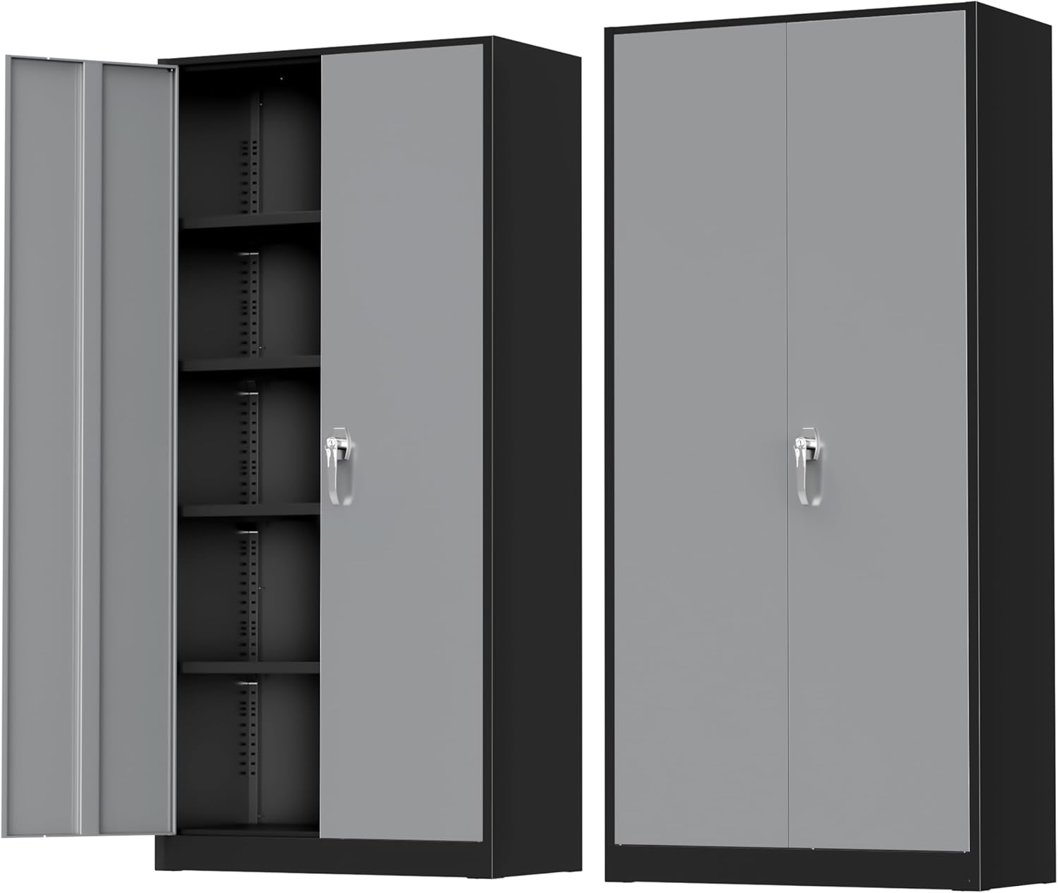 - 【Adjustable Metal Shelves】Greenvelly garage storage cabinet has 4 adjustable metal shelves that can hold up to 180 lbs. each. You can move the height of the shelves to divide the space between the metal cabinet’s tiers. This design provides flexibility to meet your storage space needs.