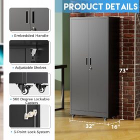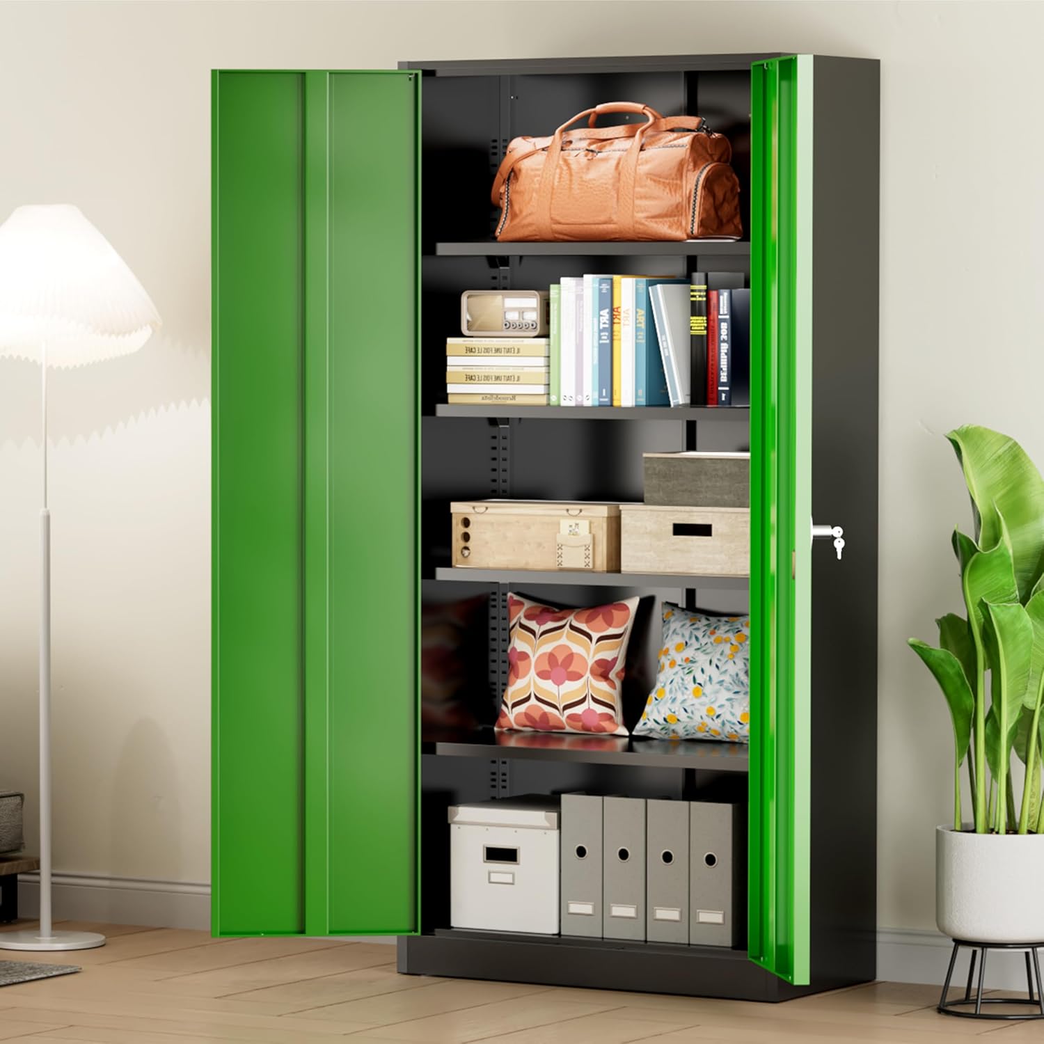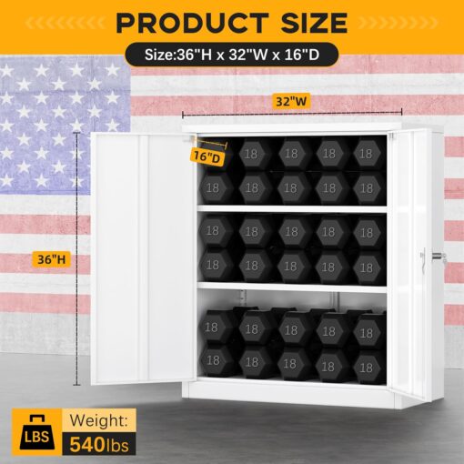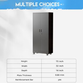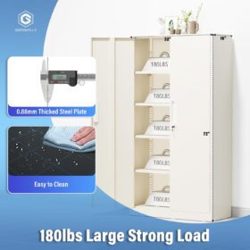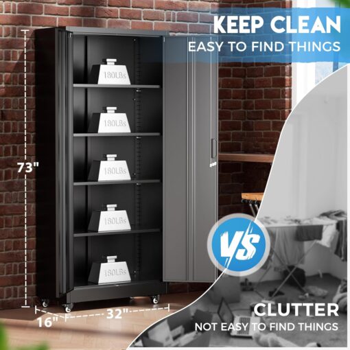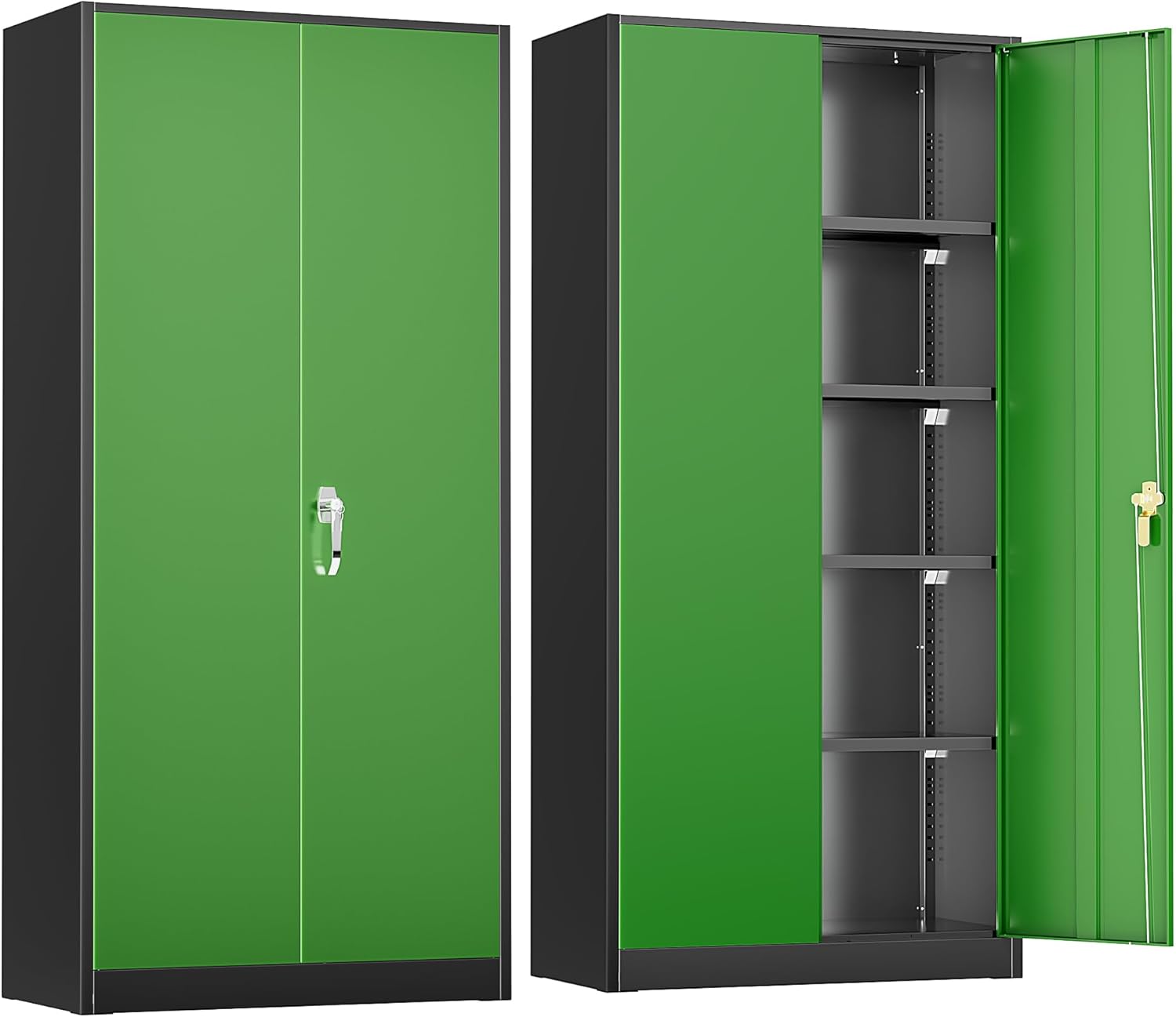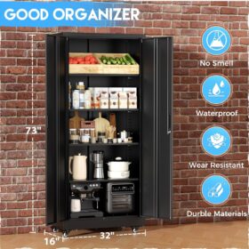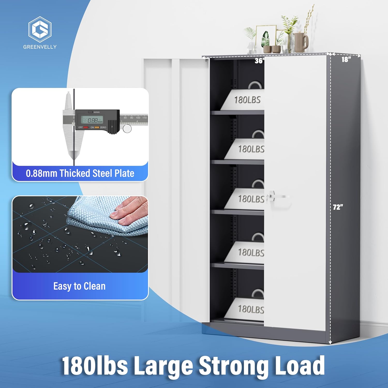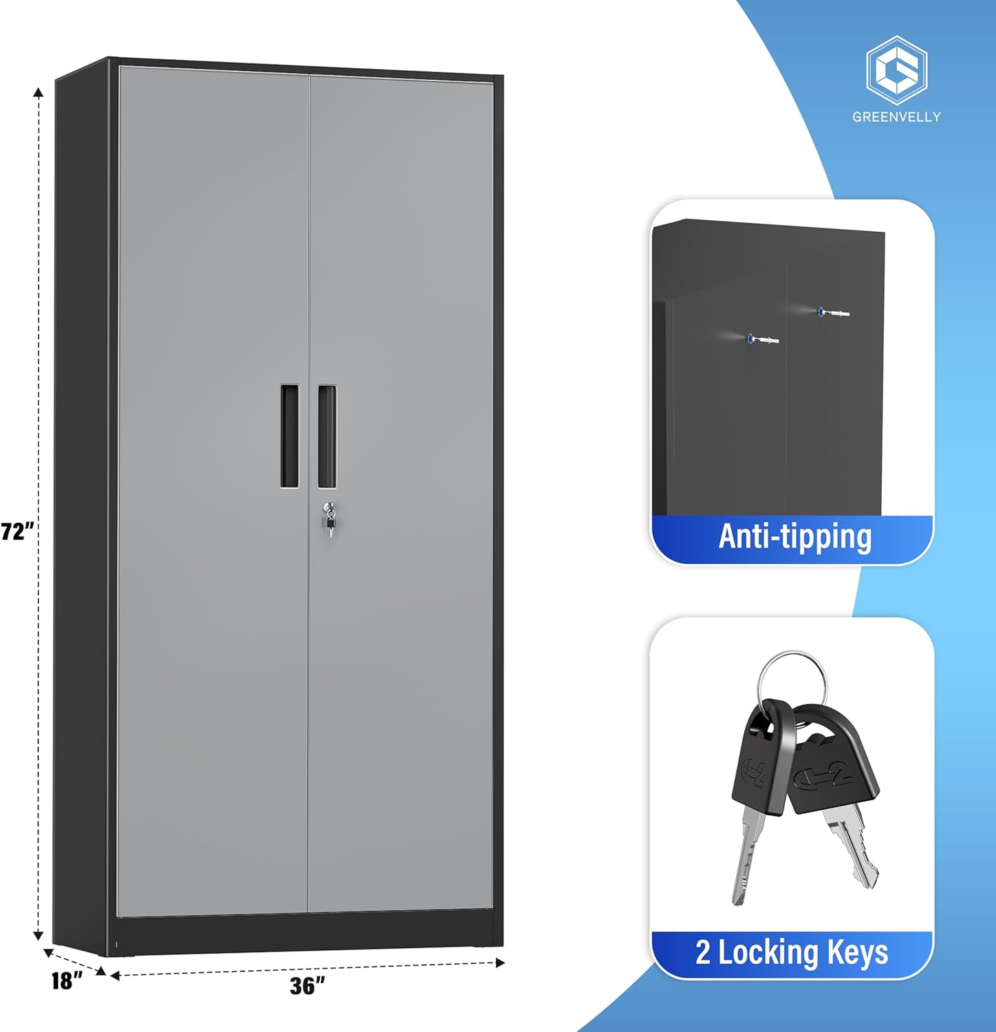 - 【Large Storage Space】Greenvelly metal cabinet can store more than enough items and each shelf has a high weight capacity. Measuring 16 “D x 32 “W x 72 “H, the metal storage cabinet is perfect for storing food, dishes, office supplies, garage tools and more!