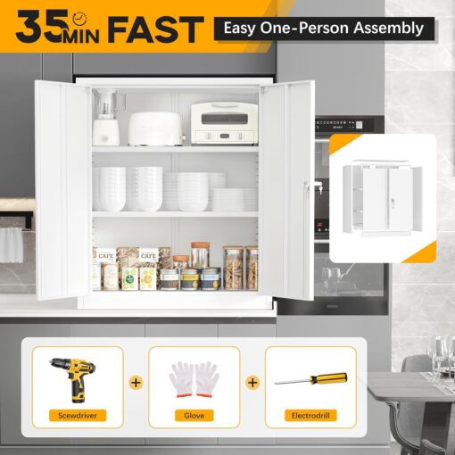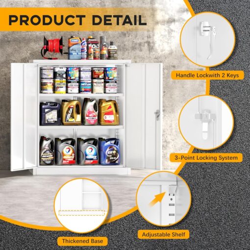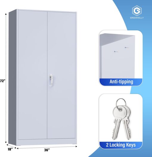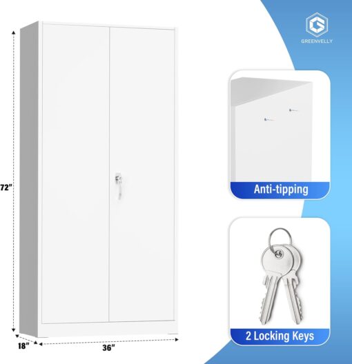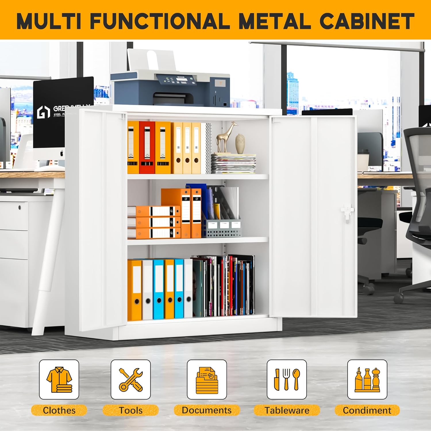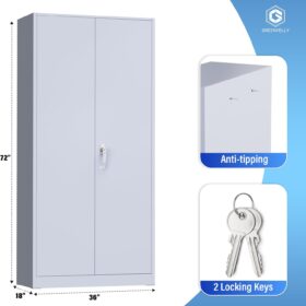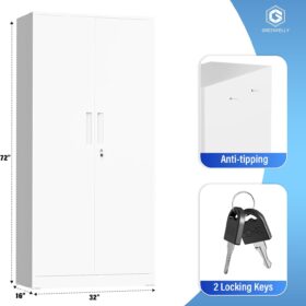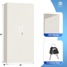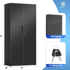 - 【Multi-purpose Metal Cabinets】Greenvelly locking metal cabinet features a 3-point locking structure with 2 keys to keep items secure. Metal locking storage cabinet is suitable for office, garage, bedroom, kitchen and bathroom. Various humanized designs can help you achieve efficient item storage management.