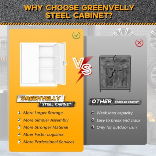 - 【Easy to assemble & customer service】Greenvelly metal cabinet comes with a paper version of the installation tutorial, and each part is numbered, making it very easy to assemble. We recommend using power tools for assembly. If there is any problem (such as damage, missing package or missing accessories). We have a professional customer service team to solve your problem.