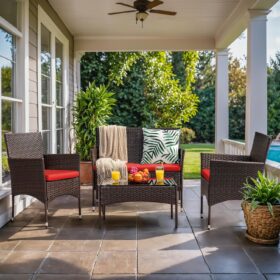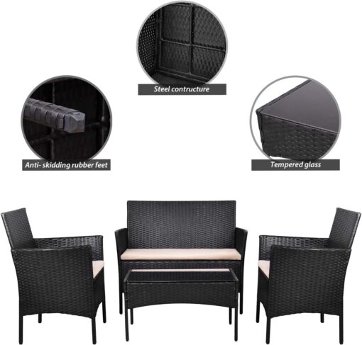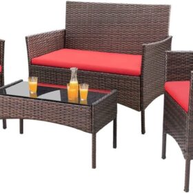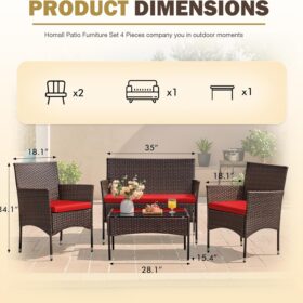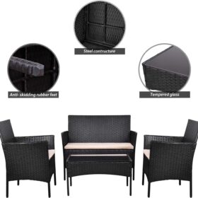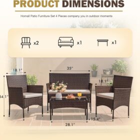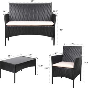 - Updated Comfort Cushion: This outdoor 4 pieces patio furniture set come with comfortable cushions, which is filled with high density thickened sponges to give you a comfortable seating experience. It also covered with zipper designed cushion covers, it’s easy for detachable to make a easier cleaning.