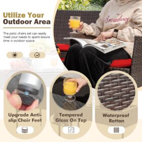 - Free Combination for Wide Use: This patio set come with 2 single chairs, 1 double chair and 1 coffee table. It can be placed according to your different outdoor space and your personal preferences. Make it suitable for using in your patio, balcony, backyard, porch, garden, poolside, and so on.