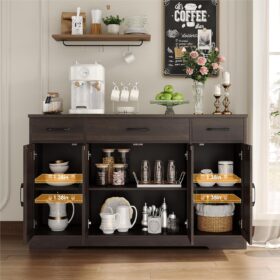 - Multifunctional Buffet: This buffet sideboard is a versatile pick that is ready to tuck neatly as a sideboard cabinet, a coffee bar cabinet, a storage cabinet, or a console table. Having one or pairs in the kitchen, dining room, living room, or entryway, your home will take on a new look instantly