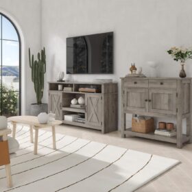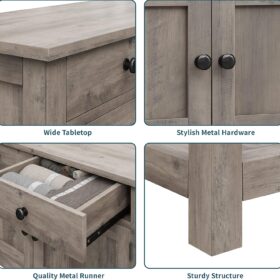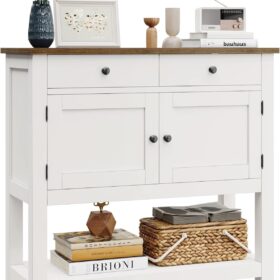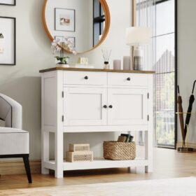 - LARGE STORAGE SPACE: Featuring a spacious tabletop, two equally-sized handy drawers, a two-door cabinet and a large bottom shelf, this console table incorporates storage with both closed and open sections to keep all your essentials tidy and neatly organized