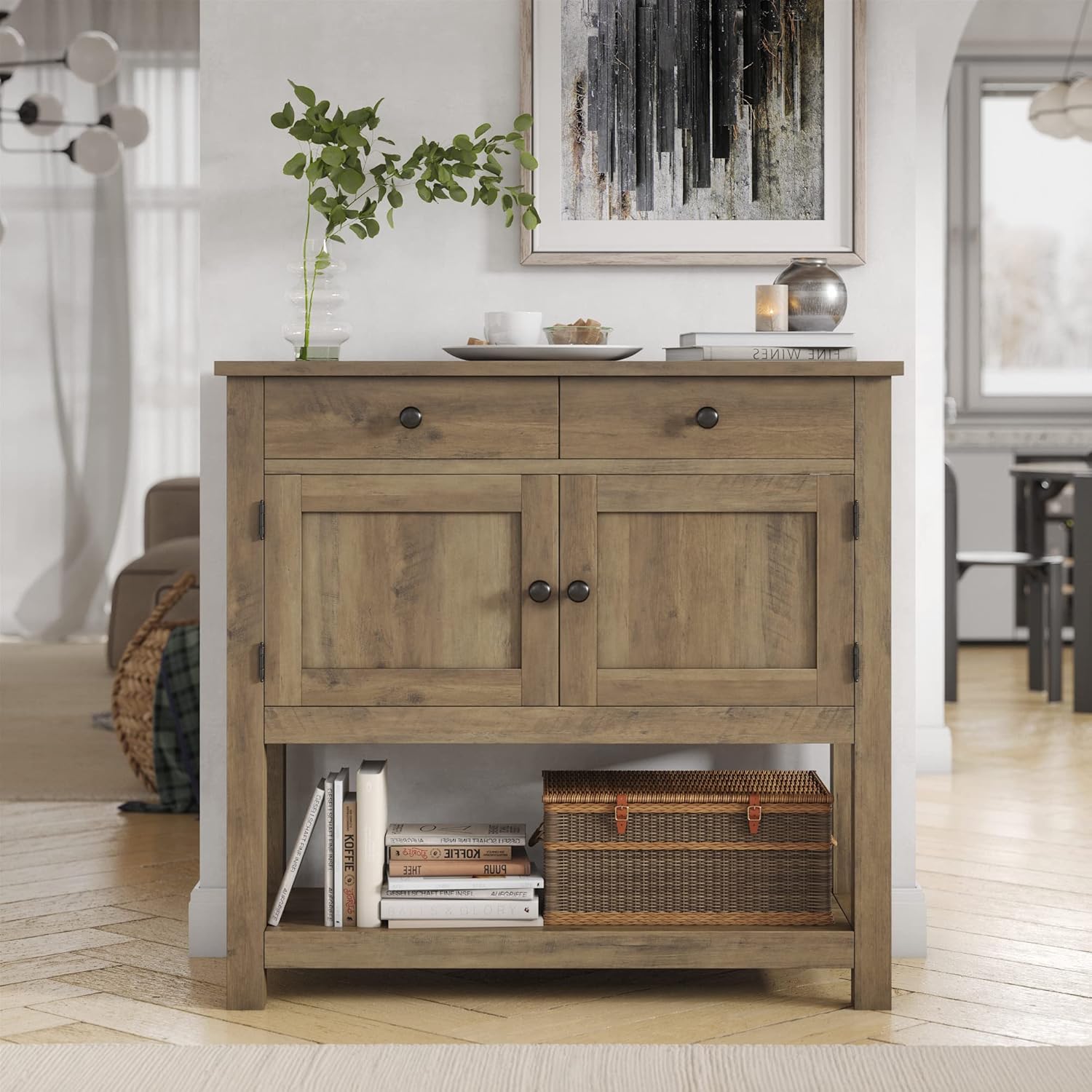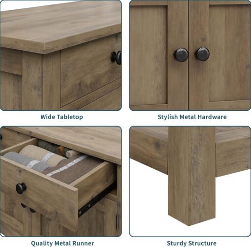 - MULTI-FUNCTIONAL TABLE: With a versatile design and large amount of storage, this practical piece of furniture can be used not only as a side table/coffee bar in your living room, but also a buffet sideboard in the kitchen, a console table in the hallway, or a night stand beside your bed