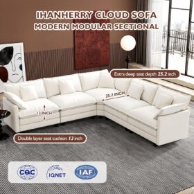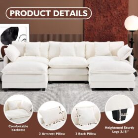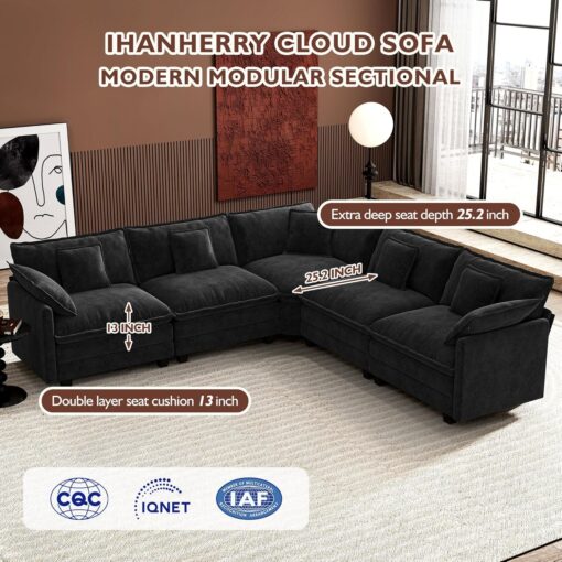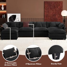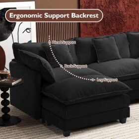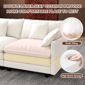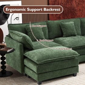 - 【Ergonomic Design】Ihanherry U-shaped couch is equipped with four backrest pillow, two removable armrest pillows and two ottomans, providing extra support for the back and waist. Each pillow feels like as soft as clouds. When you sit on the sofa, it can cling to your back and waist, giving you an extremely comfortable experience.