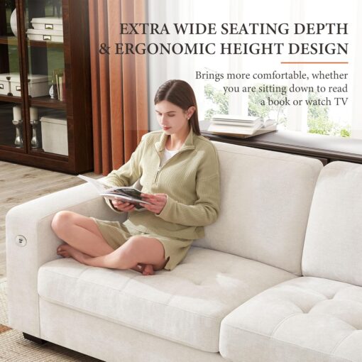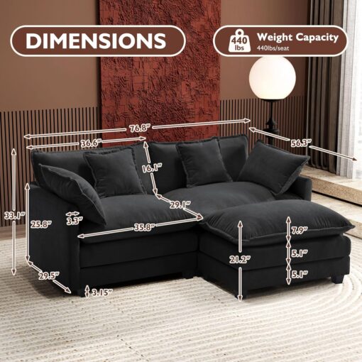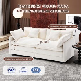 - 【Sturdy Couch】The frame of cloud sofa is made of high-quality solid wood, making it more durable and sturdy. Each sofa can withstand a maximum weight of 440 pounds, exceeding that of most sofas. With a seat depth of 25.2″, it is suitable for most body types and various sitting postures.