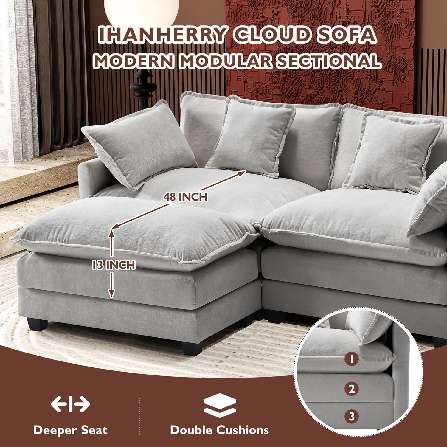 - 【Flexible Modular Sofa�? Each modular piece of the cloud couch can be moved easily, and it is convenient to allow you to arrange them into any desired shape based on your preferences and needs. Customize your own sofa to fit different spaces, offering flexibility and style for your home.
