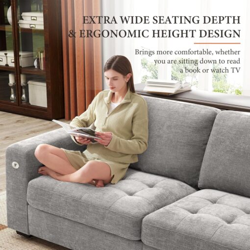 - 【Cloud Couch】The surface of the sofa is wrapped in high-quality chenille fabric, which is skin-friendly and breathable. The thick cushion is made of double-layer high-elastic sponge and fluffy fillment, making it more comfortable and soft. Experience the ultimate comfort of the sofa that feels like sitting on a cloud when resting.