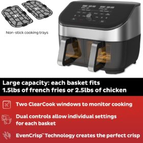 - Quick Cleanup: No more fighting about who has to do the dishes. The dishwasher-safe cooking baskets and trays make clean-up a breeze.