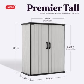 Keter Premier Tall 4.6 x 5.6 ft. Resin Outdoor Storage Shed Shelving Brackets Patio Furniture
