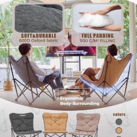 - 【Perfect Double Loveseat for Two Adults】Designed with a generously sized seat to comfortably accommodate two adults, this double butterfly chair features an extended 52″ width that’s ideal for couples, friends, or family sharing. Say goodbye to crowded seating—enjoy ample space for relaxed bonding, whether indoors or outdoors.