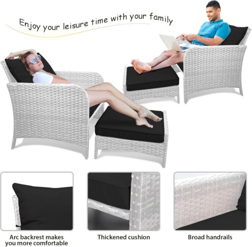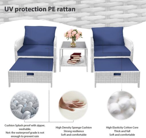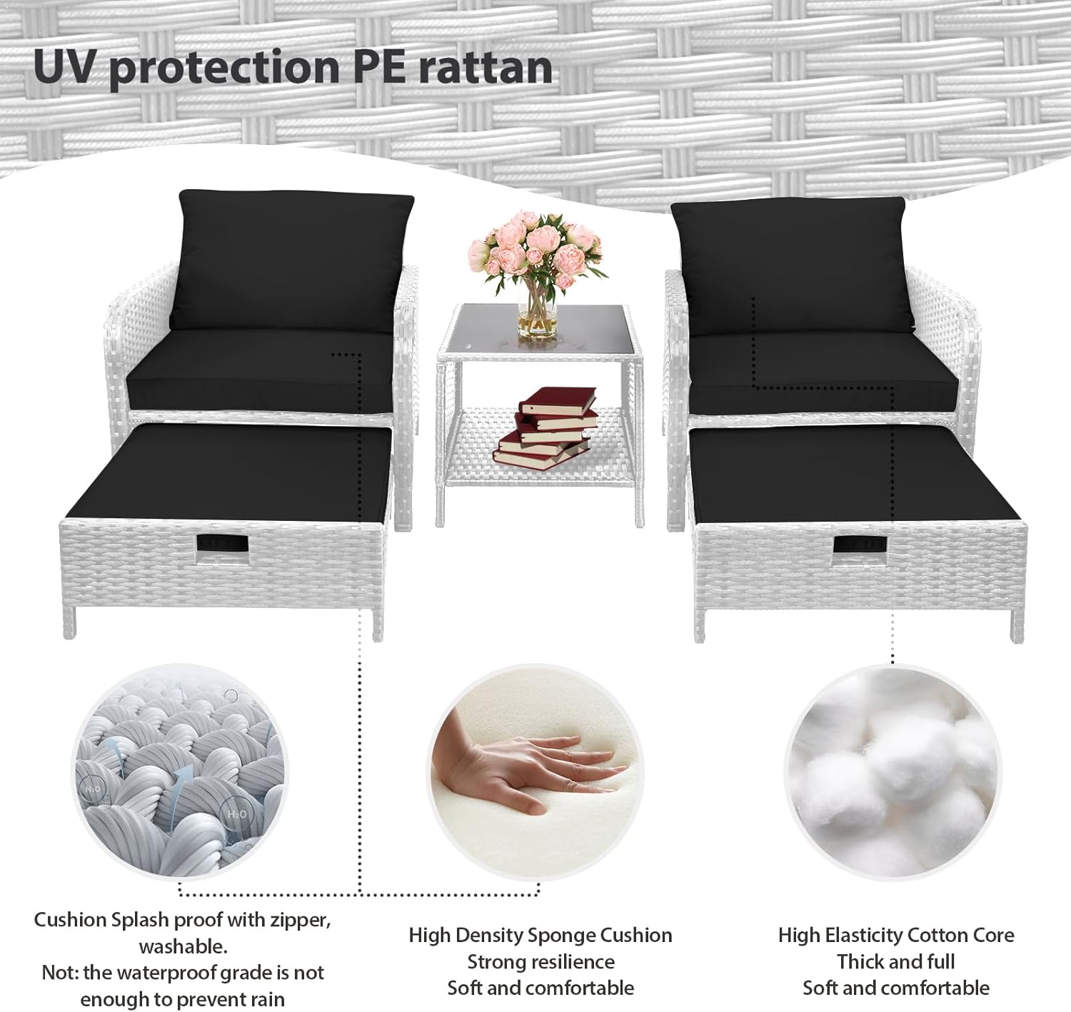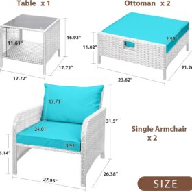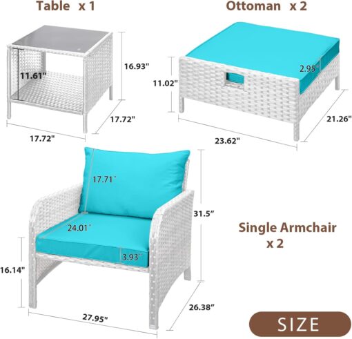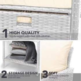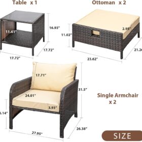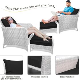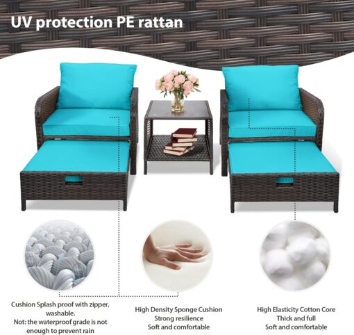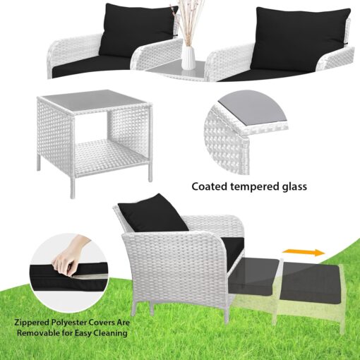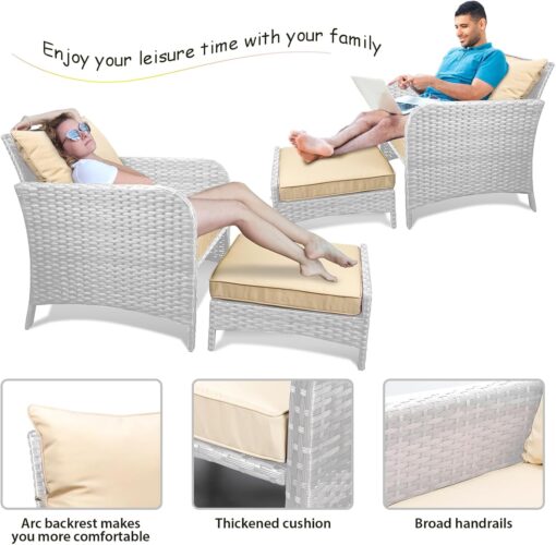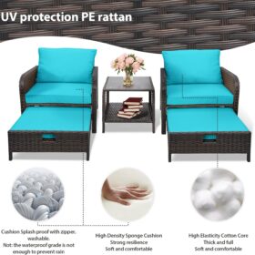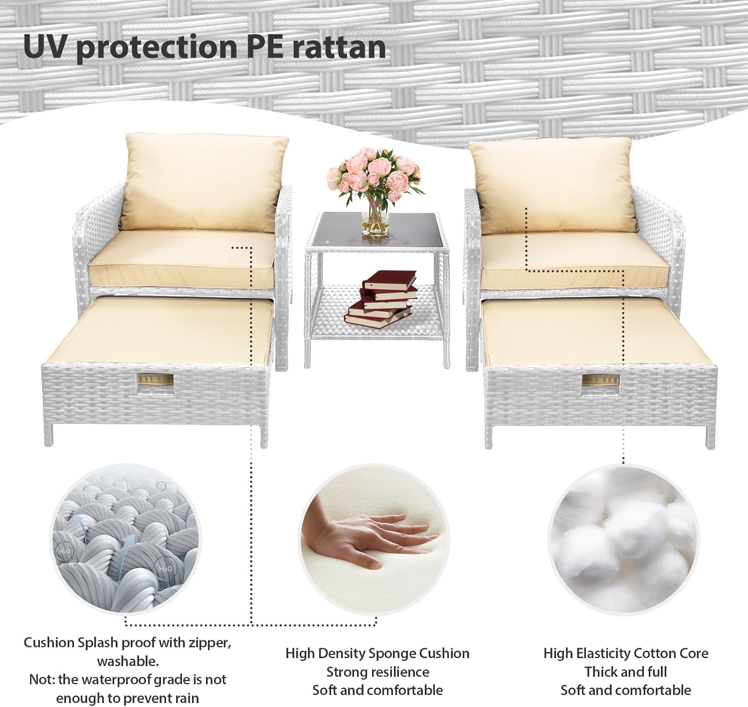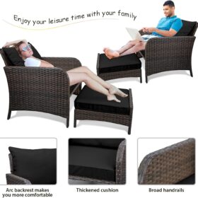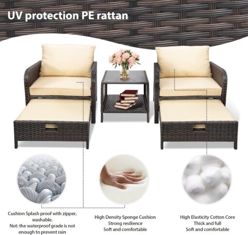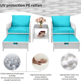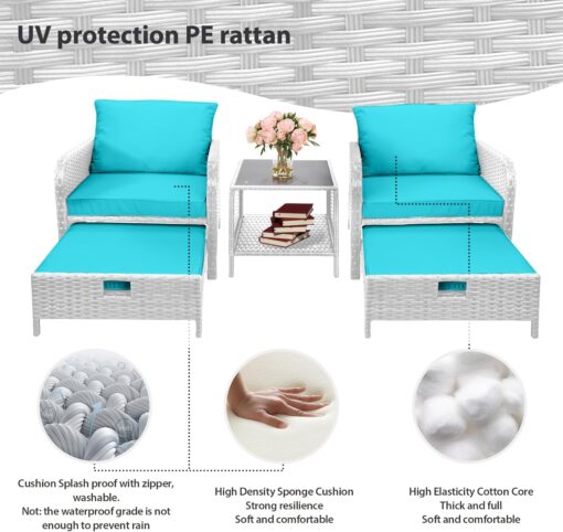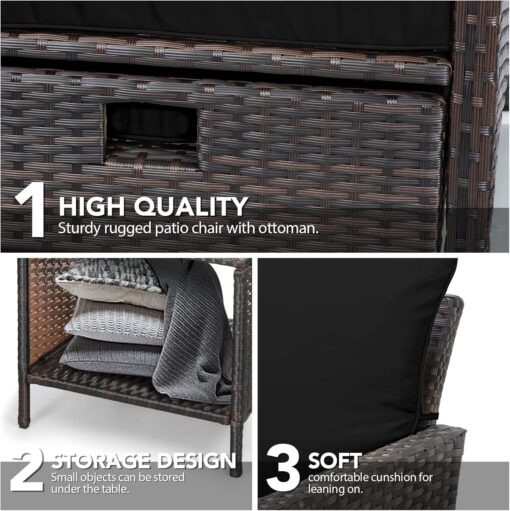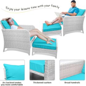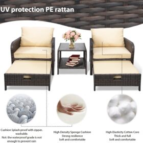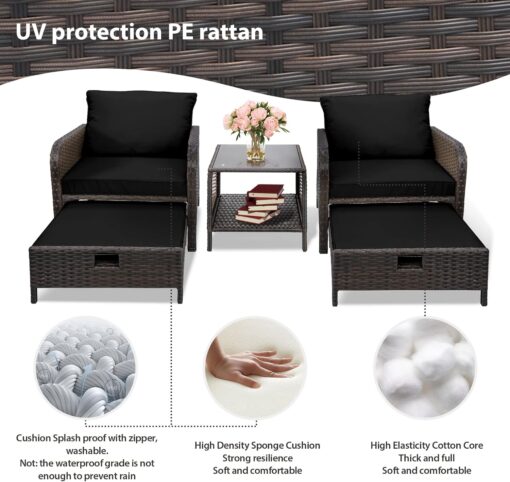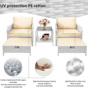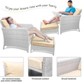 - �?Sturdy balcony furniture】The all-weather PE wicker makes the whole set more sturdy. The material is waterproof and UV-proof, and will not fade in humid climate or under strong sunlight. These reasons ensure its longevity.