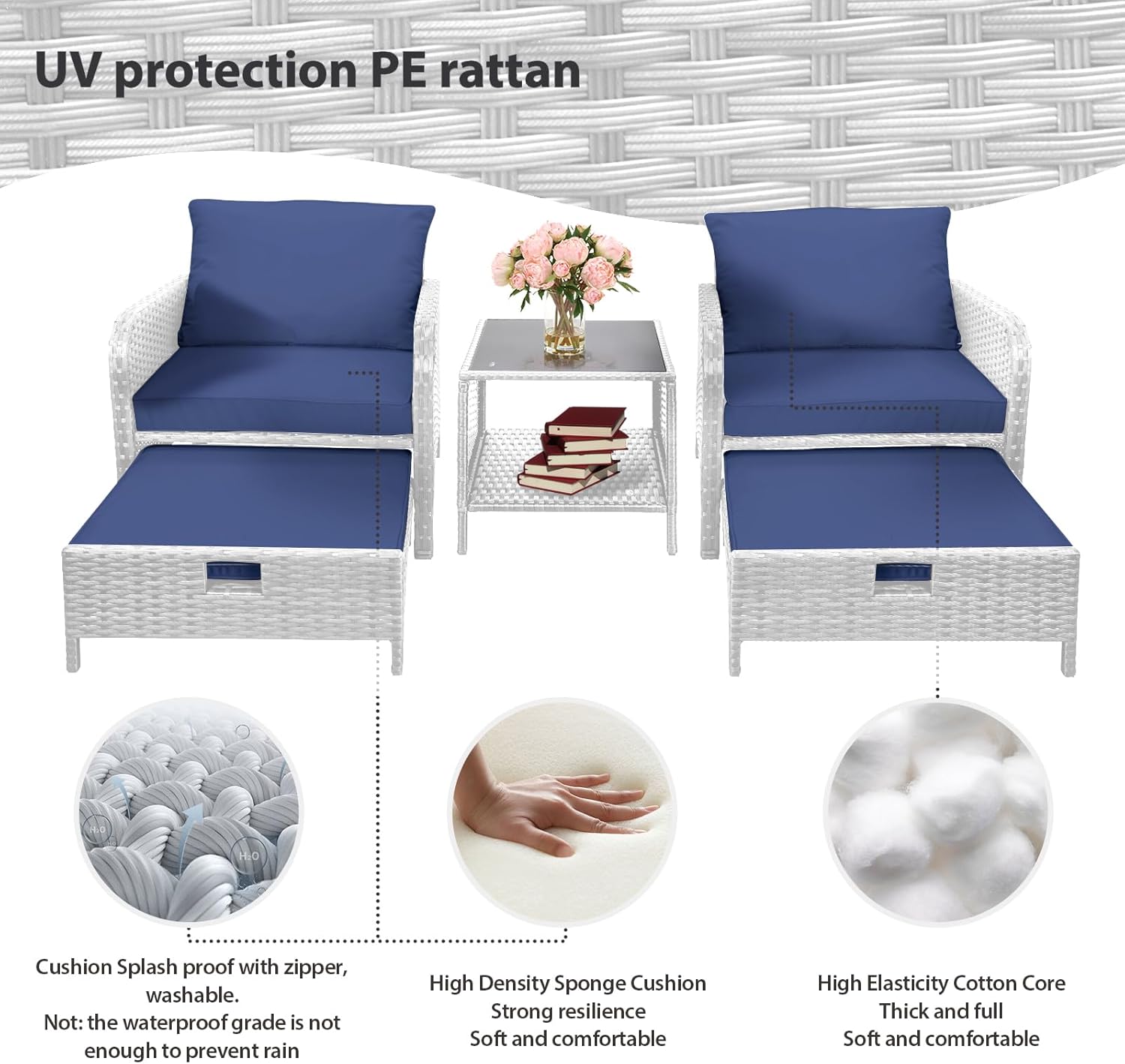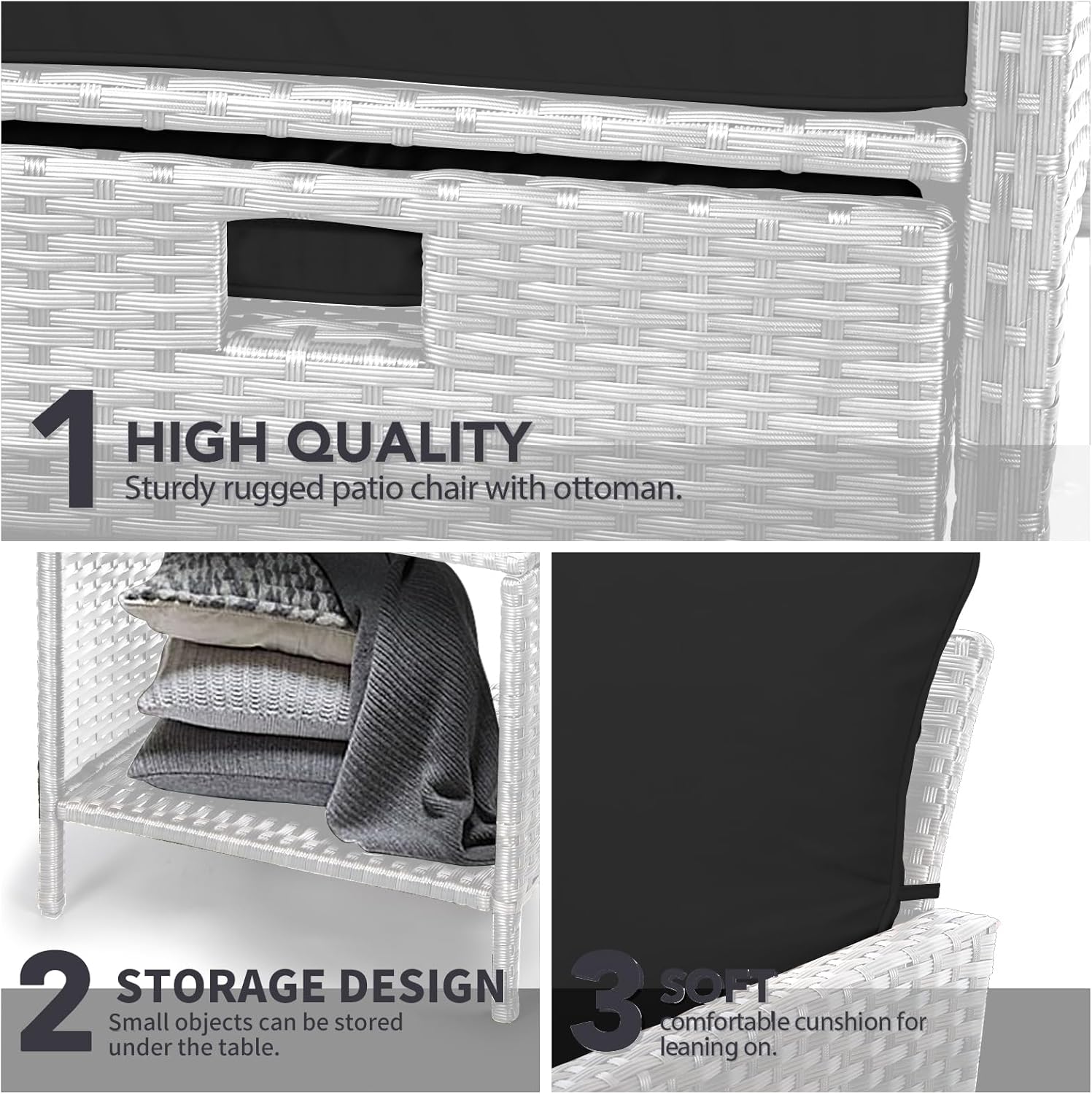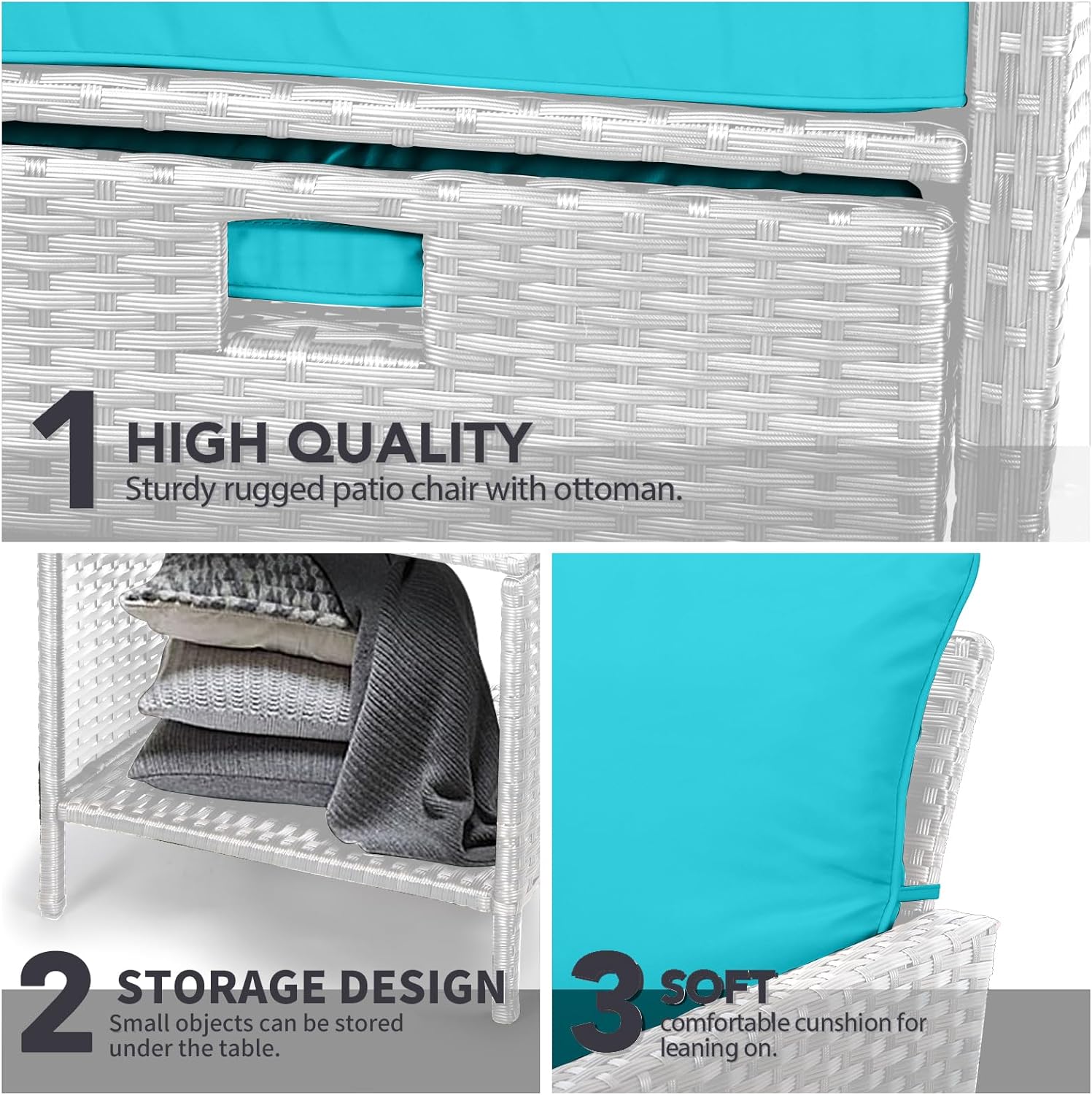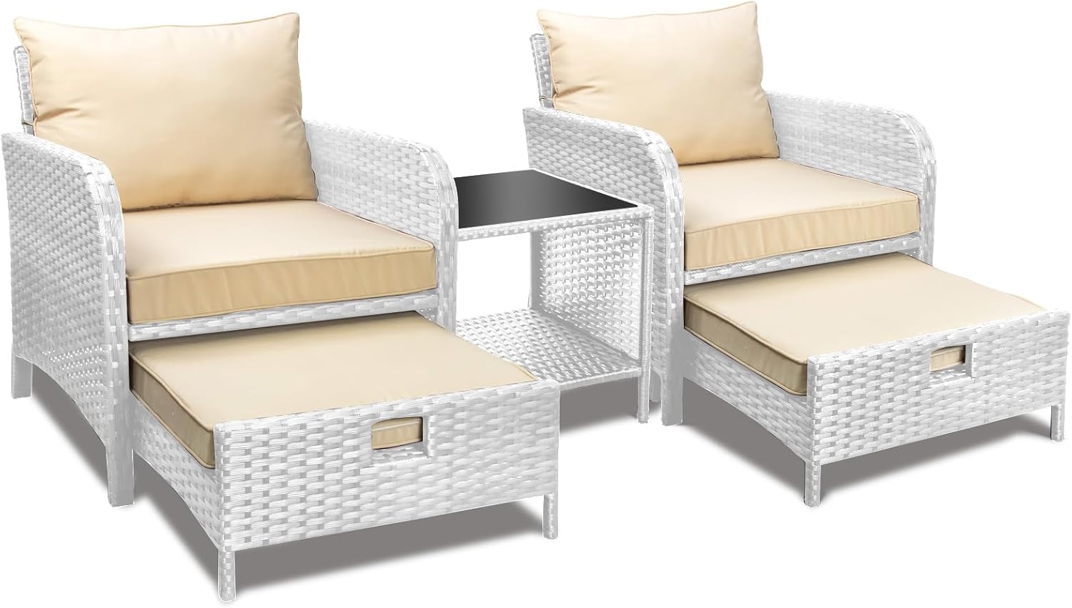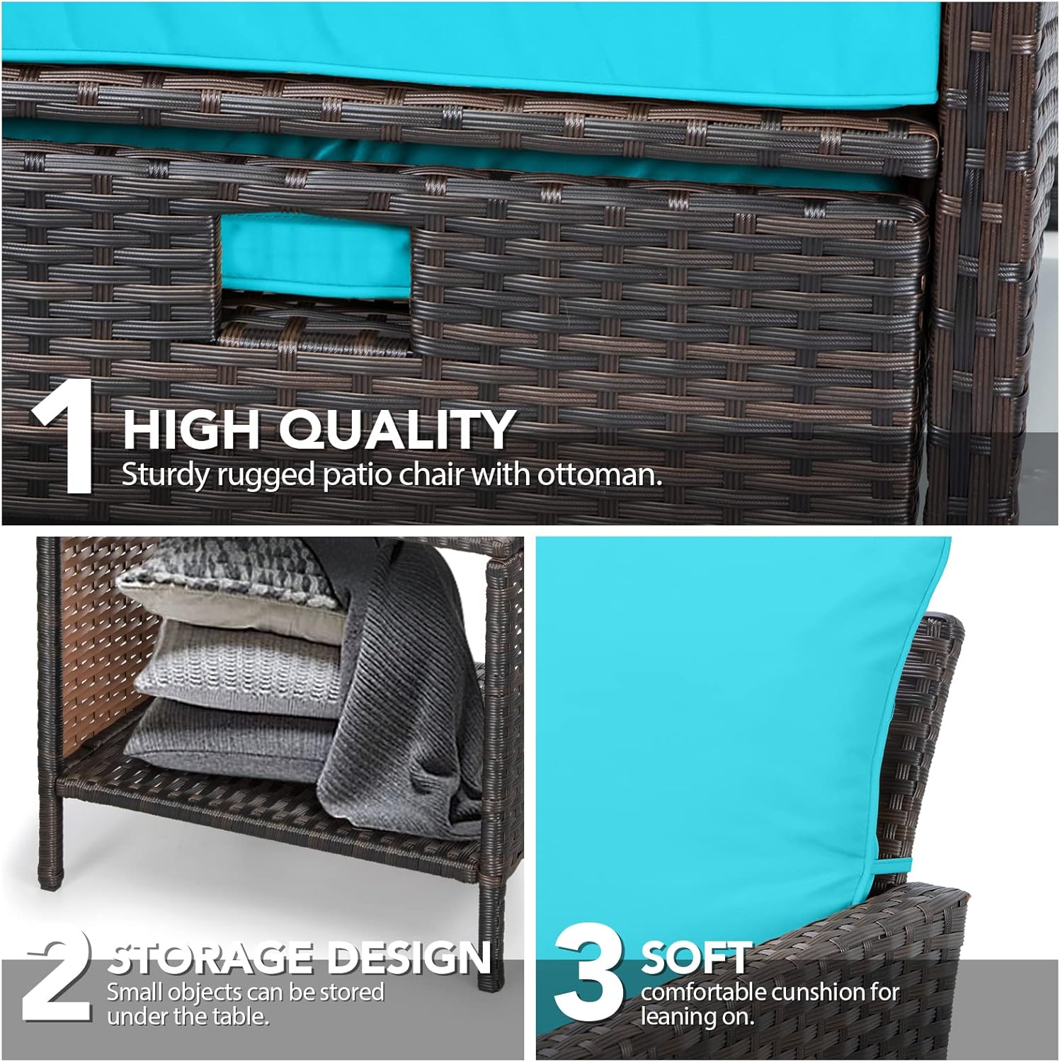 - �?Sturdy balcony furniture】The all-weather PE wicker makes the whole set more sturdy. The material is waterproof and UV-proof, and will not fade in humid climate or under strong sunlight. These reasons ensure its longevity.