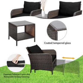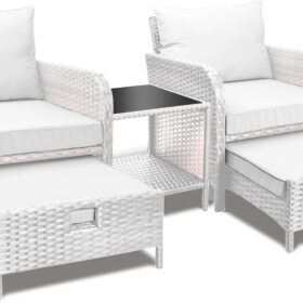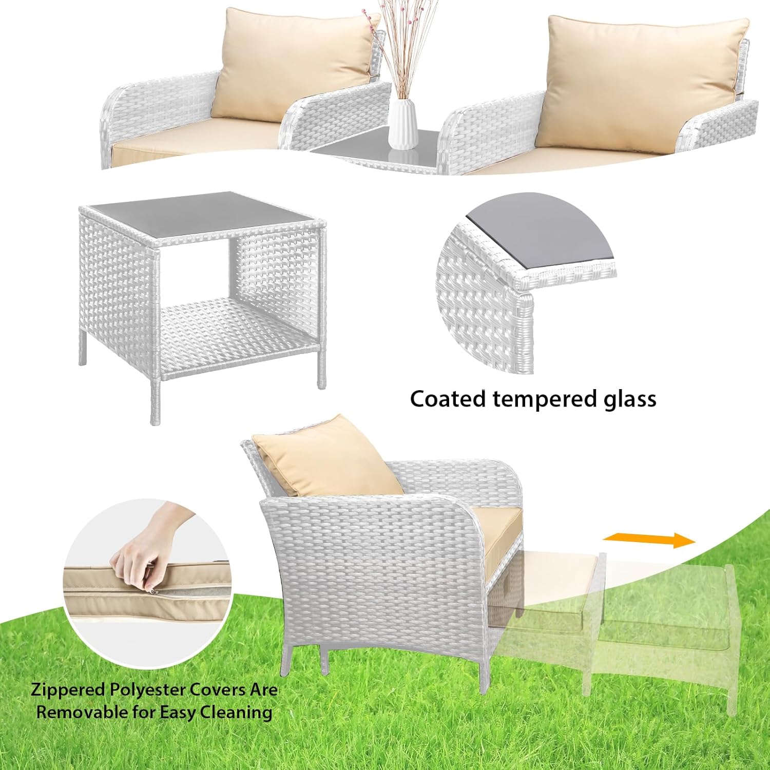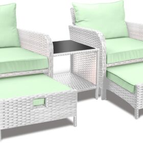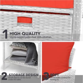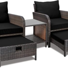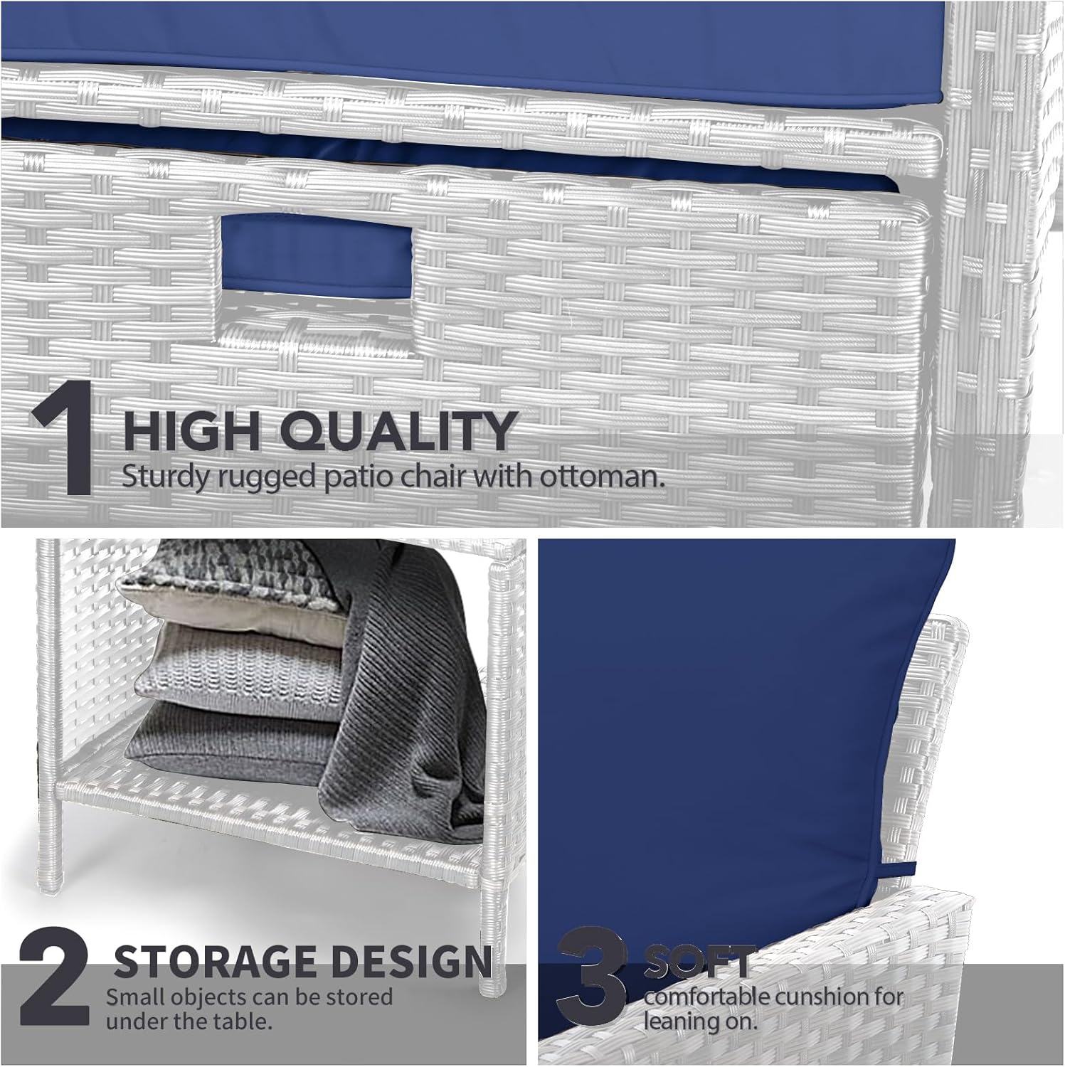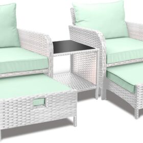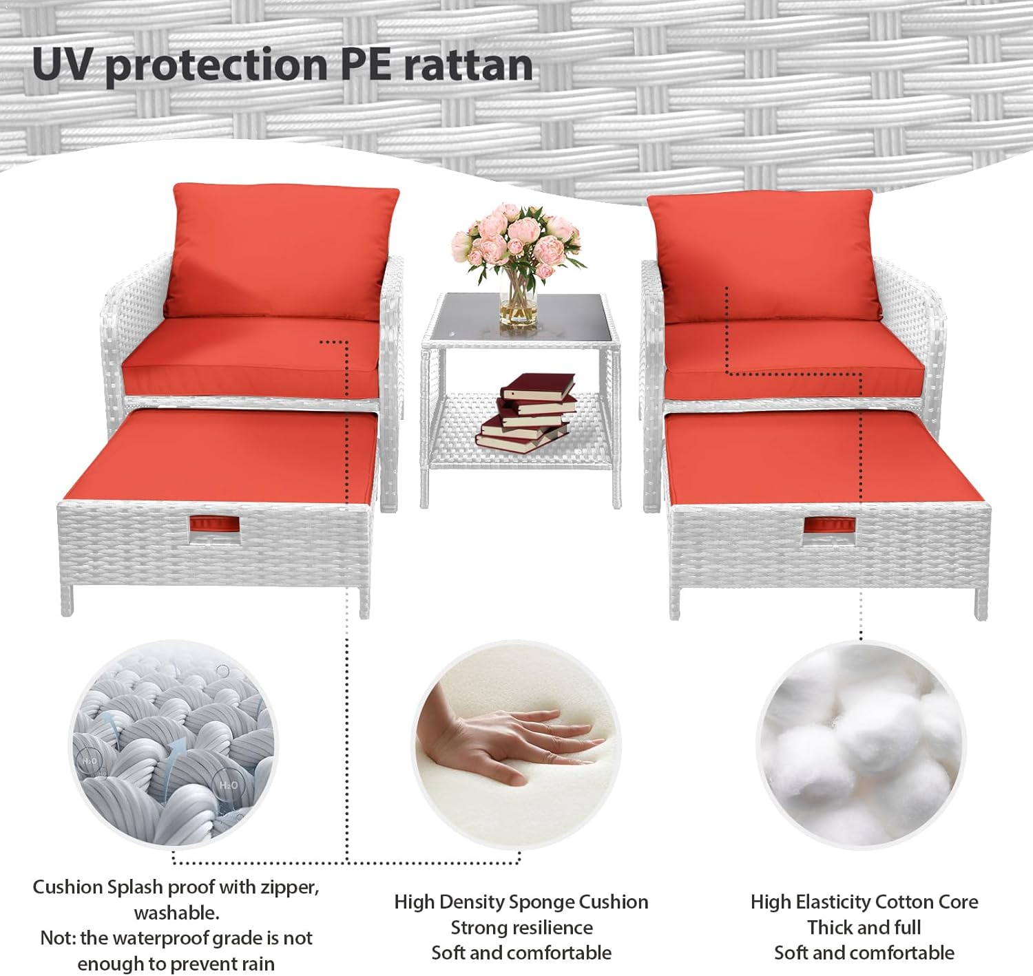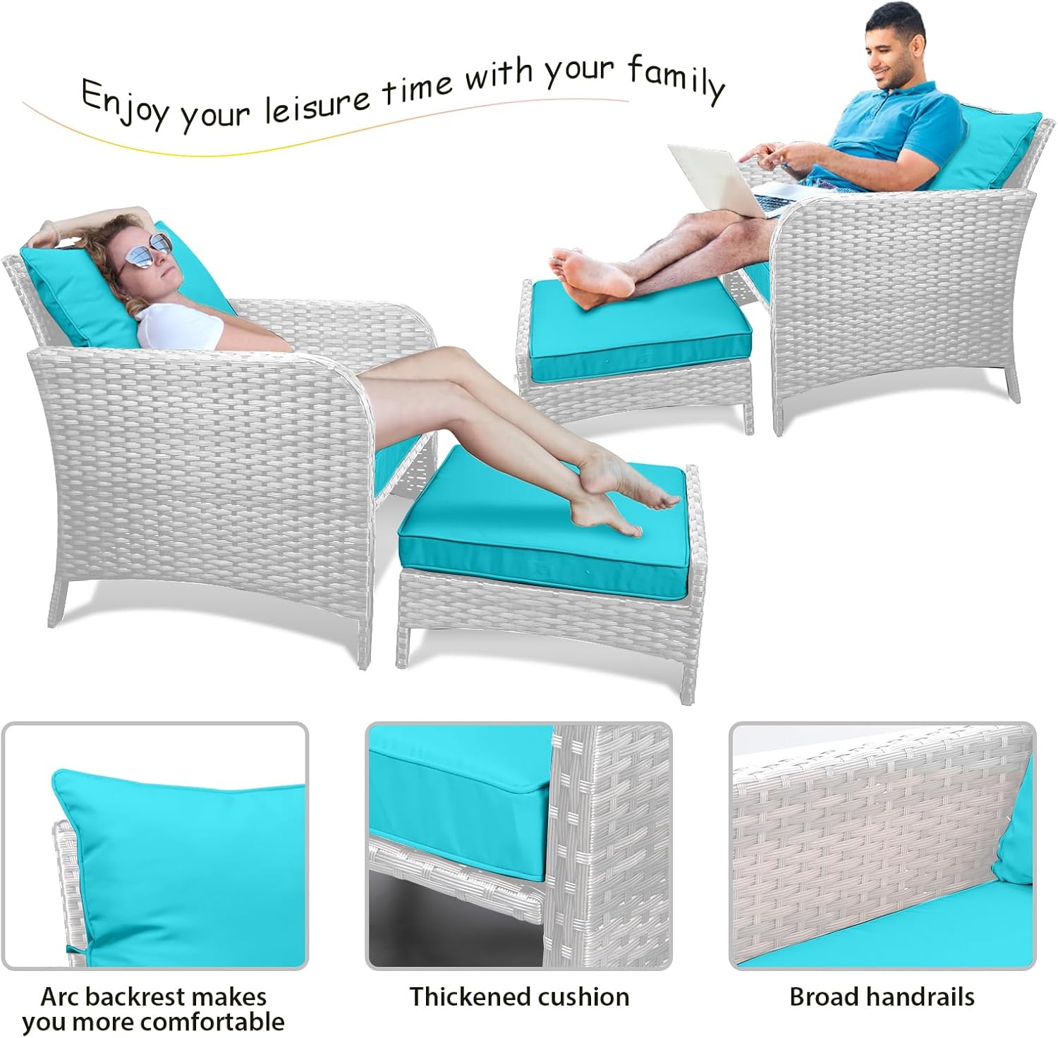 - �?Sturdy balcony furniture】The all-weather PE wicker makes the whole set more sturdy. The material is waterproof and UV-proof, and will not fade in humid climate or under strong sunlight. These reasons ensure its longevity.