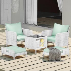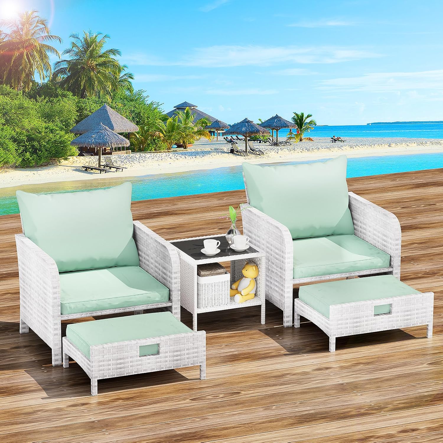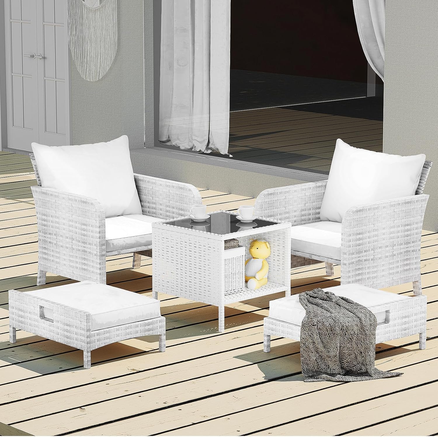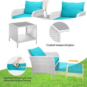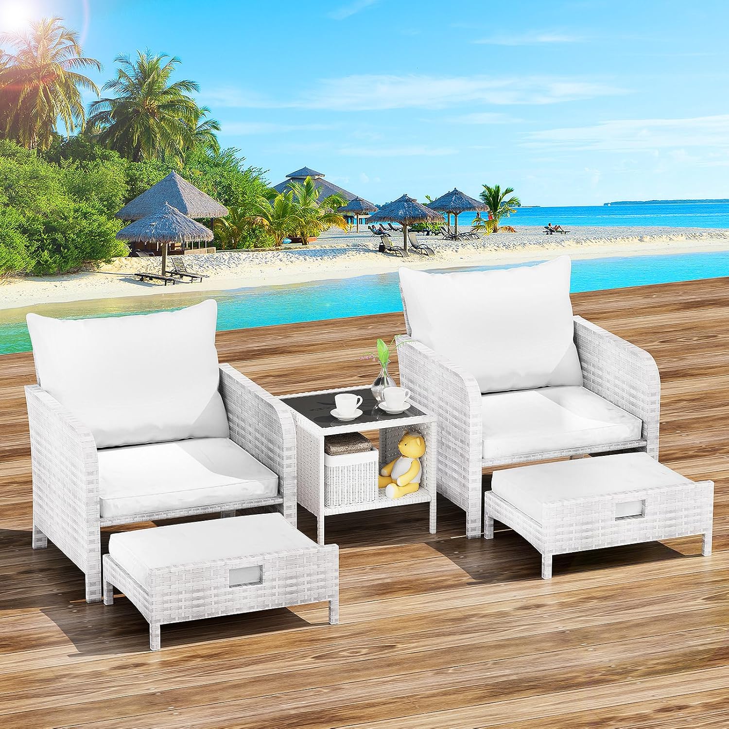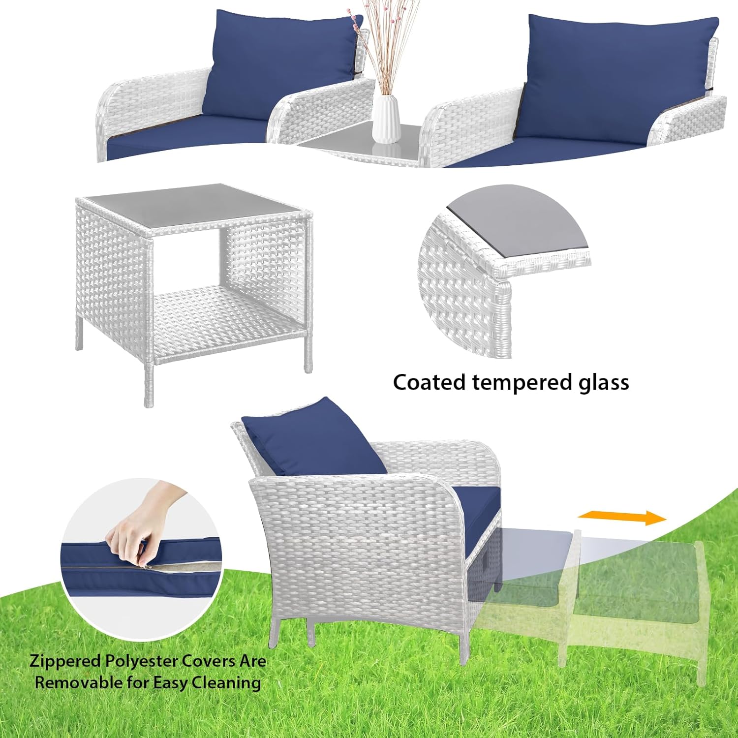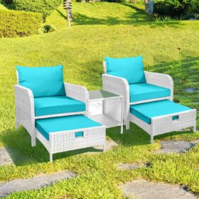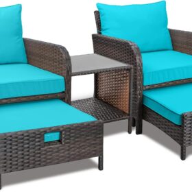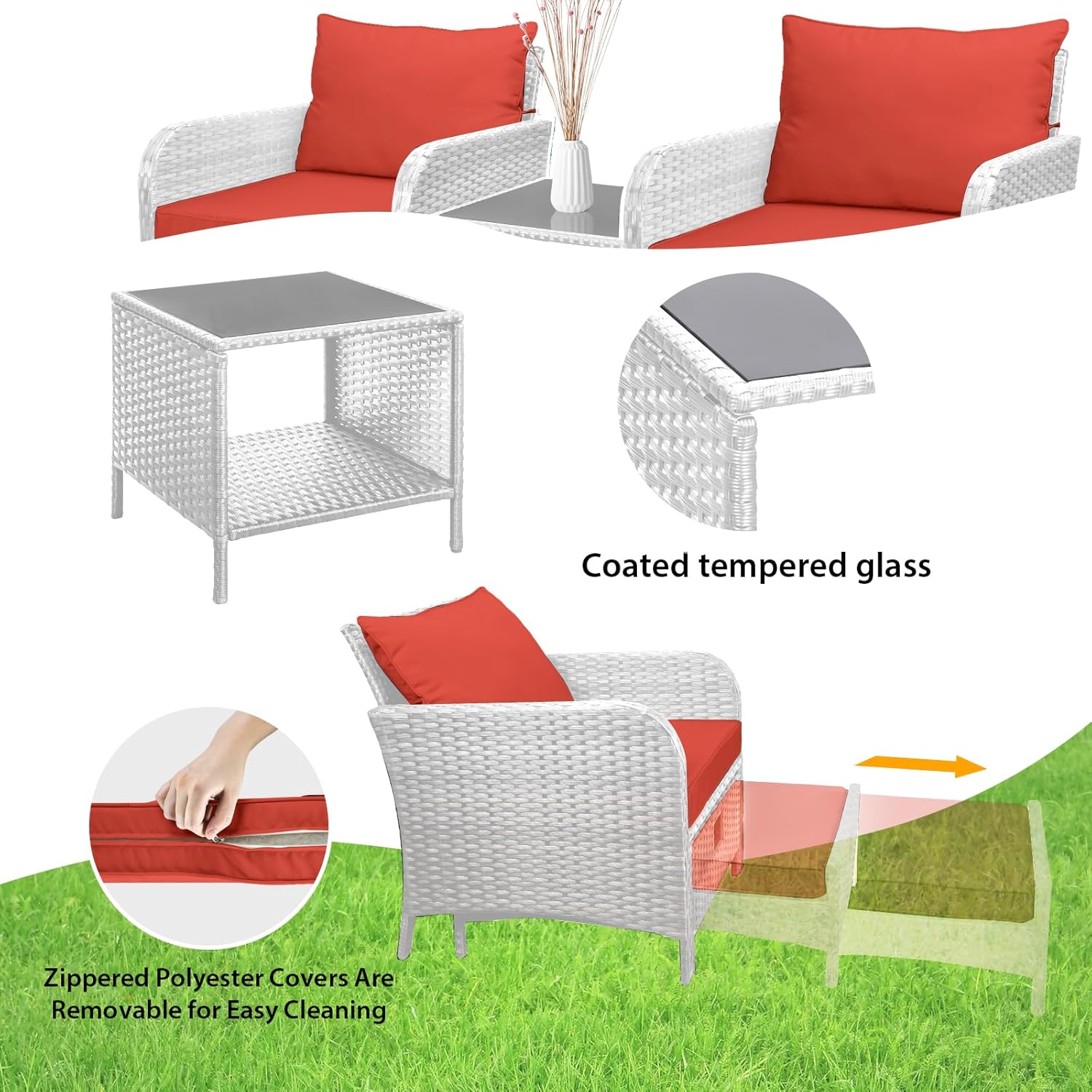 - �?Sturdy balcony furniture】The all-weather PE wicker makes the whole set more sturdy. The material is waterproof and UV-proof, and will not fade in humid climate or under strong sunlight. These reasons ensure its longevity.