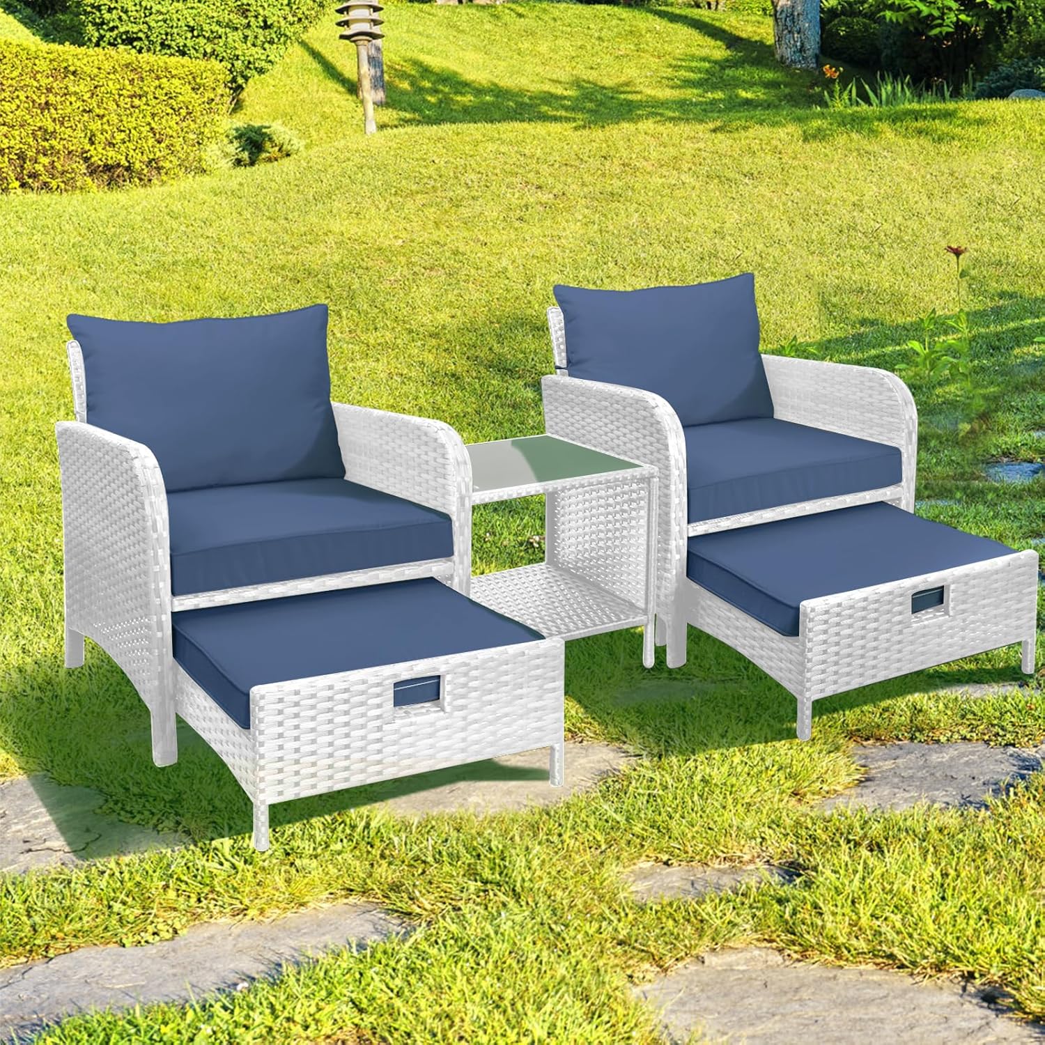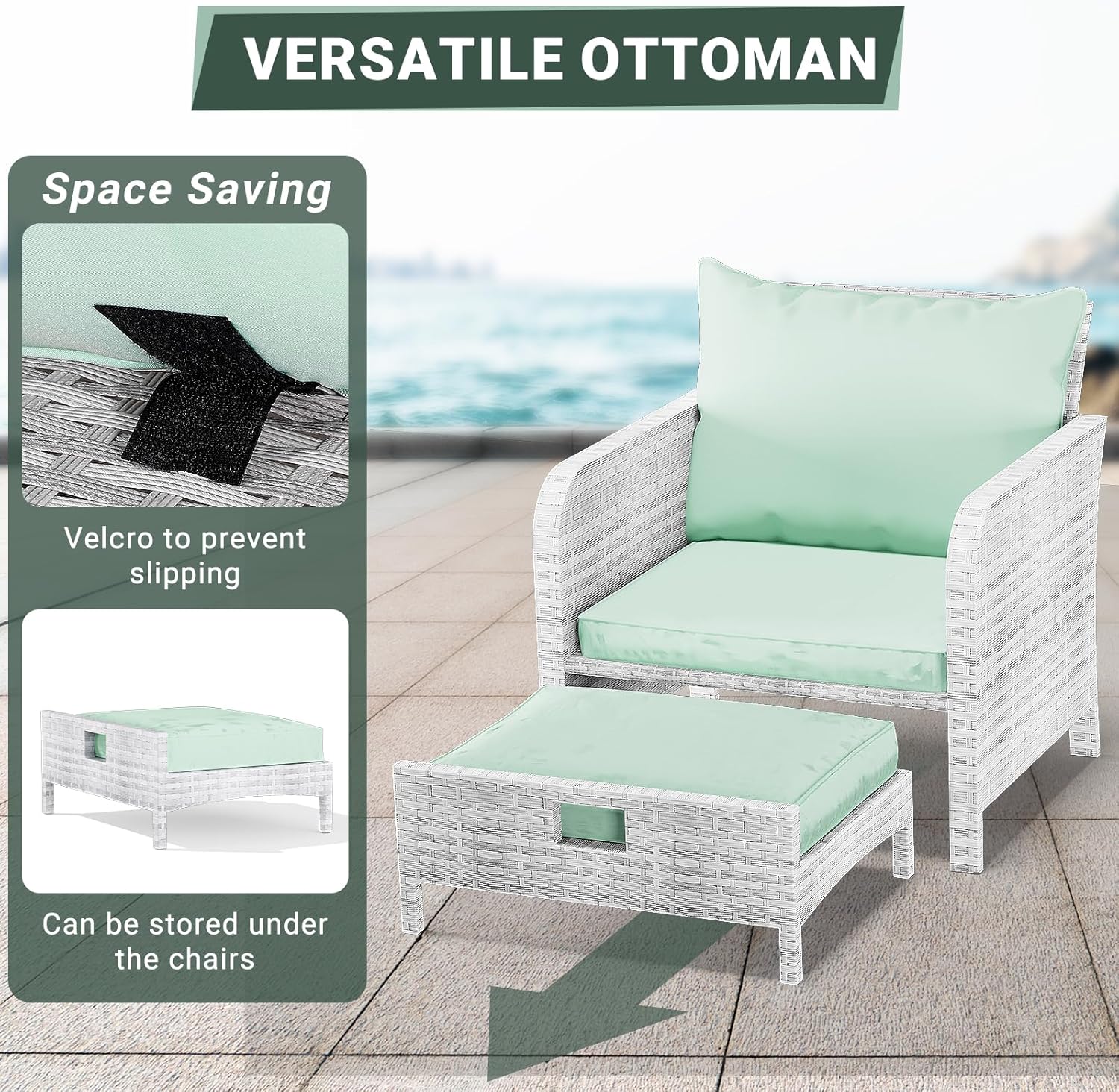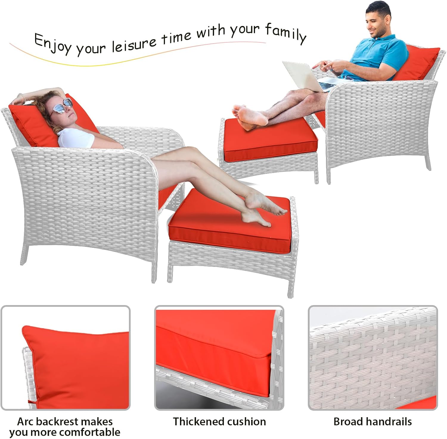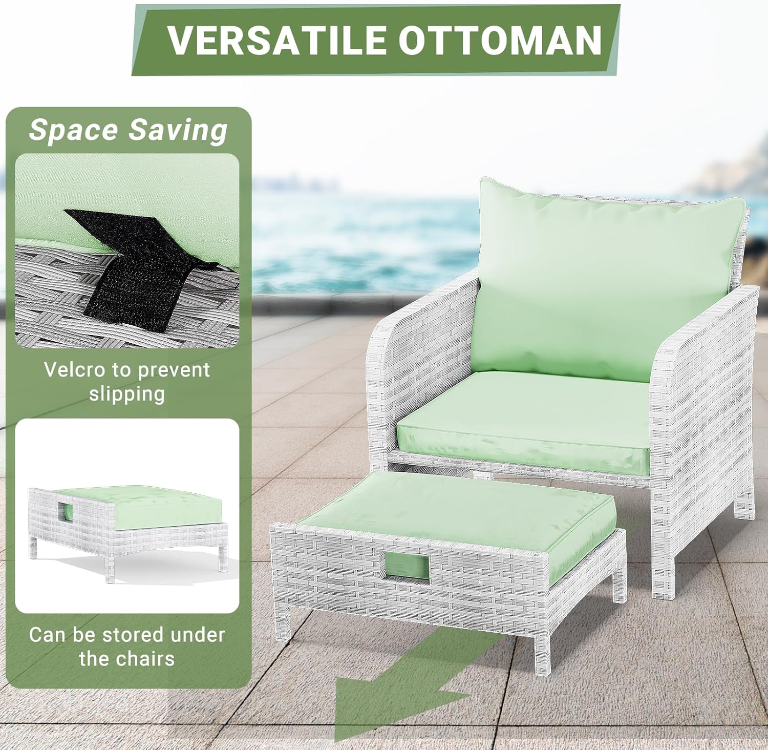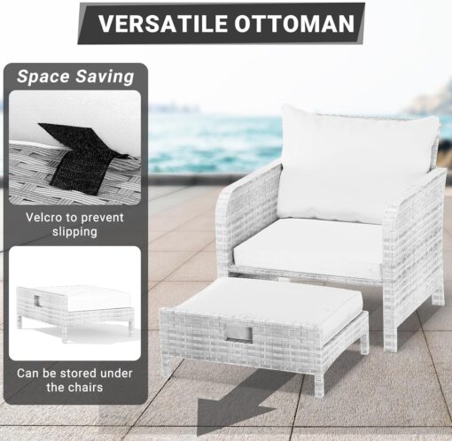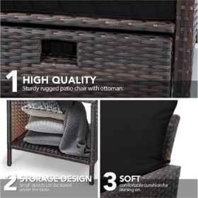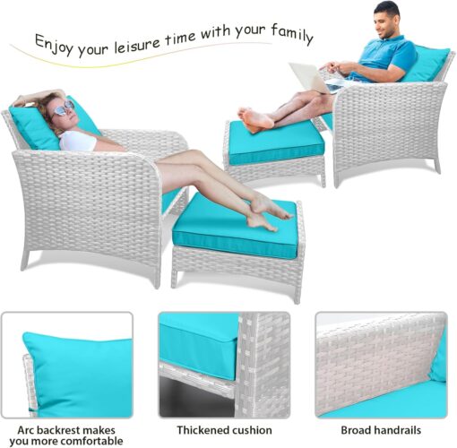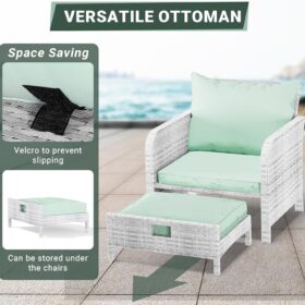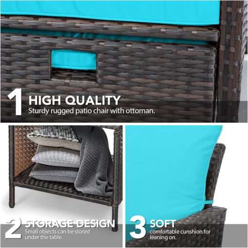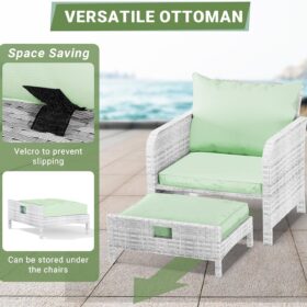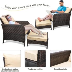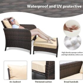 - 【Widely used】The set can be used as a recliner and sofa set for different occasions. It can be stored under the chair when you are not using the footrest stool. Widely used for outdoor terrace, porch, backyard, balcony, poolside, garden and other suitable spaces in your home.