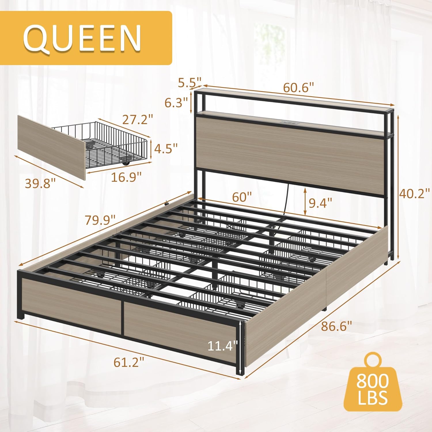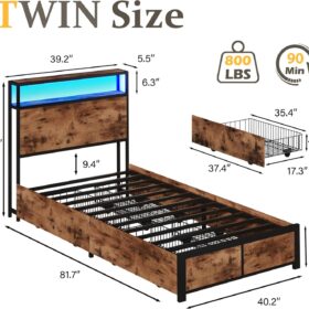 - 【Sturdy Metal Structure�?The bed frame adopts an all-metal support system, which is sturdy. We have replaced ordinary wooden slats with 11 metal rods, greatly improving load-bearing capacity, 9 metal bed legs increase the stability of the bed frame at the same time, so it can easily support up to 800lbs. This structure is designed to give you a great sense of security and a restful sleep.