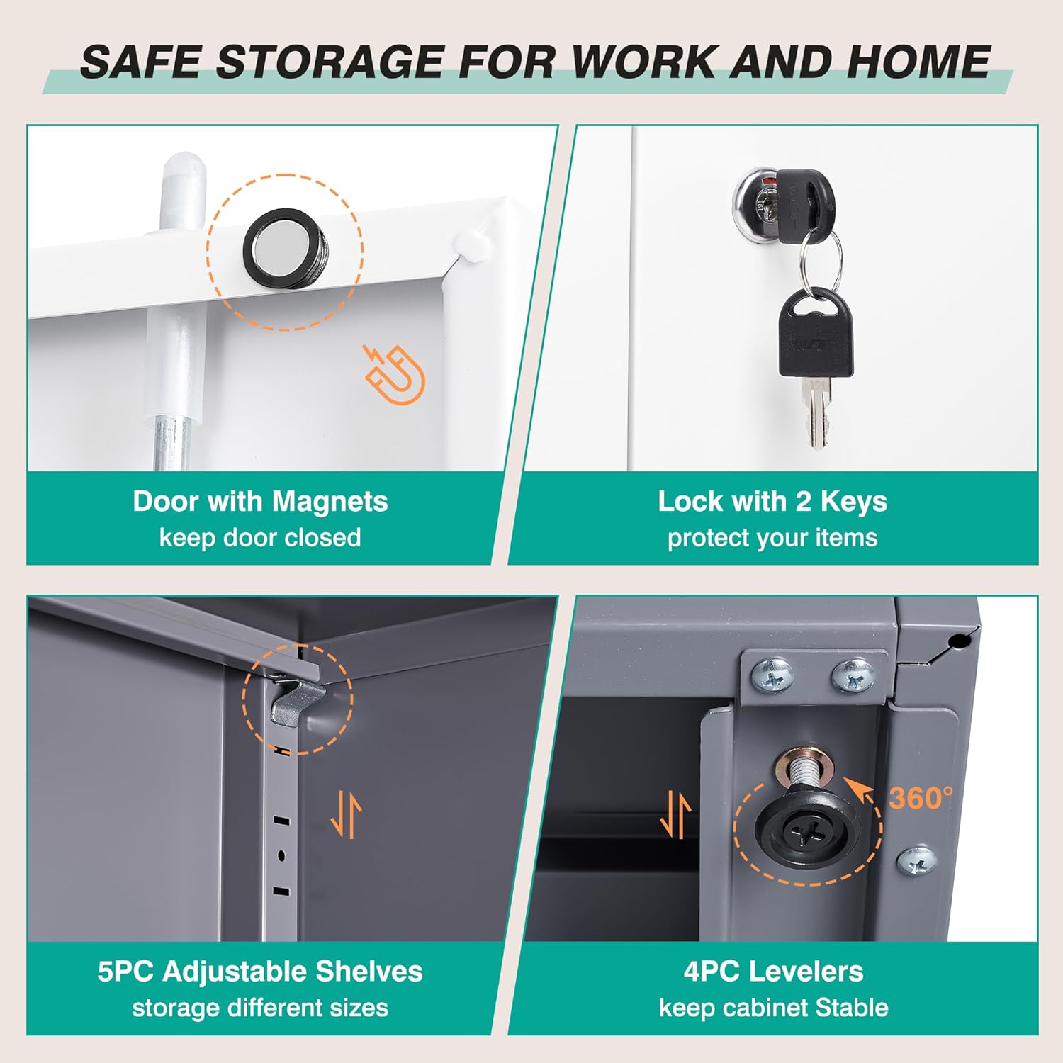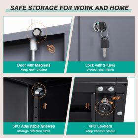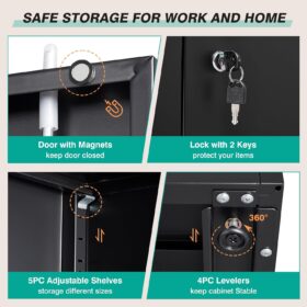 | Additional Features | 5pc Height Adjustable Shelf, Keep Stable with 4pc Levelers, Keep Doors Closed with Magnets, Keep Your Valuables Safe with Lock |