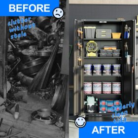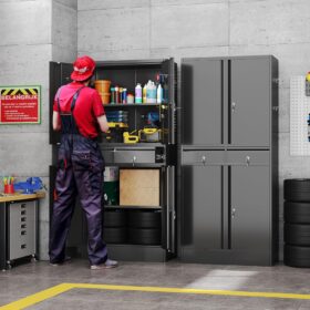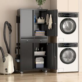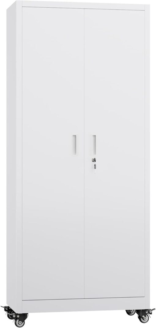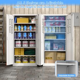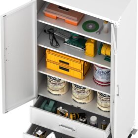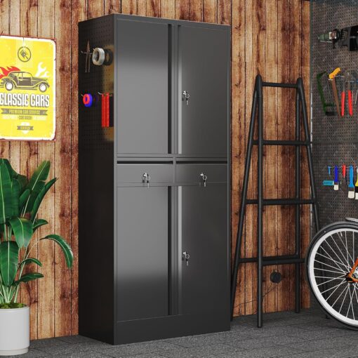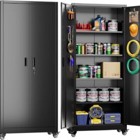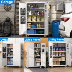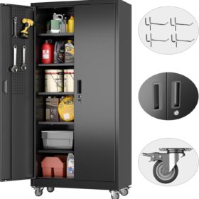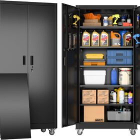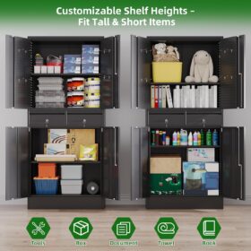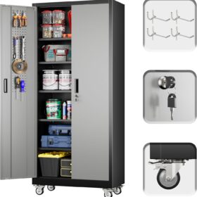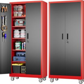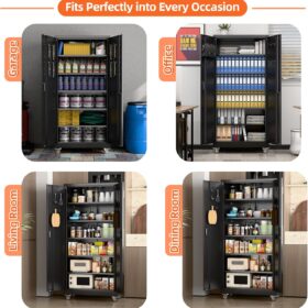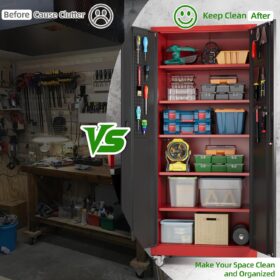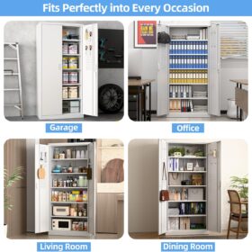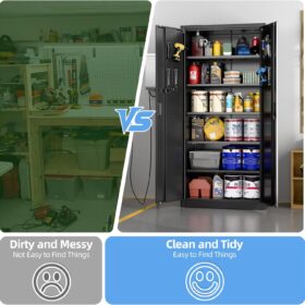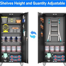 - One more adjustable partition: We carefully followed the customer’s suggestion and included five adjustable partitions with the metal cabinet,that provide lots of room to organize your household goods, supplies, tools, etc. A built-in lock with 2 keys to keep all your documents and belongings safe.