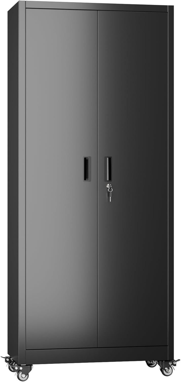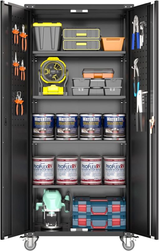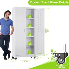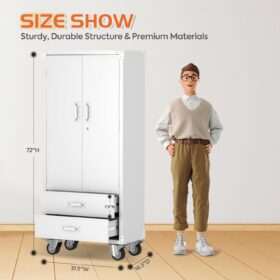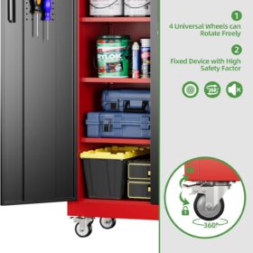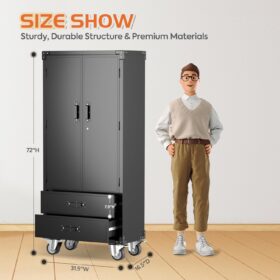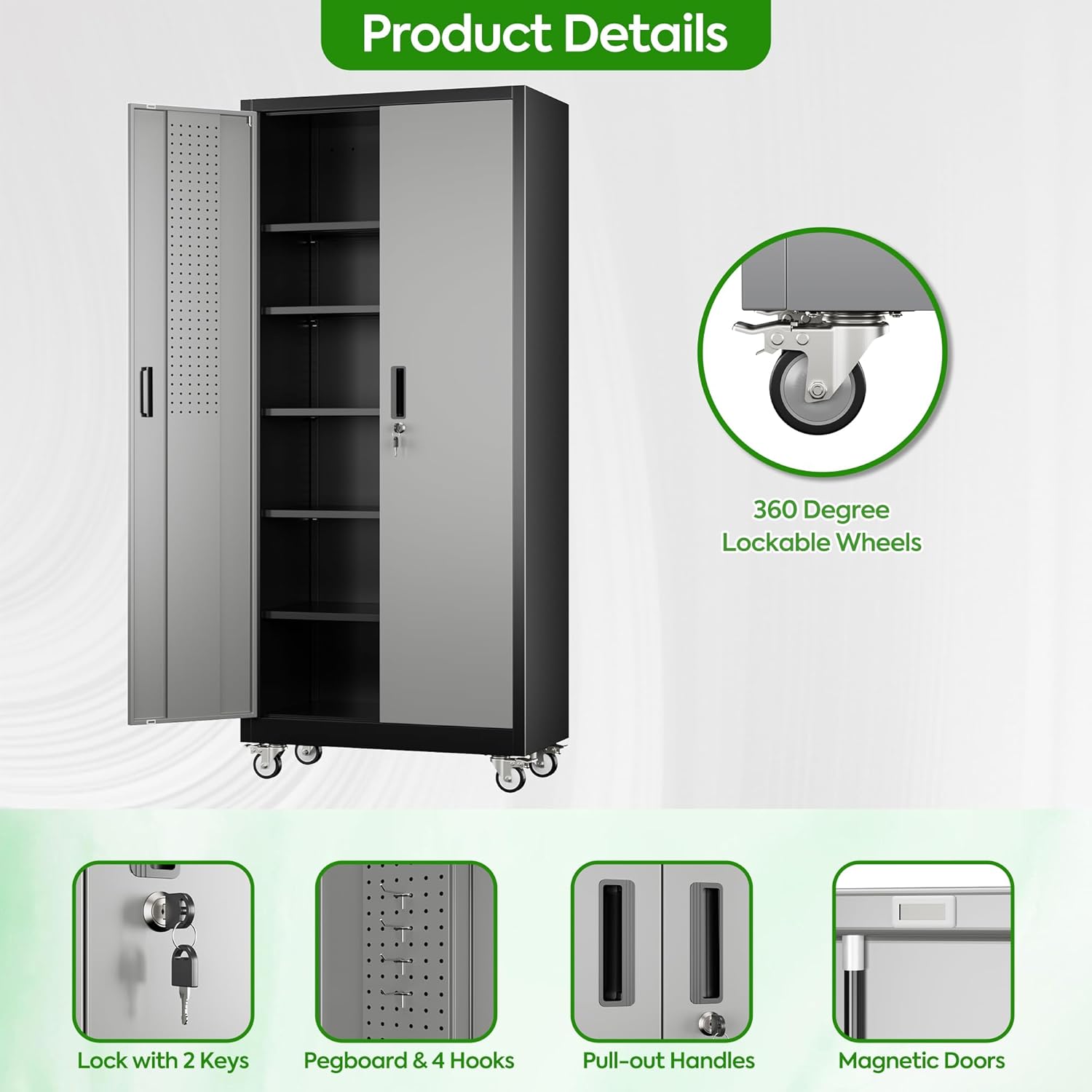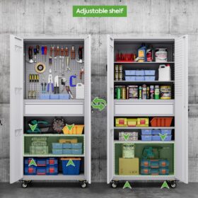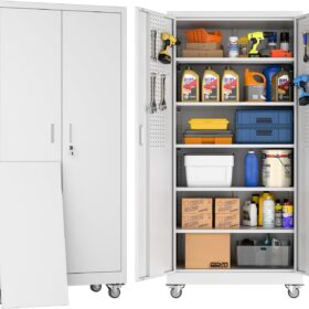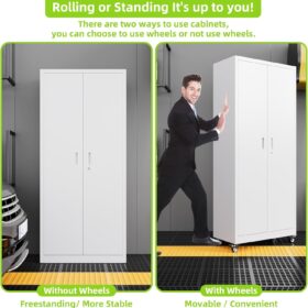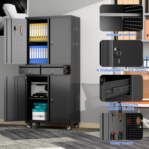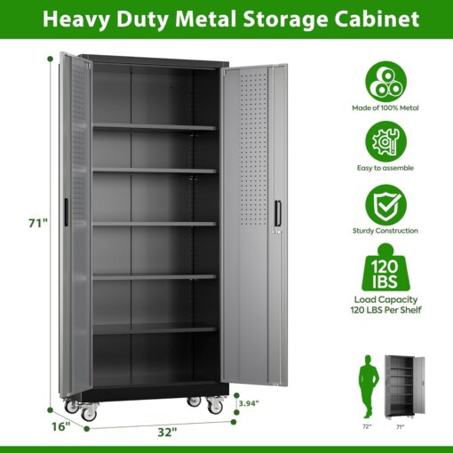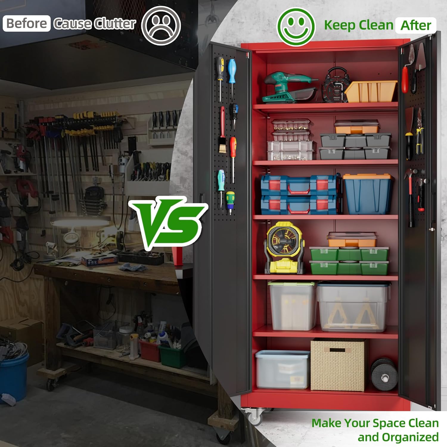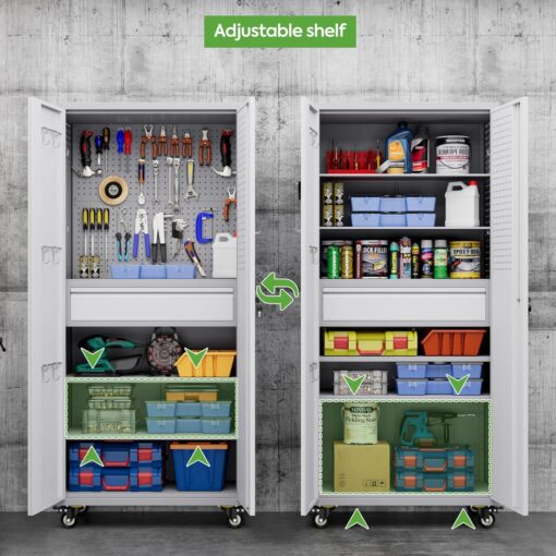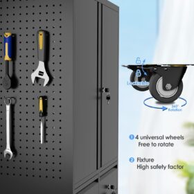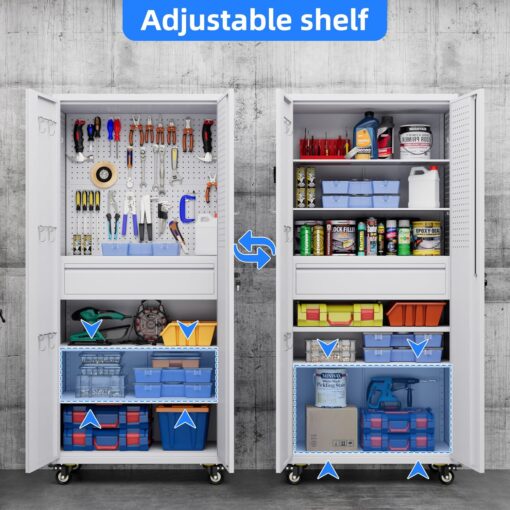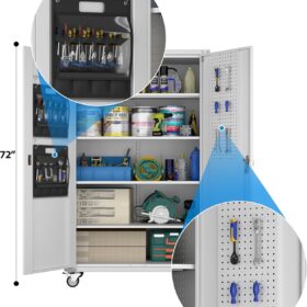 - Larger and Deeper Sizes:Metal Garage Storage Cabinet with Wheels and Pegboard 71” x 34” x 18”,The widened and deepened design allows you to obtain larger storage space.