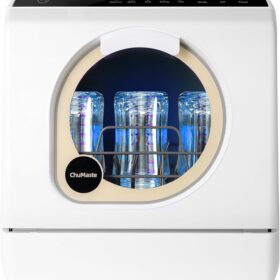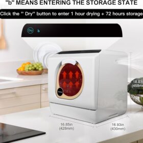 - 【Easy to Control】LED touch panel control can clearly display the status of the mini dishwasher. Automatic water level indicator lets you know when the correct water level has been reached. The transparent glass door, combined with the built-in LED light, allows you to easily and clearly view the working status of the dish washer.