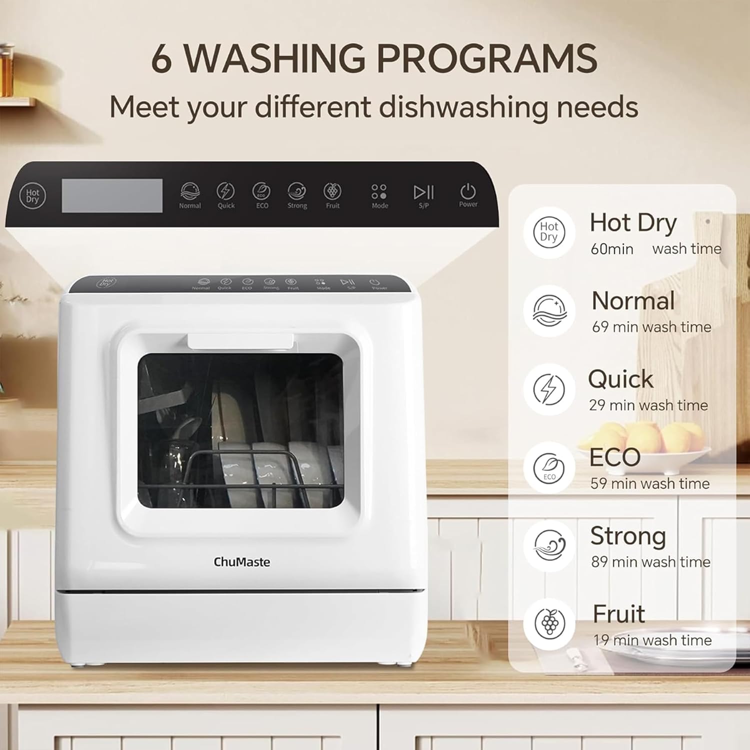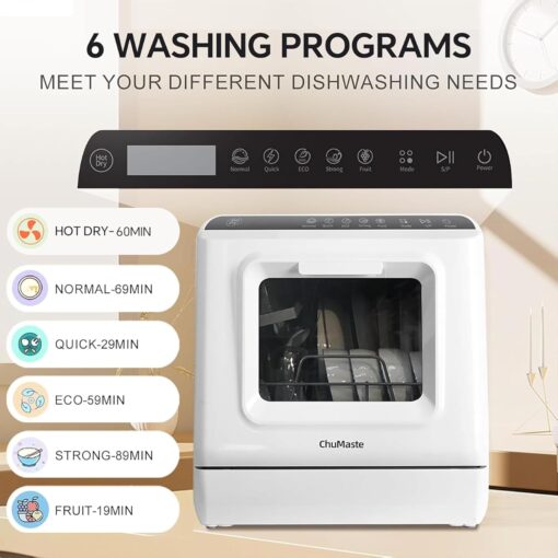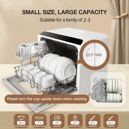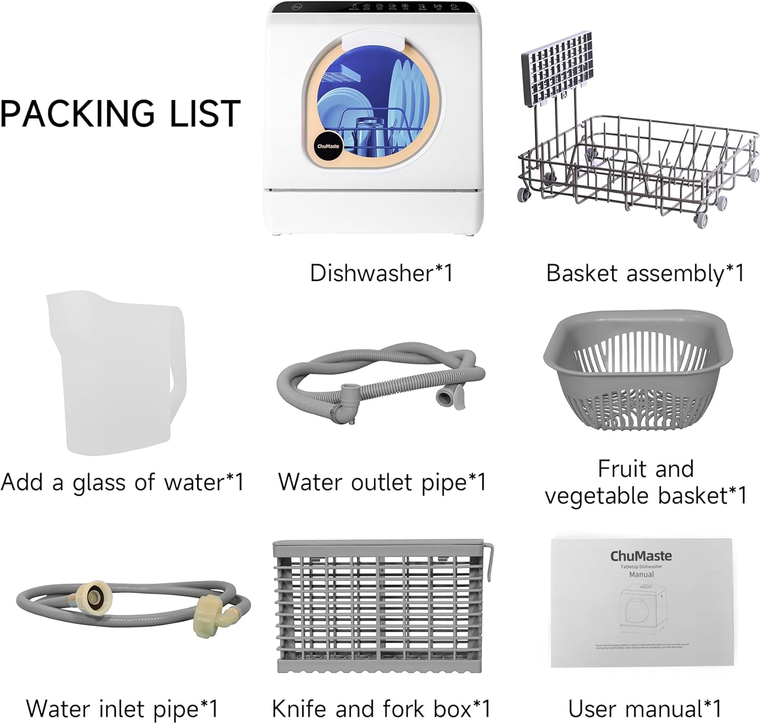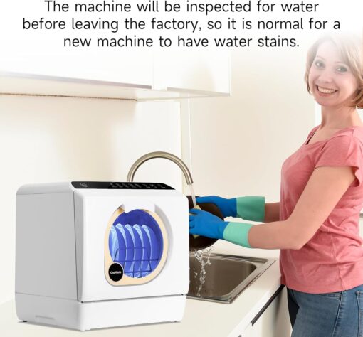 - 【Excellent Service】counter top dishwasher portable are rigorously tested and provided with instructions. Therefore, it is normal for the machine to have a small amount of residual water. Before first use, it is recommended to run the dishwasher machine for 5 minutes to remove any dust that may have occurred during long-distance transport.