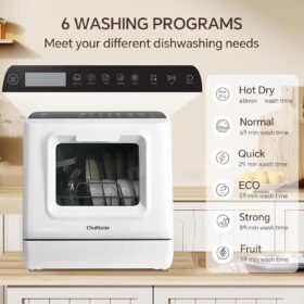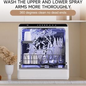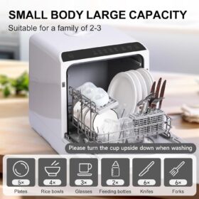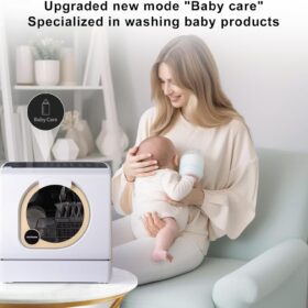 - 【Baby Care Mode】This compact dishwasher offers 5 washing modes – Baby Care, Quick, Energy Saving, Powerful and Fruit Wash. Baby care mode is suitable for baby bottles and toys, rinsing them thoroughly.