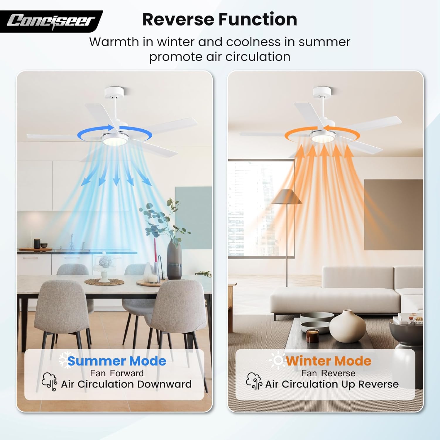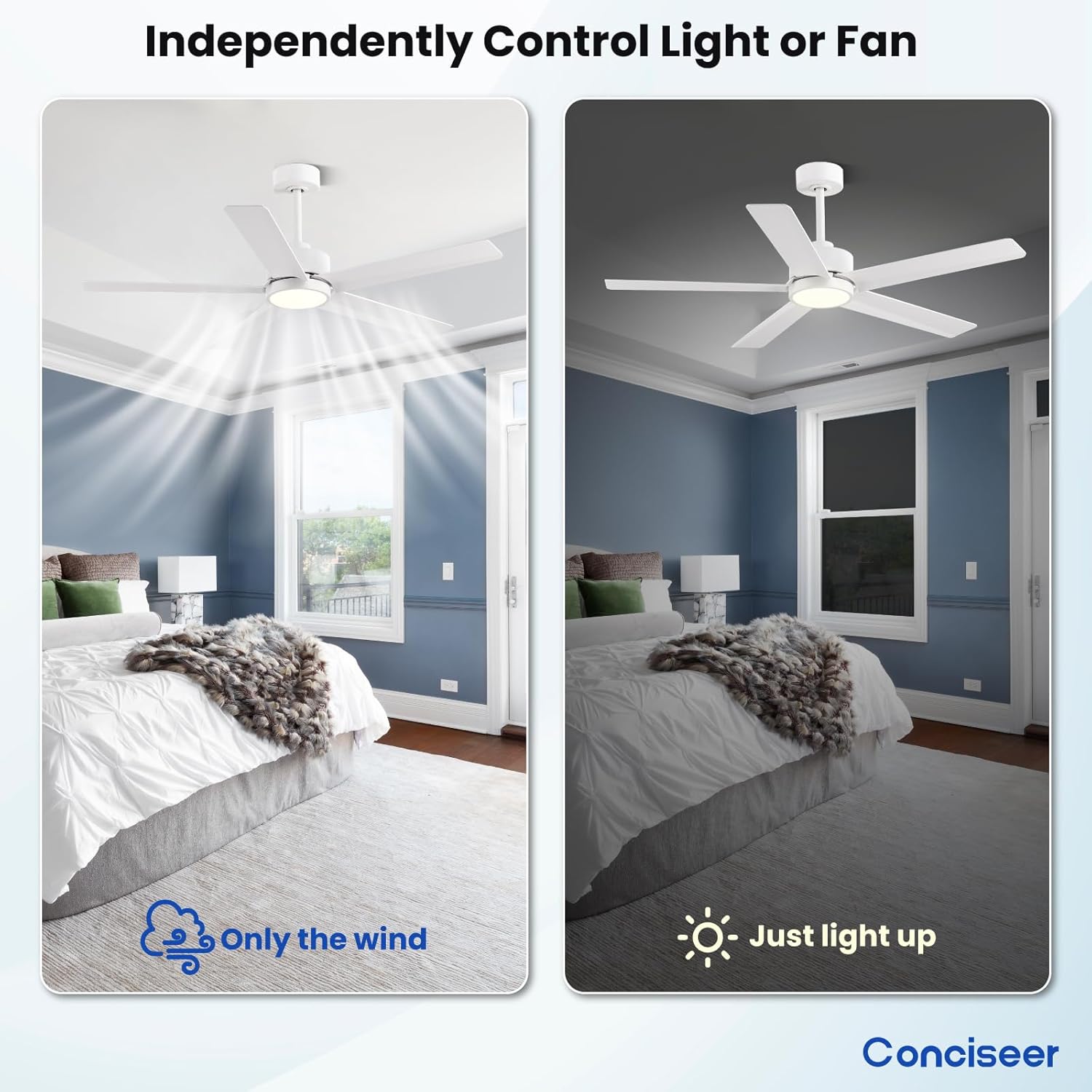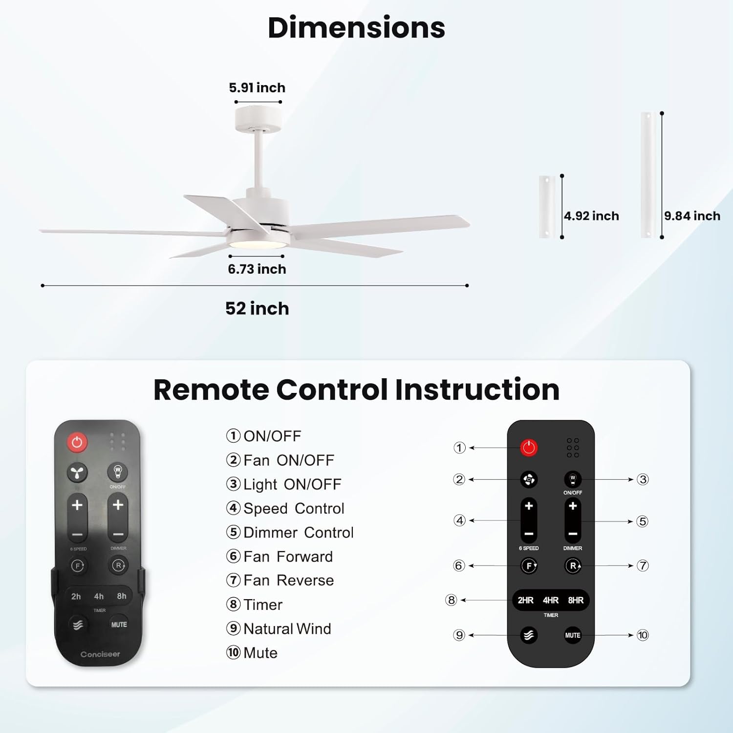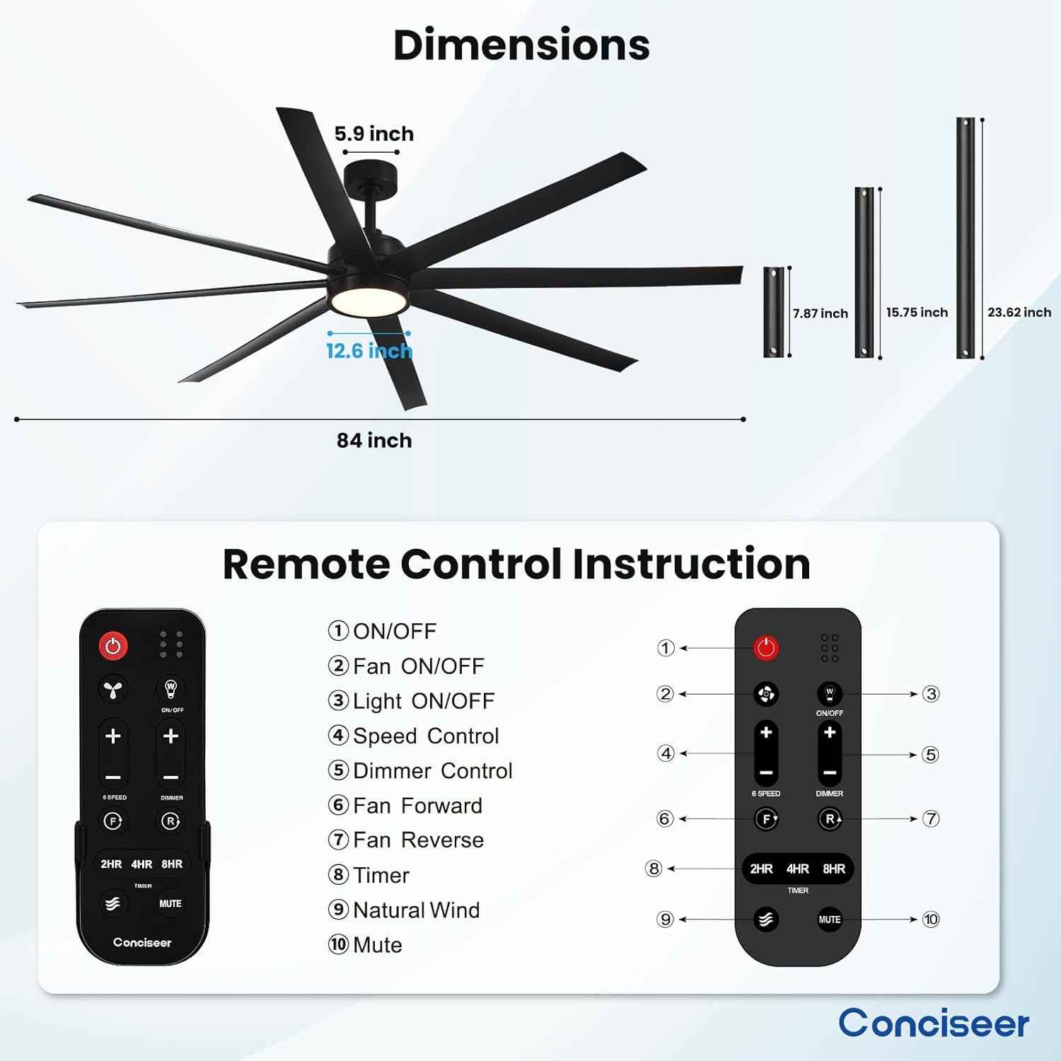 - Easy Installation: With detailed instructions in the manual, it is easy to complete the installation quickly. Besides, our professional after-sales support team is always ready to assist you in time, PLEASE feel free to contact us if you have any questions during the installation or usage of our Conciseer ceiling fans