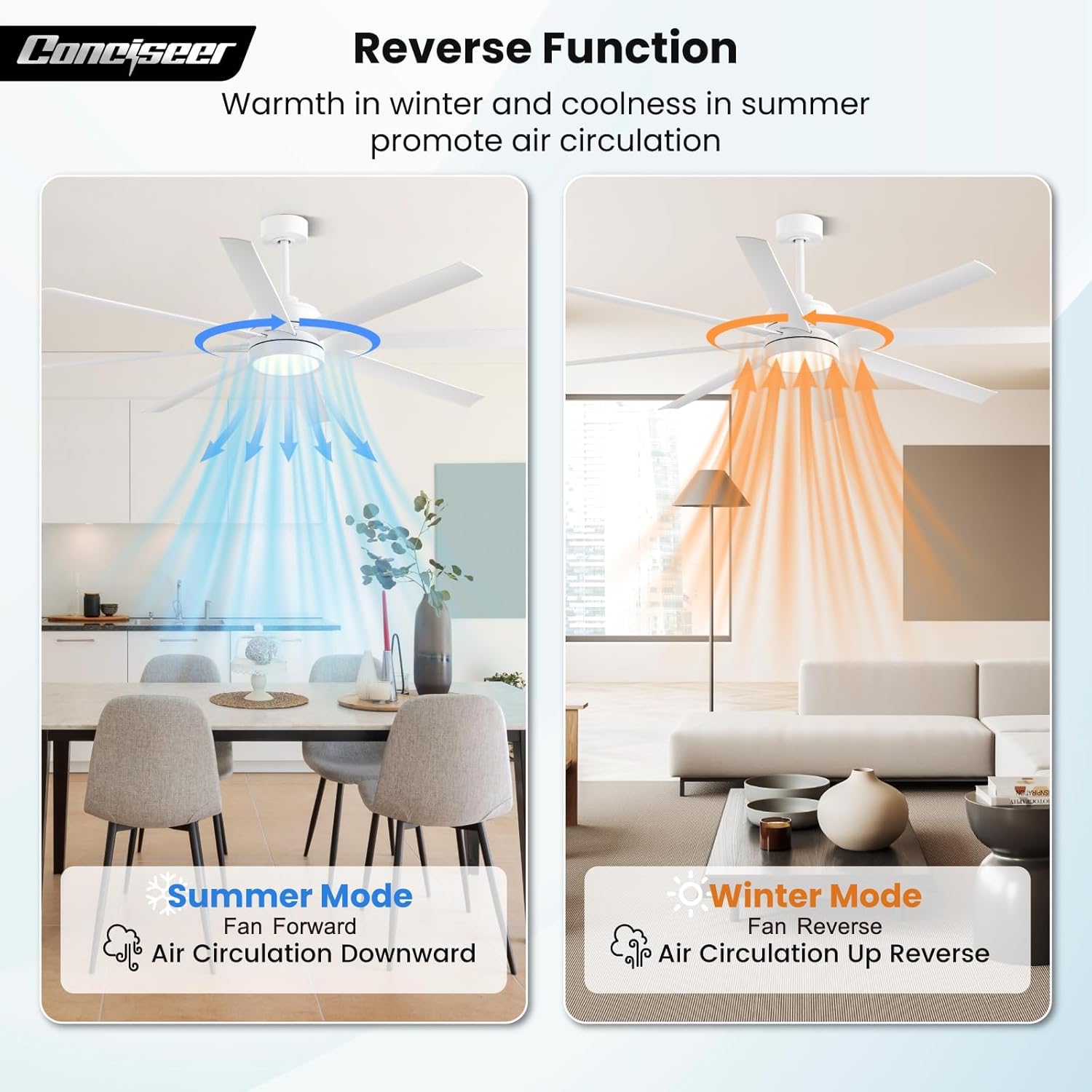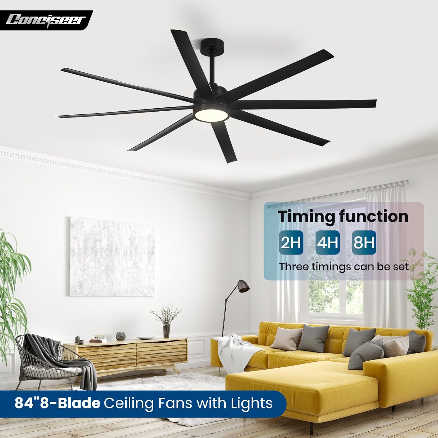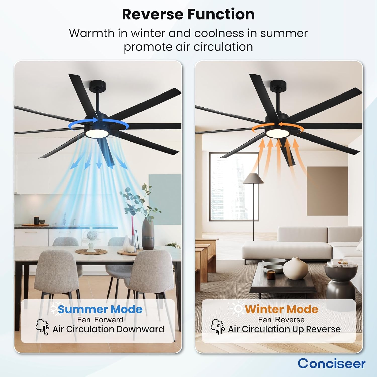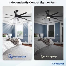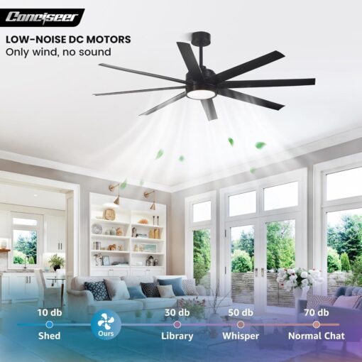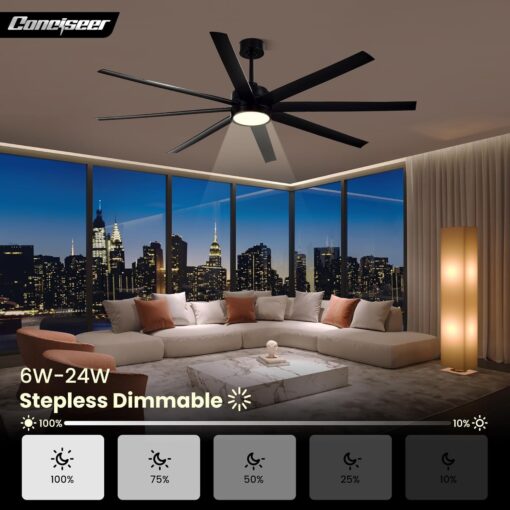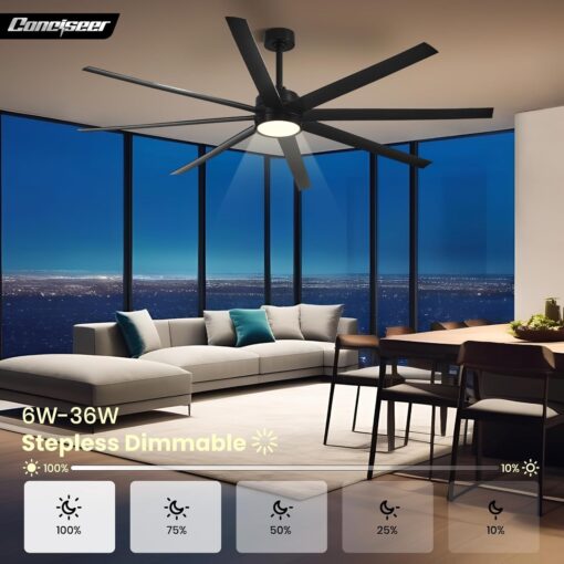 - Modern Ceiling Fan with Light: 72 inch Conciseer modern ceiling fan, combining classic retro design with modern functionality, is equipped with 8 fan blades, suitable for living rooms, dining rooms, kitchens, libraries, cafes, factories, etc