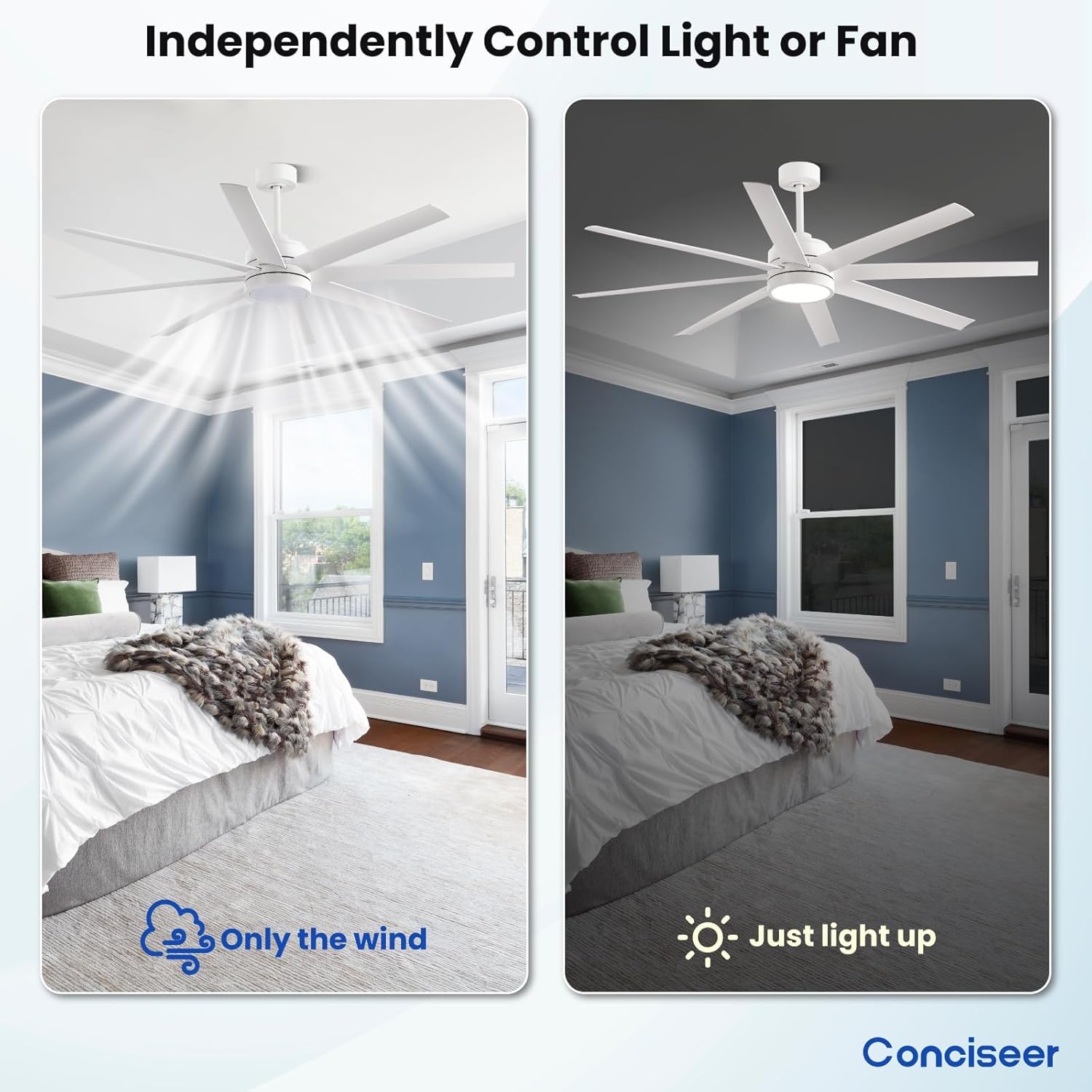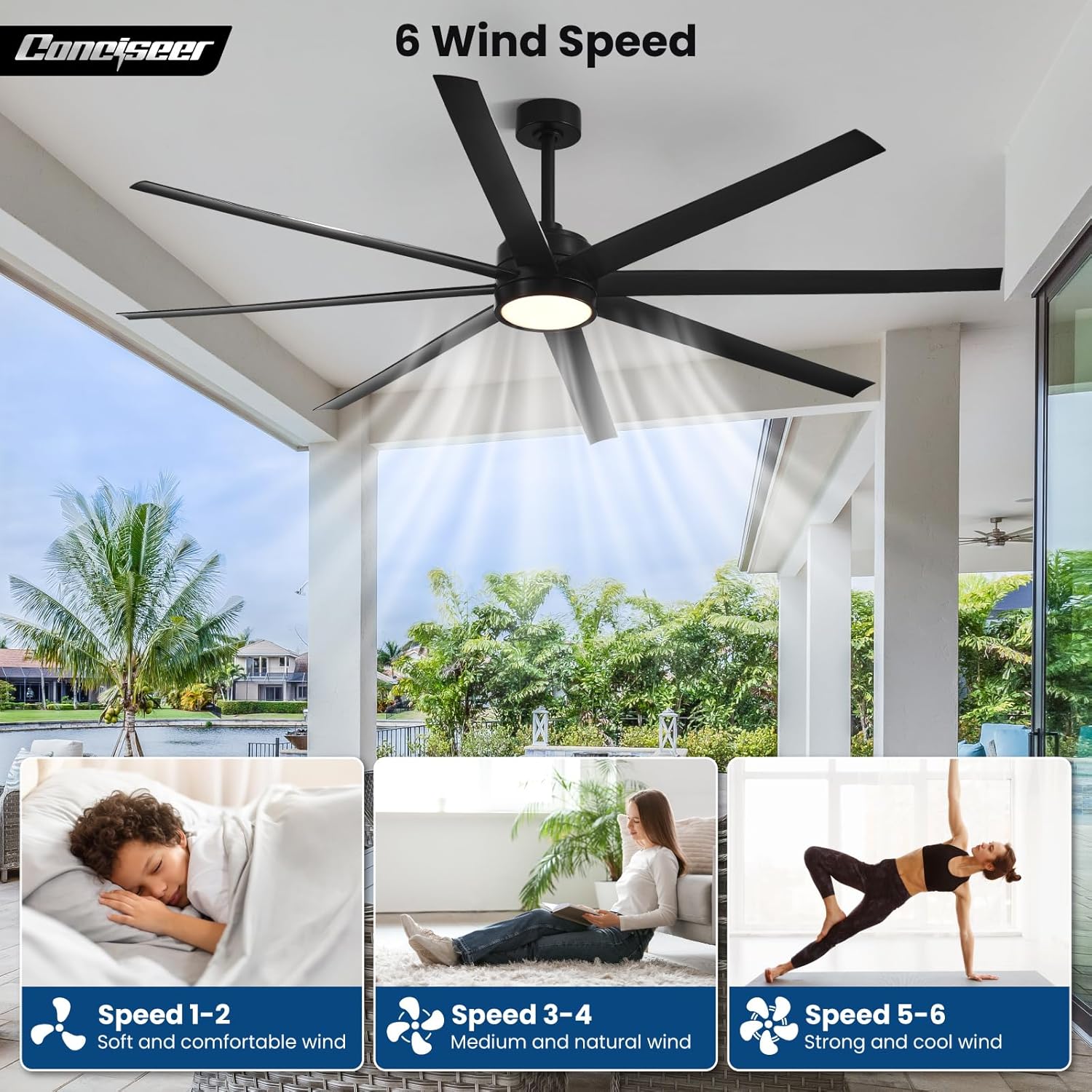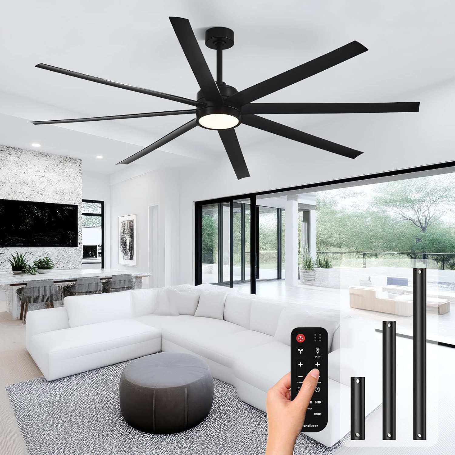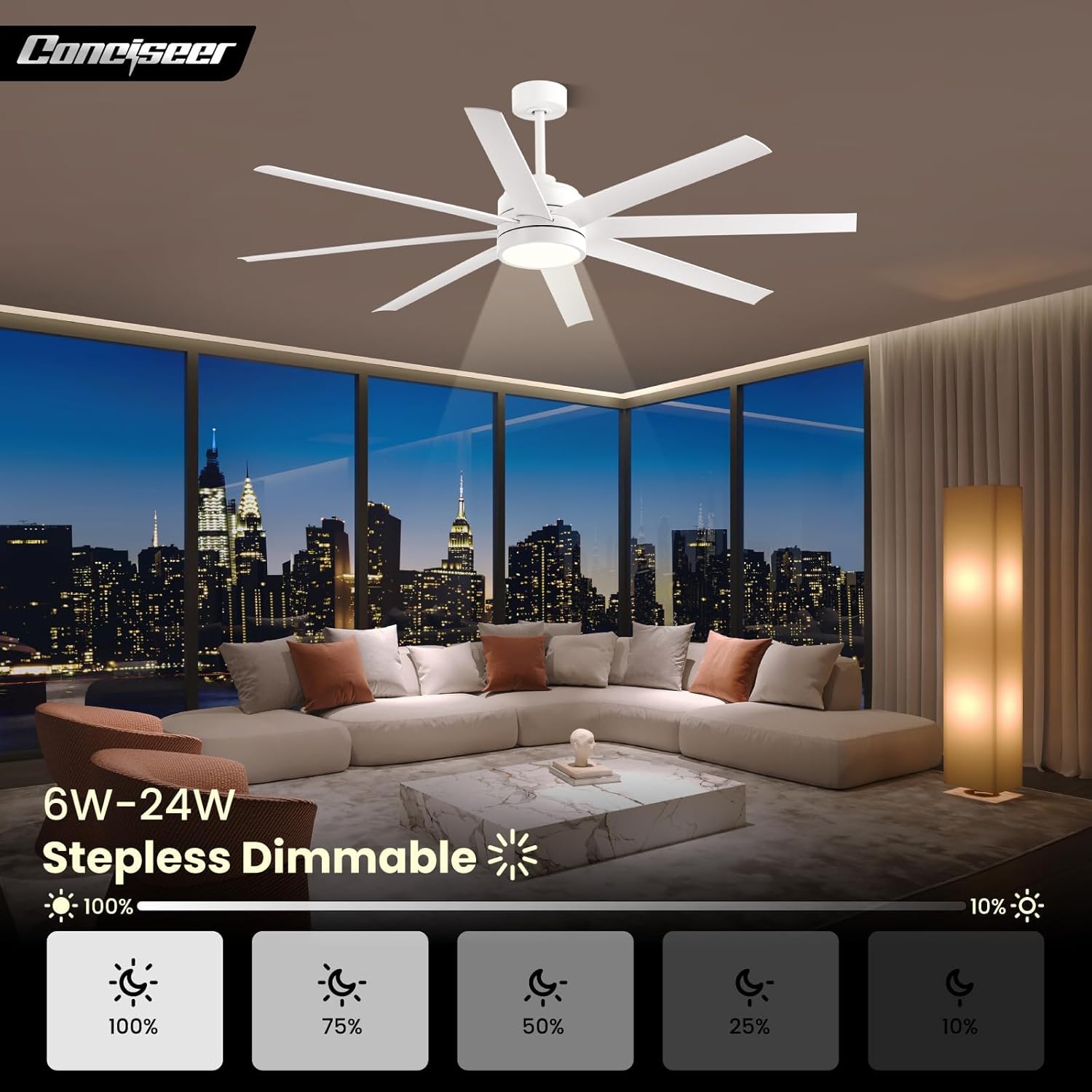 - Modern Ceiling Fan with Light: 72 inch Conciseer modern ceiling fan, combining classic retro design with modern functionality, is equipped with 8 fan blades, suitable for living rooms, dining rooms, kitchens, libraries, cafes, factories, etc
