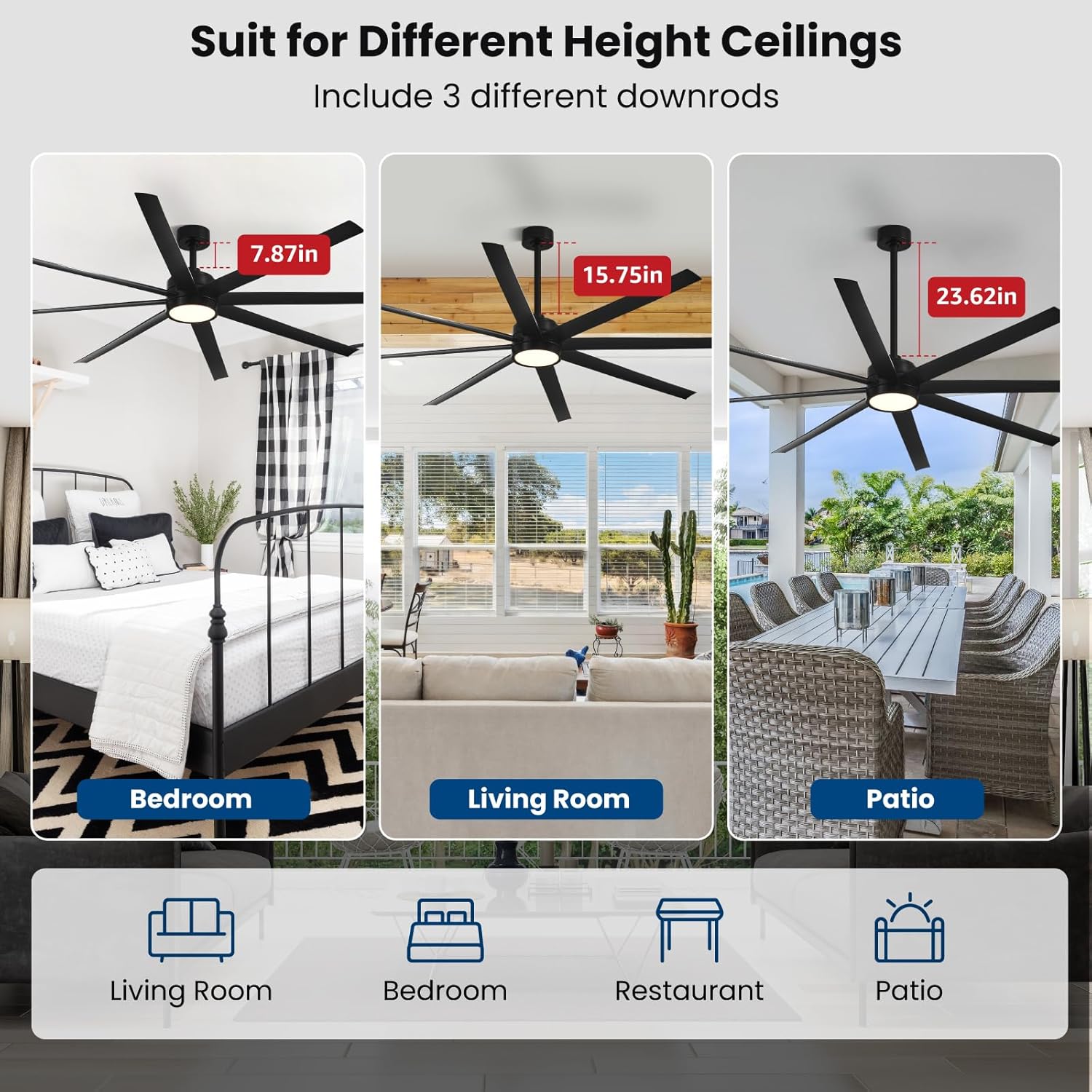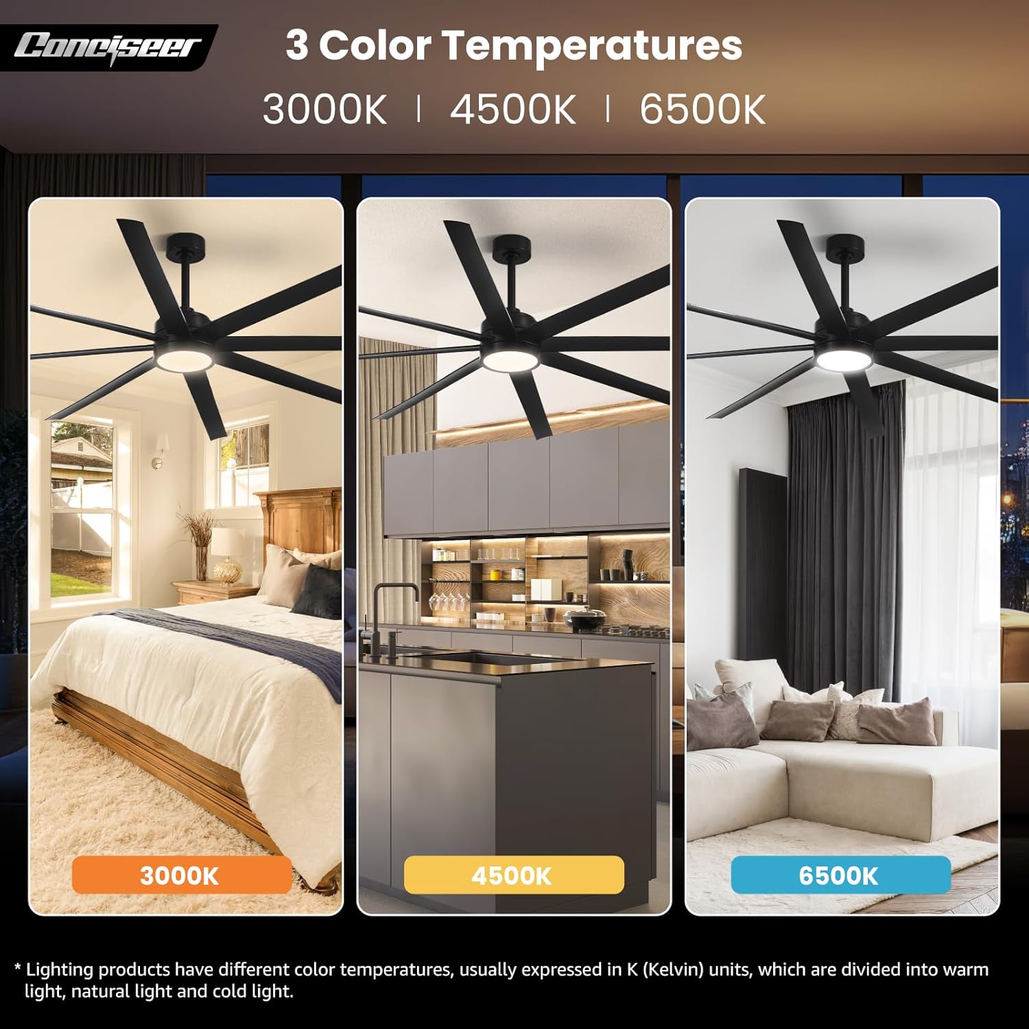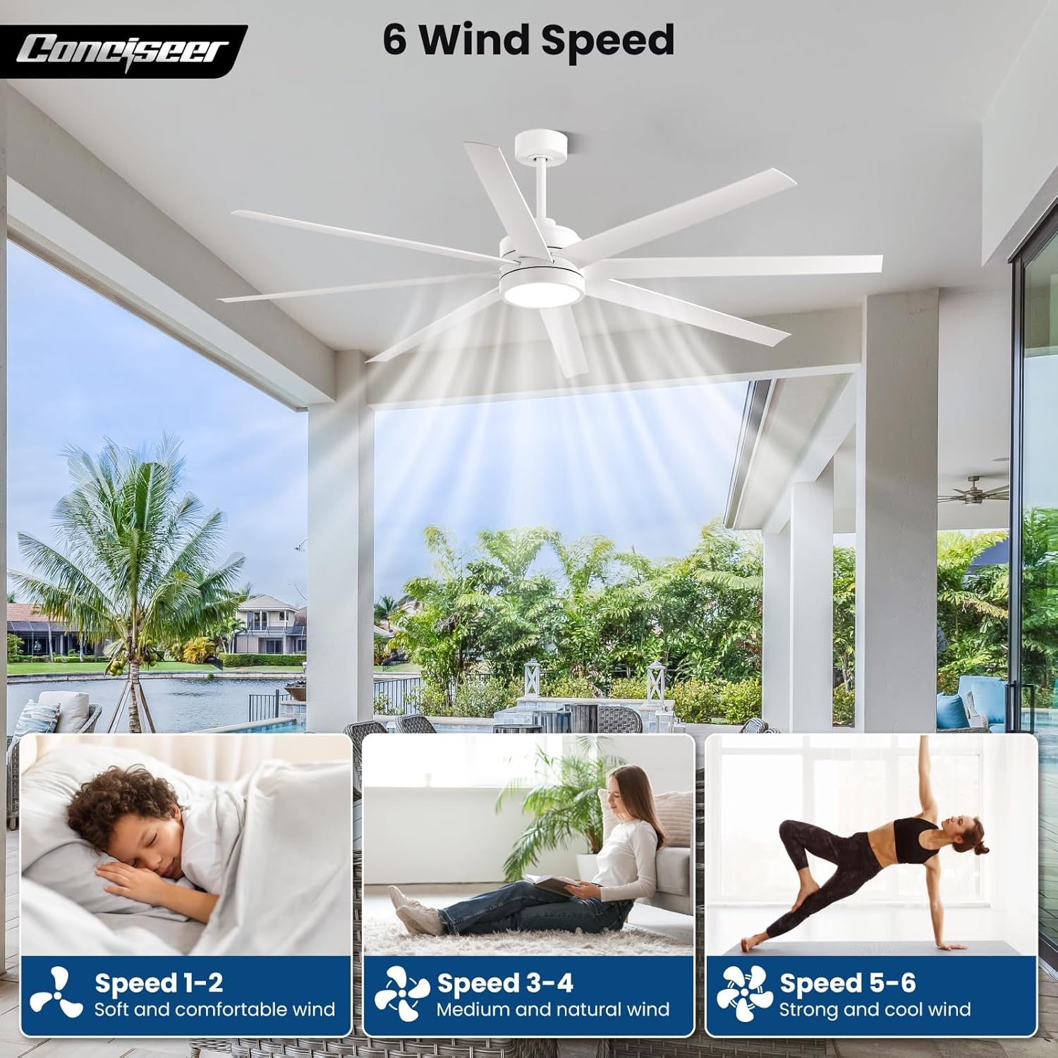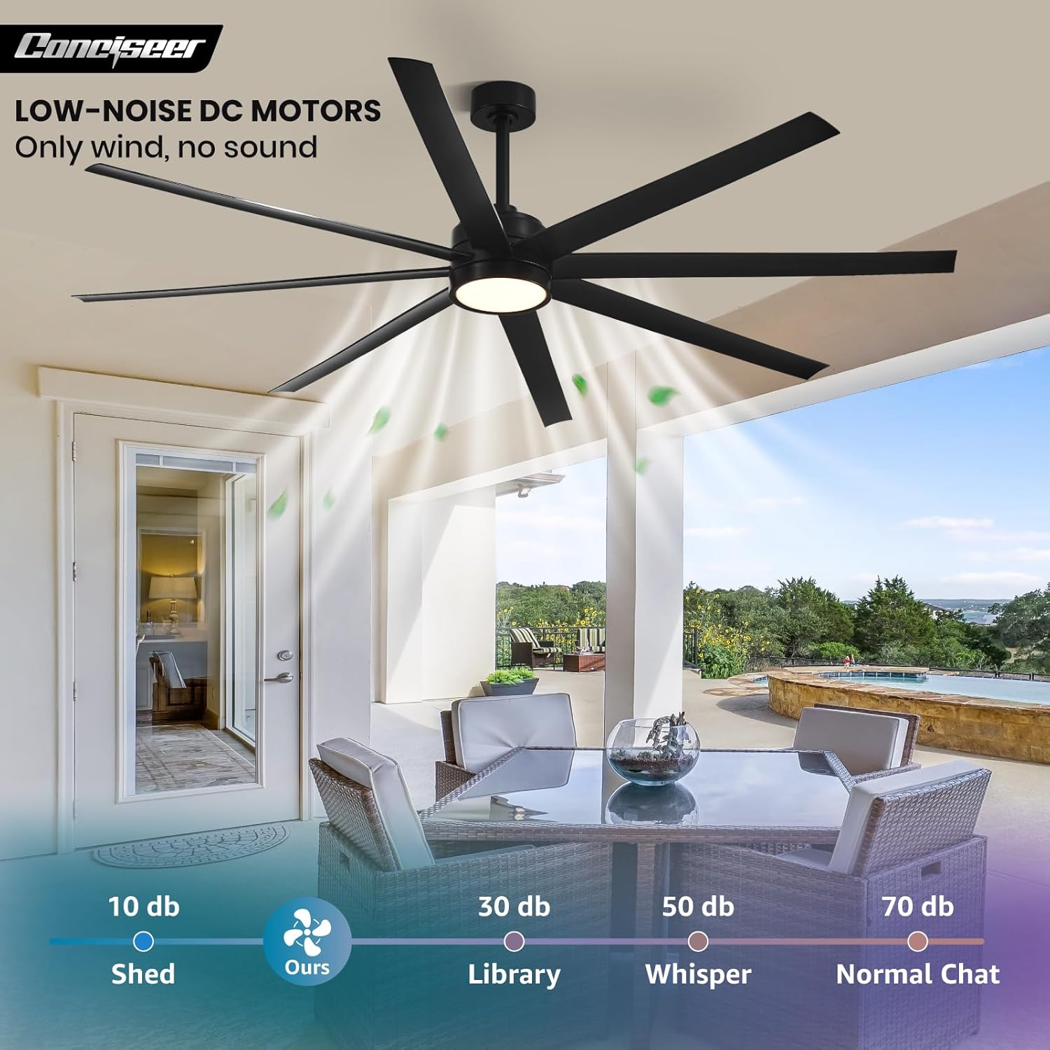 - Modern Ceiling Fan with Light: 72 inch Conciseer modern ceiling fan, combining classic retro design with modern functionality, is equipped with 8 fan blades, suitable for living rooms, dining rooms, kitchens, libraries, cafes, factories, etc
