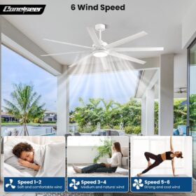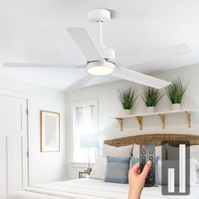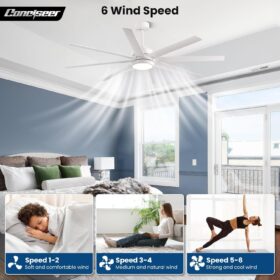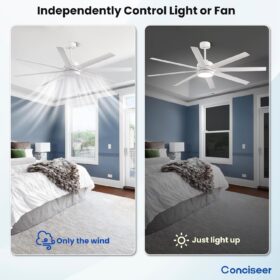 - Patent Design Remote Control: The ceiling fan is equipped with a beautiful remote control, and both the light and fan can be controlled separately. With the remote control, you can adjust wind speeds in 6 gears, timer off, one click mute, simulate natural wind, and reverse the rotation of the fan, providing you with a comfortable user experience