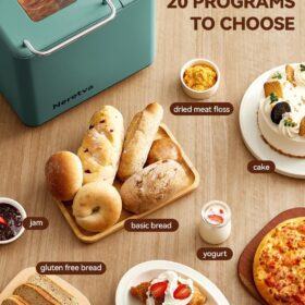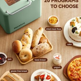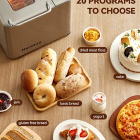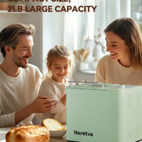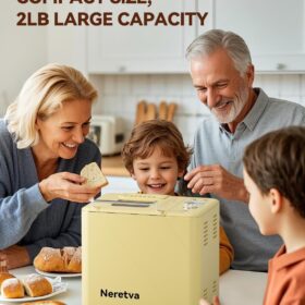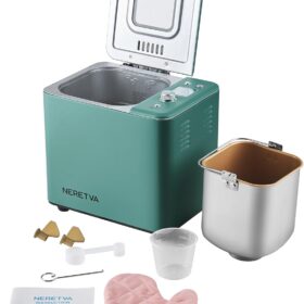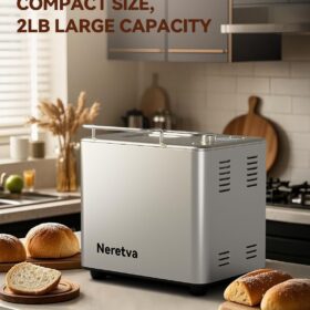 - DUAL HEARERS WITH 360° SURROUNDING BAKING & 550W HIGH POWER: The Neretvra bread machines have newly upgraded 360-degree dual heaters located at the bottom and top of the loaf pan, which can intelligently adjust the baking process and promote even baking for fluffy bread. 550W high power enables fast baking which shortens the baking time by over 1 hour.