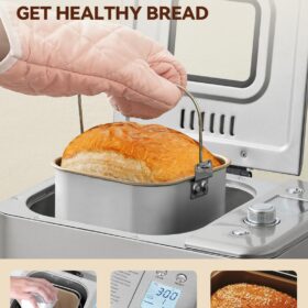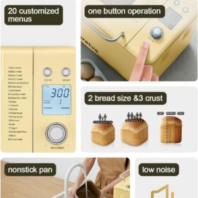 - PRESET FUNCTION & LOWER NOISE: With 15-hour delay timer, our breadmaker machine allows you to enjoy fresh bread without having to wake up early. The most popular 1 hour will automatic keep warm and 15-minute power interruption recovery allow for healthy breads anytime! Beside, motor noise is less than 40 db, which will not affect your sleep.