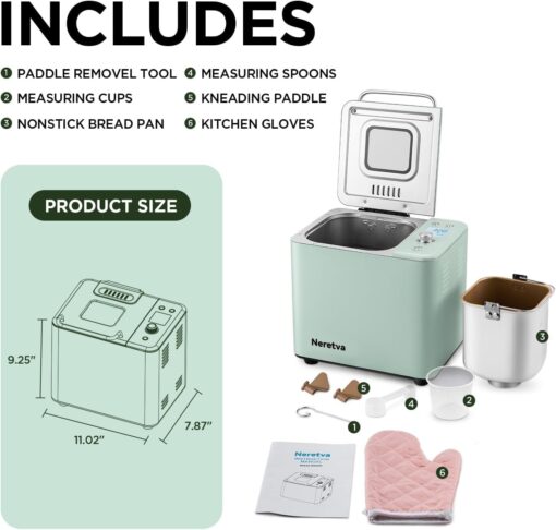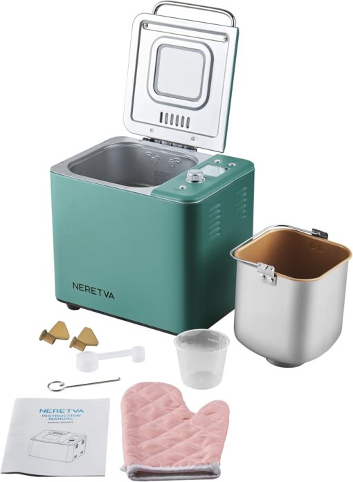 - NONSTICK CERAMIC PAN & ALL METAL MATERIAL: Neretvra bread machine has new upgrade ceramic pan that is 100% no chemicals and won’t be sticked, so that is healthier and easy to wash. Metal body is heat resistant and not easy to damage, baked bread more delicious and healthy.