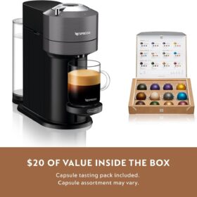 - COMPLIMENTARY GIFT: Each machine includes a complimentary starter set of Nespresso capsules (capsule assortment may vary from picture)