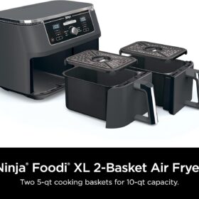 - 2 FOODS, 2 WAYS, AT THE SAME TIME: Eliminating back-to-back cooking like a traditional single-basket air fryer with 2 independent XL air fryer baskets.