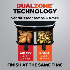- DUALZONE TECHNOLOGY: The Smart Finish feature, unlocks cooking 2 foods 2 ways that finish at the same time, or the Match Cook feature, easily copies settings across zones for full 10-qt. capacity.