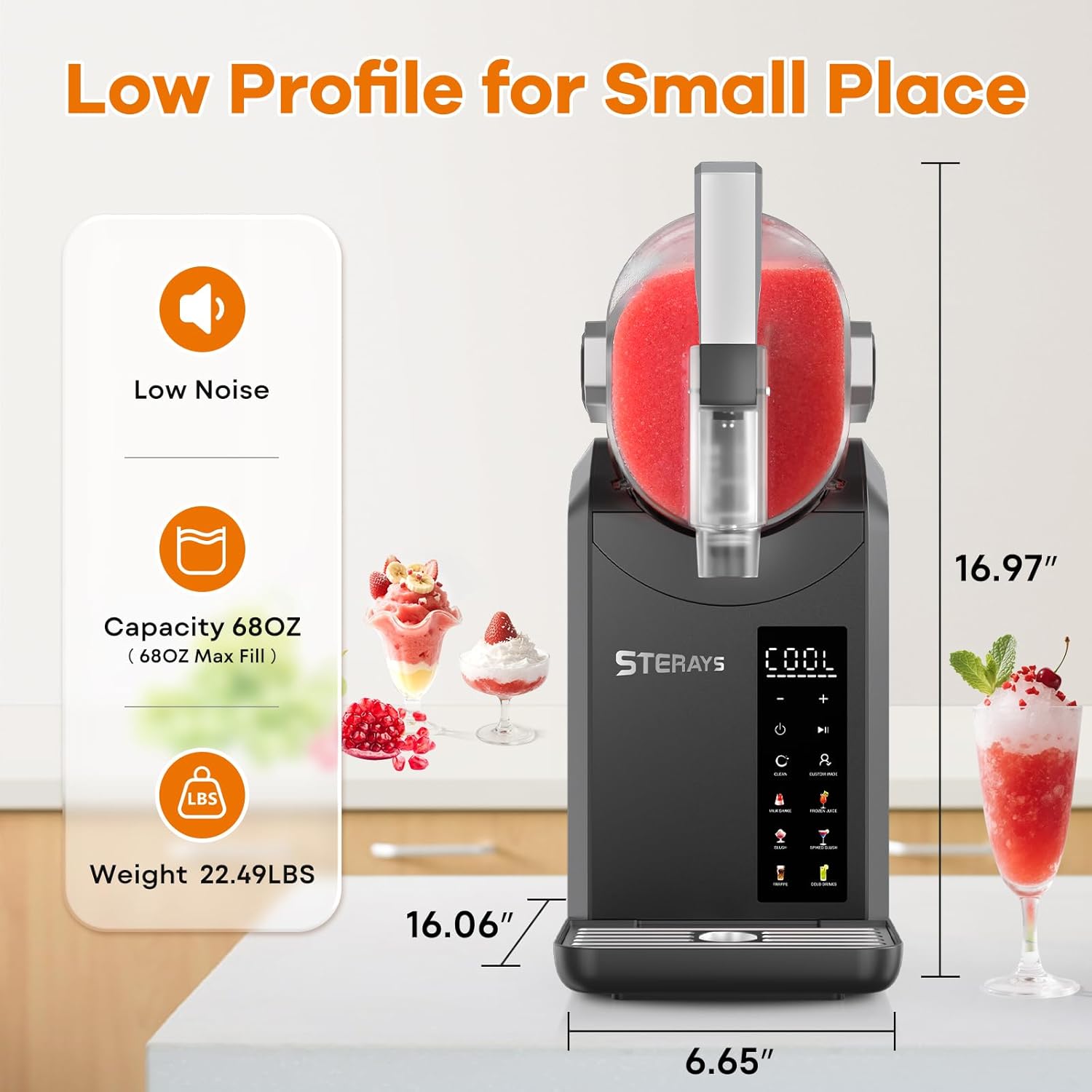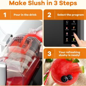 - User-Friendly & Quiet Operation:It is designed with a built-in touchscreen and six preset modes, making it simple to create slushy drinks at home and avoid unnecessary store visits. Additionally, it operates with low-noise technology, ensuring a peaceful environment for your household.