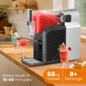 - Large-Capacity & Energy-Efficient:Perfect for gatherings! This appliance holds up to 68 oz of liquid, enough to meet a family’s needs or even serve at parties. With a powerful compressor, it efficiently produces delicious smoothies in just 15-60 minutes while maintaining energy-efficient operation.