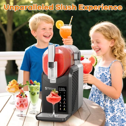 - Rapid slushie Making:Our slush machine features a 360° rotating propeller cooling cylinder, eliminating the need for ice cubes, and achieves fast ice slush production within 15-60 minutes. It delivers an excellent frozen drink experience for you and your family.