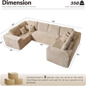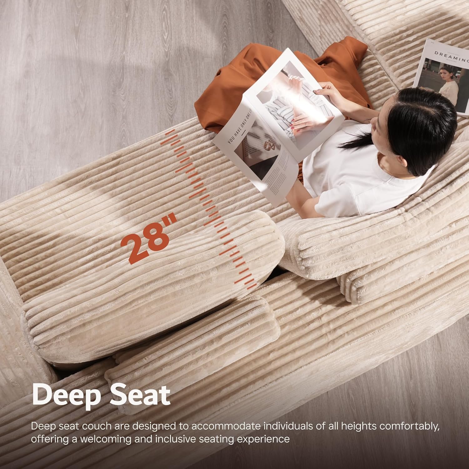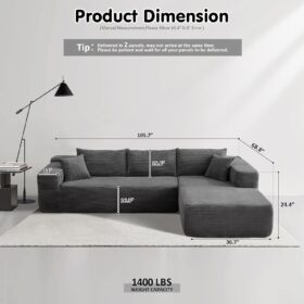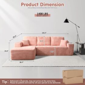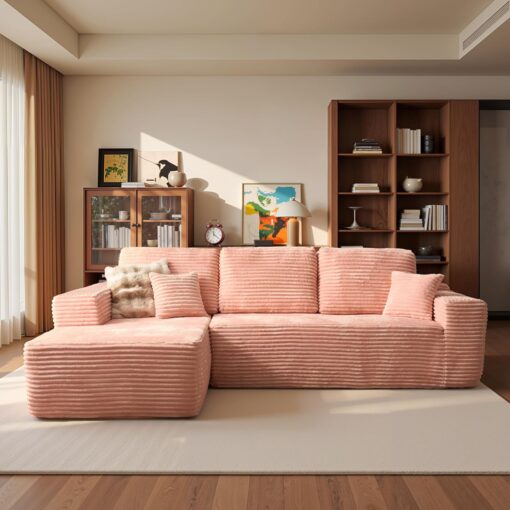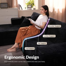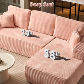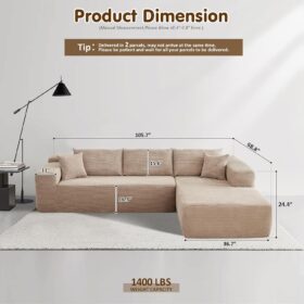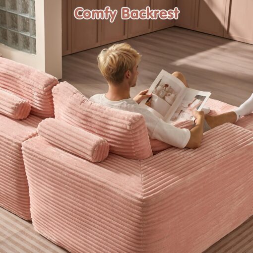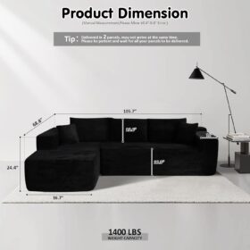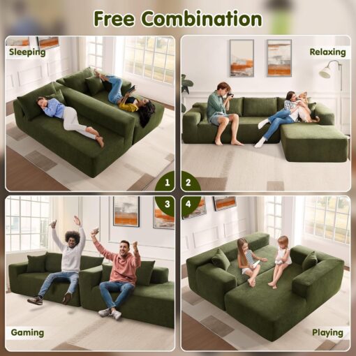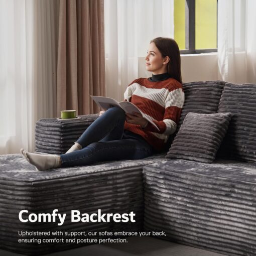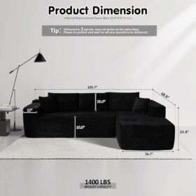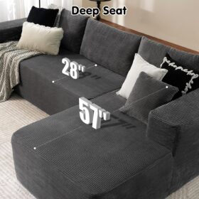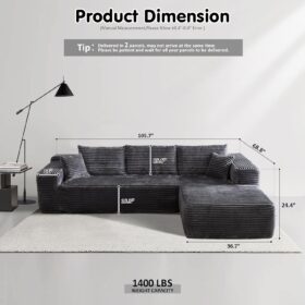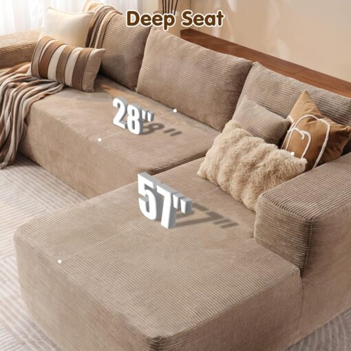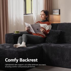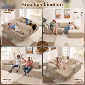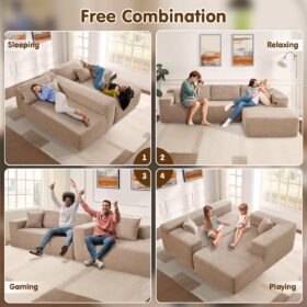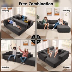 - Comfy Chaise Couch:Bask in unparalleled luxury with our interchangeable sofa collection, which embodies a spacious, cloud-like seating sensation. Revel in supreme ease with our couch with 51″ lounge chaise, meticulously crafted from high resilience foam architecture and coil spring reinforcement