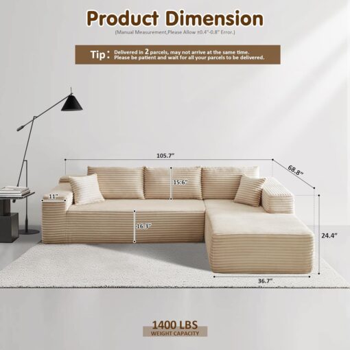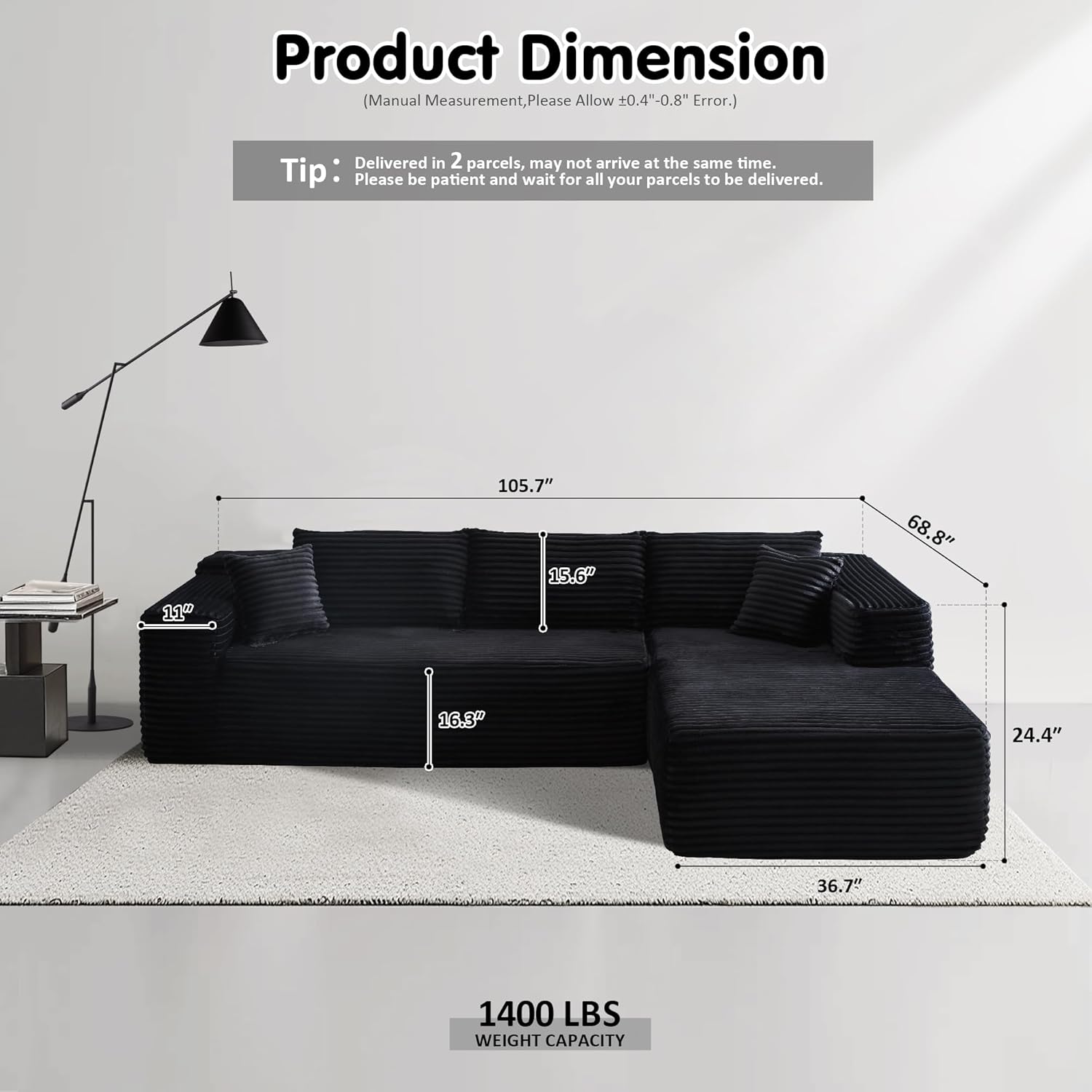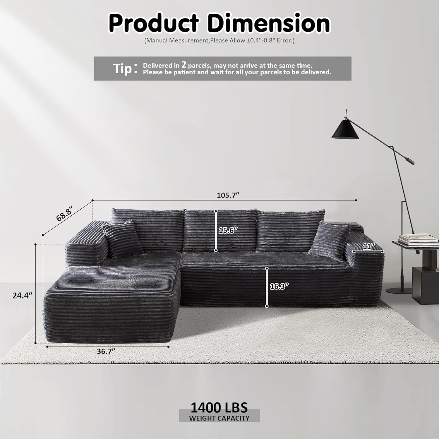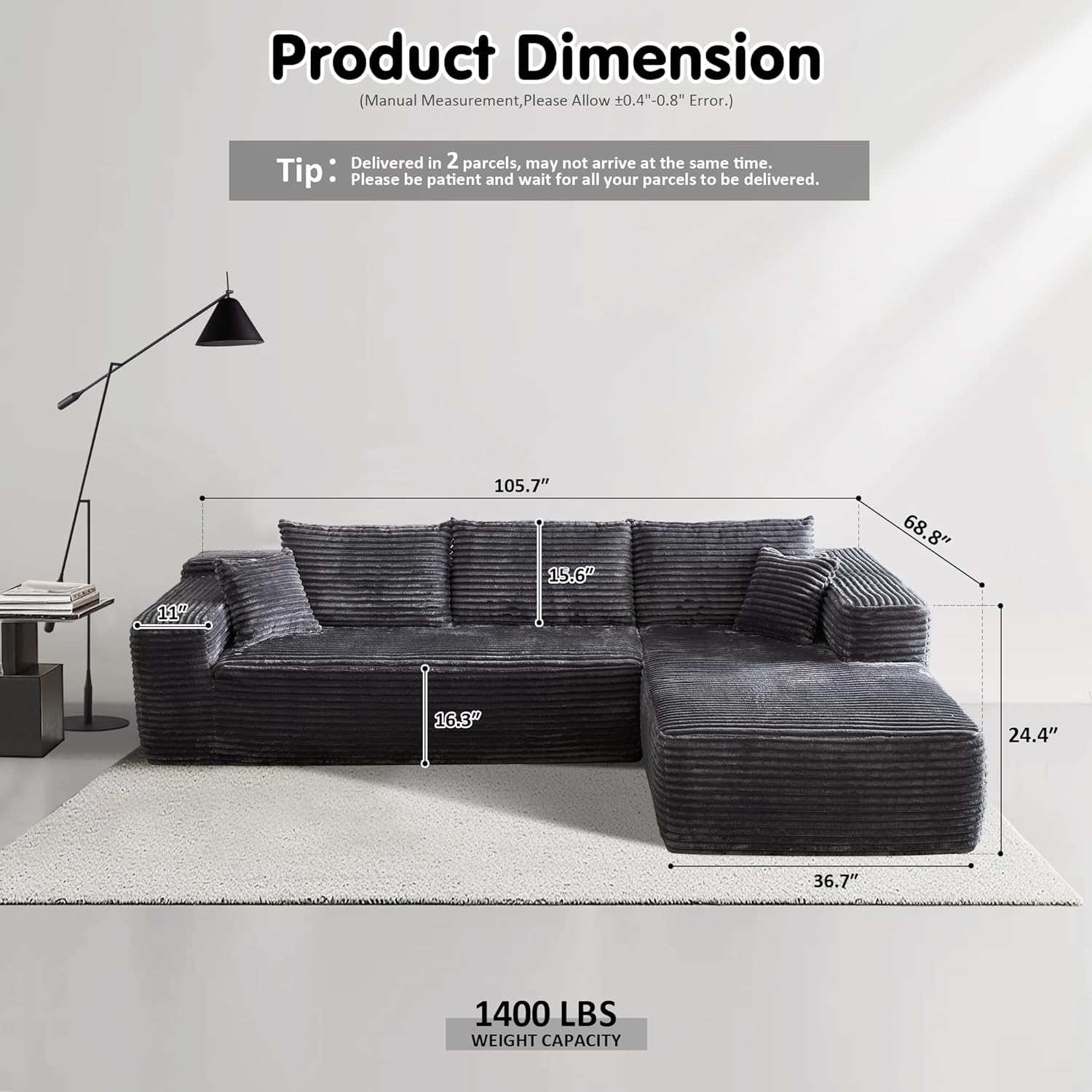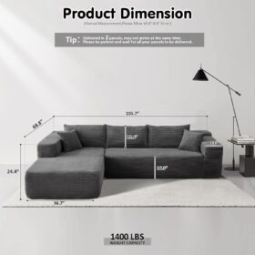 - Modular Sectional Sofa:Discover the versatility of our simplified style modular sofa, designed for flexible configurations to fit your needs. This minimalist L-shaped sectional set maximizes space when placed against a wall. Composed of two chic pieces, this living room set invites you to customize your comfort and style